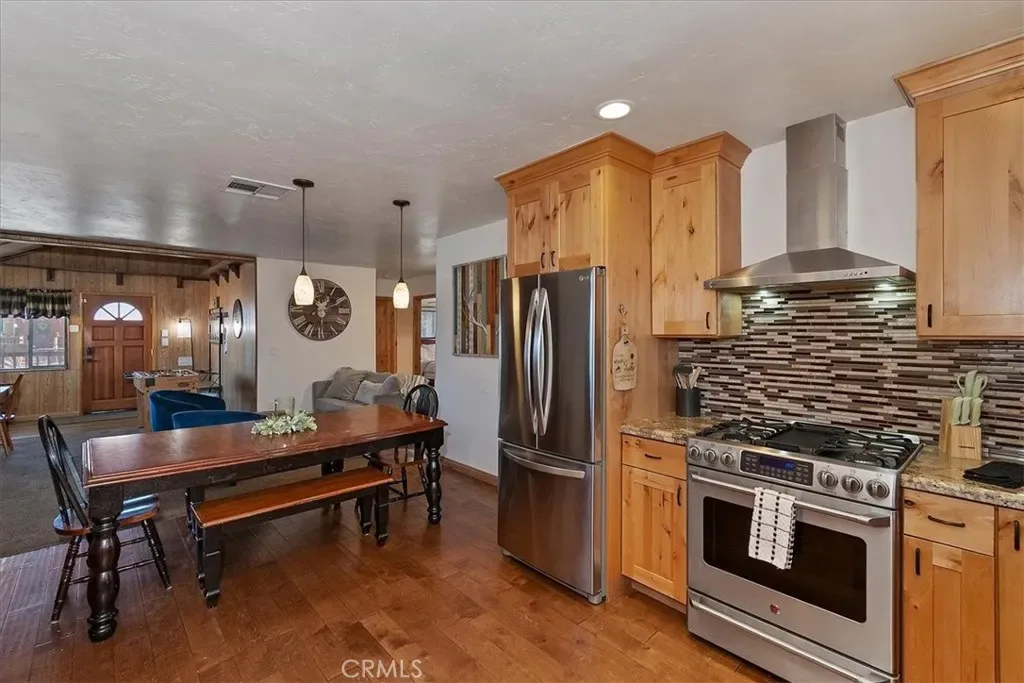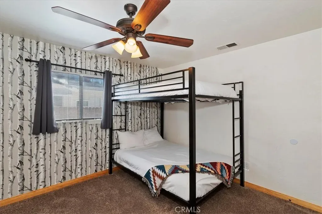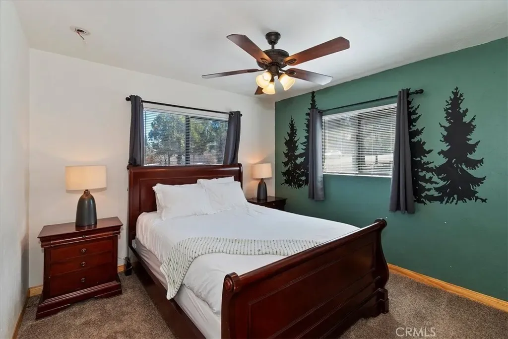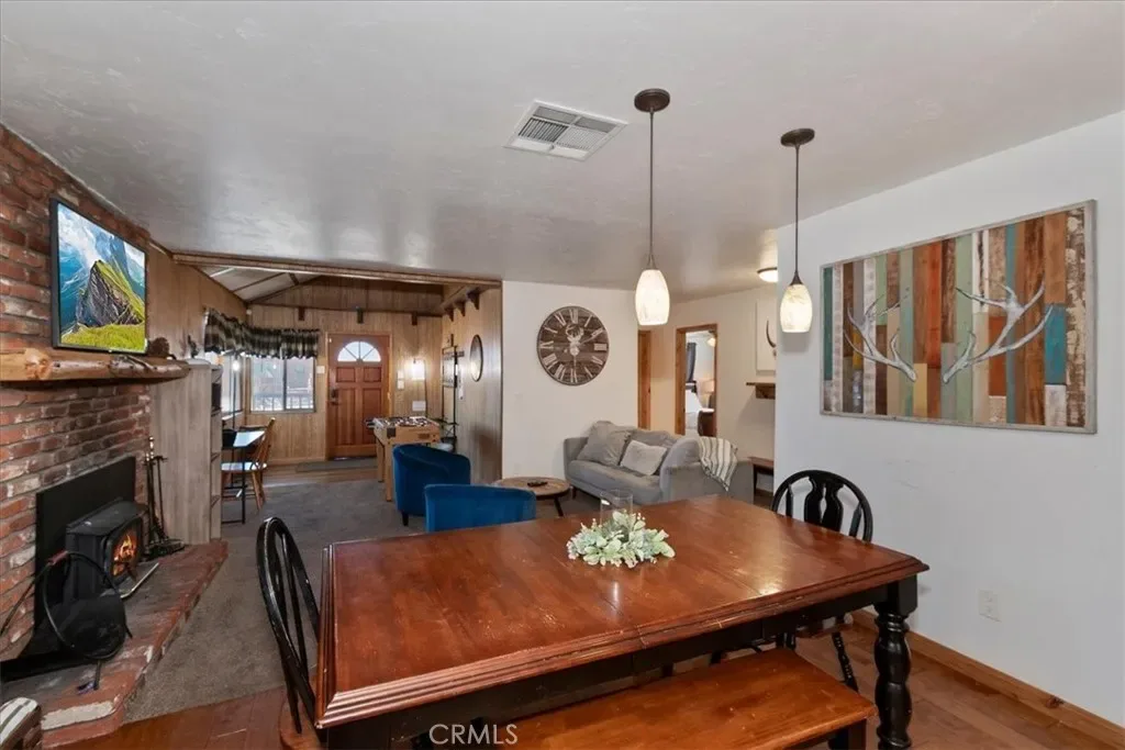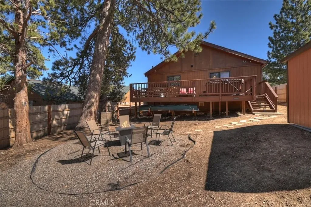 Looking for a profitable short term investment property in Big Bear with a strong proven track record? THIS WELL-APPOINTED HOME GENERATED OVER $76,000 in 2025, making it an exceptional opportunity for investors seeking both personal enjoyment and steady vacation rental revenue. This single-story upper Moonridge home is completely move-in ready and turnkey, allowing you to block out the dates you want for personal use while continuing to generate income the rest of the year. Inside, the inviting living room features vaulted ceilings, newer carpeting, and a cozy brick fireplace insert, creating the perfect mountain retreat atmosphere for guests. The remodeled kitchen is designed for functionality and style with wood flooring, granite countertops, custom wood cabinetry, and stainless-steel appliances. The home offers three spacious bedrooms, including a private primary suite with en-suite bathroom, providing comfortable accommodations for guests and families. Both bathrooms have been tastefully updated with wood-grain tile flooring, newer vanities, sinks, and modern fixtures. Step outside to enjoy the expansive wrap-around back deck, complete with a hot tub and bbq, ideal for relaxing after a day on the slopes or hiking trails. The fenced backyard features a playground area and fire pit, creating a perfect setting for outdoor entertaining and memorable mountain evenings. Situated on a level 7,200 square foot lot, the property also includes a large storage shed for ski gear, bikes, and seasonal equipment, along with a convenient concrete circular driveway for easy year-round access. Six minute drive to Bear Mountain Ski Resort. With its proven rental income history, turnkey condition, and desirable Moonridge location, this property is an outstanding opportunity for buyers looking for a high-performing vacation rental, Airbnb investment, or personal mountain getaway.