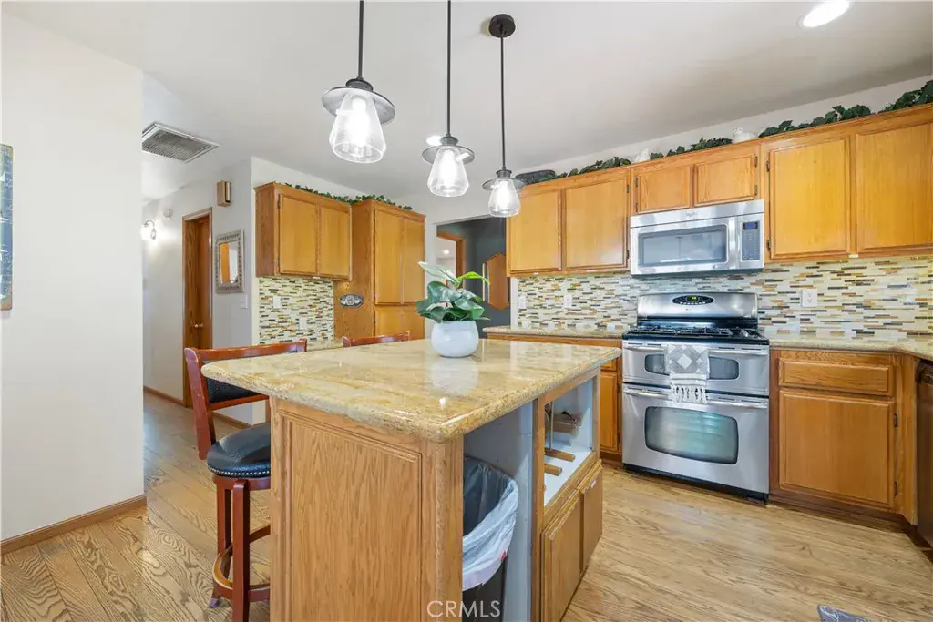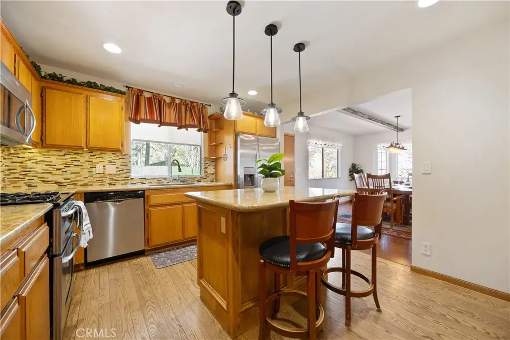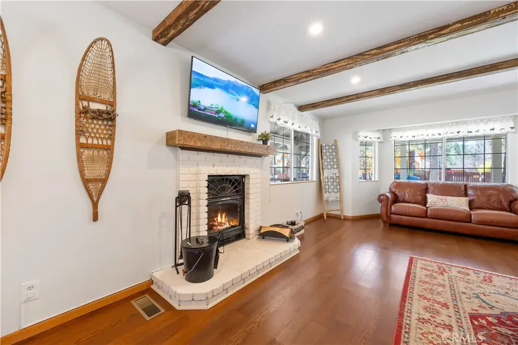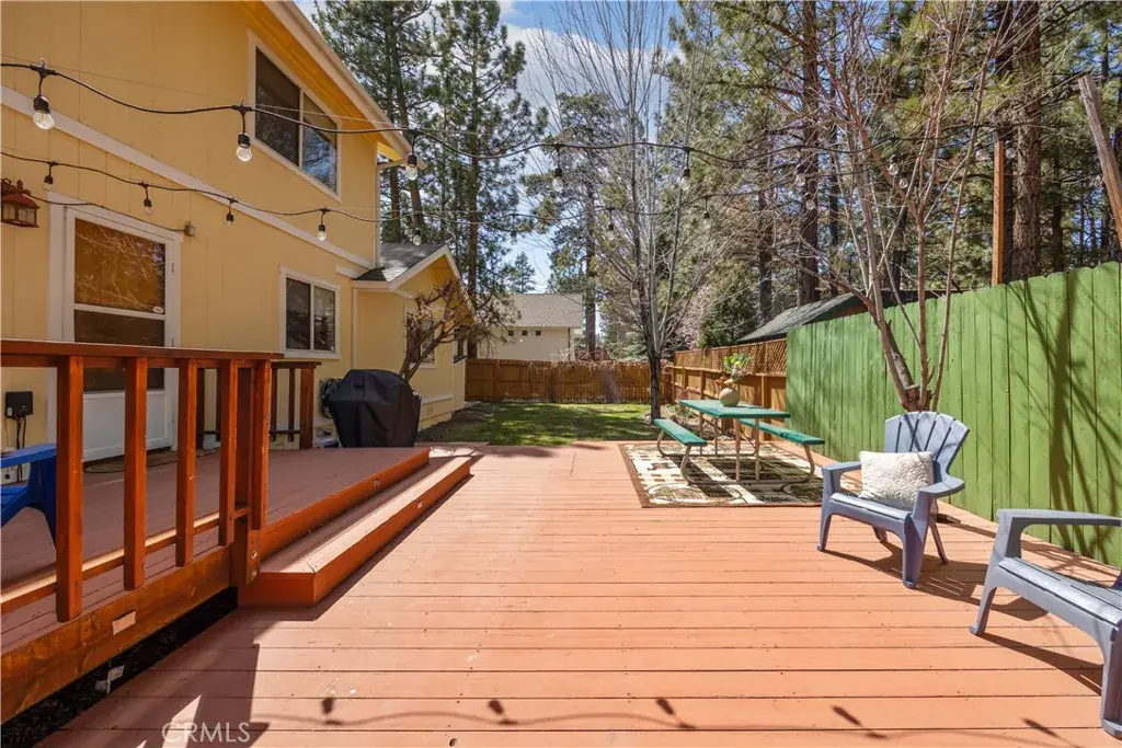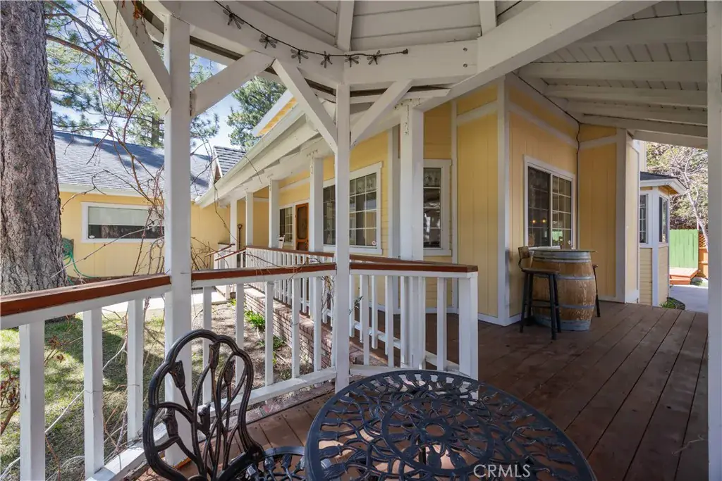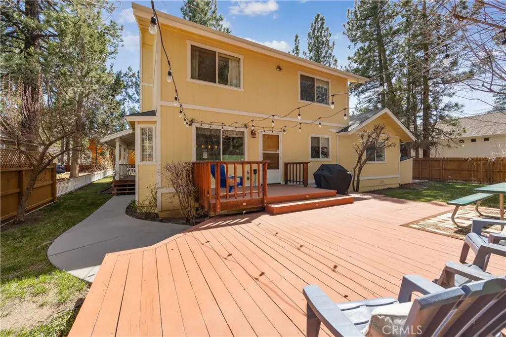 Welcome to your dream mountain retreat in the heart of Big Bear City’s highly sought after Forest Springs neighborhood with underground utilities. Nestled on a quiet cul de sac surrounded by towering pines, this beautifully maintained, custom built home offers the perfect blend of style, comfort, and functionality. This property is ideal as a full time residence, weekend escape, or income-generating property. With 4 spacious bedrooms, including a main floor bedroom, 3 full bathrooms, including a primary suite with a spa-like jacuzzi tub, and a versatile bonus room perfect for a home office, den, or game room, this spacious home is designed for both relaxation and entertainment. Pride of ownership shines through with thoughtful upgrades like newer wood floors, decorative beams, recessed lighting, and updated fixtures throughout. At the heart of the home is the spacious kitchen boasting granite countertops, oak cabinetry, a central island, coffee bar, and high end Whirlpool and Bosch appliances, plus a walk in pantry to keep everything organized. The light filled great room is anchored by a cozy wood burning fireplace and 180 degree bay windows that frame the breathtaking beauty of Big Bear’s true four seasons. Step outside into your own private oasis that features a beautifully landscaped, fully fenced yard bursting with low maintenance perennials, lush greenery, and an automated, in ground sprinkler system. Enjoy al fresco dining on the large rear deck, cozy up with a book on the wrap around covered front porch, or unwind in the ivy laced gazebo with a glass of wine or cocoa under the stars. In the backyard, there is 220v electrical in place for a future spa. The backyard also features a large shed that matches the exterior paint and theme of the main home. Additional amenities include a 3 car attached garage with a “Fun Zone” that features ping pong, foosball, and air hockey, a laundry/mudroom with direct access to the main home, garage and backyard, ample attic storage, and a large concrete driveway with room for all your vehicles and toys. This property is South facing, resulting in lower maintenance costs during the winter months, and is situated on a large, flat lot.