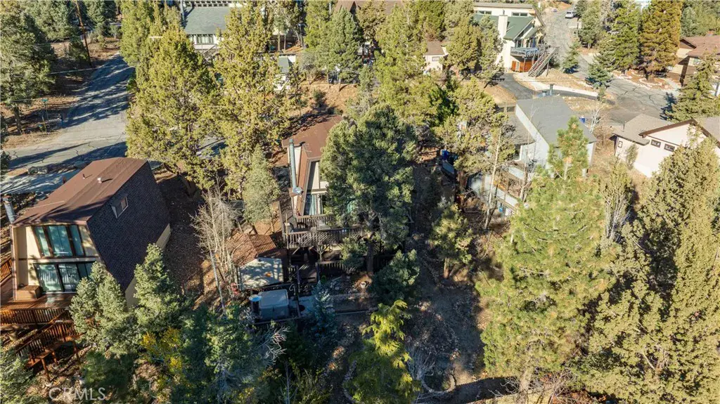 Located in Whispering Forest, this beautifully maintained 4-bed, 2.5-bath home offers serene mountain views and 1,636 sq. ft. of inviting living space. Features include open beam ceilings, wood paneling, a stone fireplace, and a spacious slider that fills the home with natural light. The wraparound multi-level deck is perfect for outdoor entertaining, along with a private spa, mature trees, and a storage shed. Currently a successful Airbnb and offered furnished. t’s an ideal retreat close to everything Big Bear has to offer.