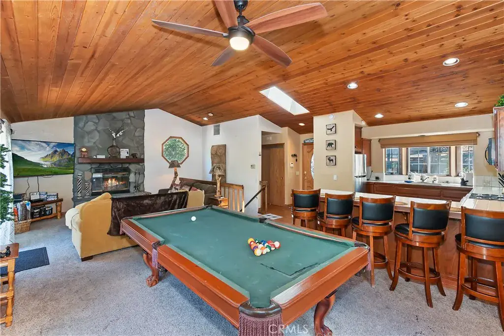Welcome to your secluded retreat in the heart of Big Bear Lake! This charming 3 bedroom, 2 bathroom home boasts 1434 sq ft of living space on a spacious 13110 sq ft lot, surrounded by towering pine trees. Features of this home include vaulted ceilings and a cozy stone fireplace in the living room, a spacious deck for outdoor entertaining, an open kitchen complete with a breakfast bar, and your own private sledding hill. The master bedroom has an ensuite bathroom and a private balcony with stunning views of the surrounding forest and a spa. Walking distance to Bear Mountain ski resort, and a quick drive to all the attractions Big Bear has to offer, this home is perfectly situated for year-round enjoyment. Whether you’re looking for a peaceful retreat to escape the city, or a fun-filled vacation home for family and friends, this property has it all. With plenty of outdoor activities nearby, such as hiking, mountain biking, fishing, and skiing, you’ll never run out of things to do. Enjoy the convenience of being minutes away from the golf course, zoo, the lake, and the bustling shops and restaurants in The Village. This move-in ready home and comes fully furnished, making it the perfect getaway or full-time residence. Don’t miss out on this rare opportunity to own your own private oasis in the mountains of Big Bear Lake. Buyer and buyers agent solely responsible for verifying the accuracy of any and all information provided.