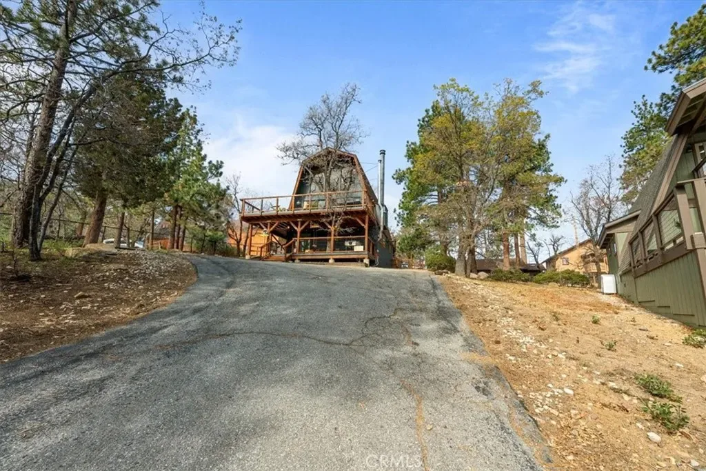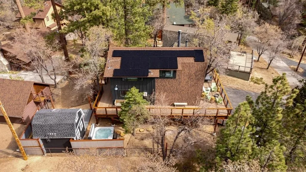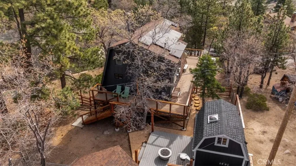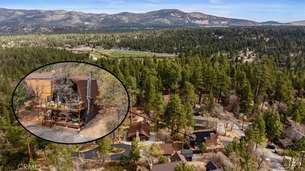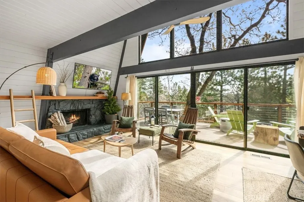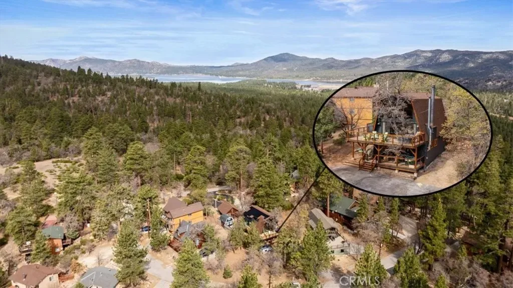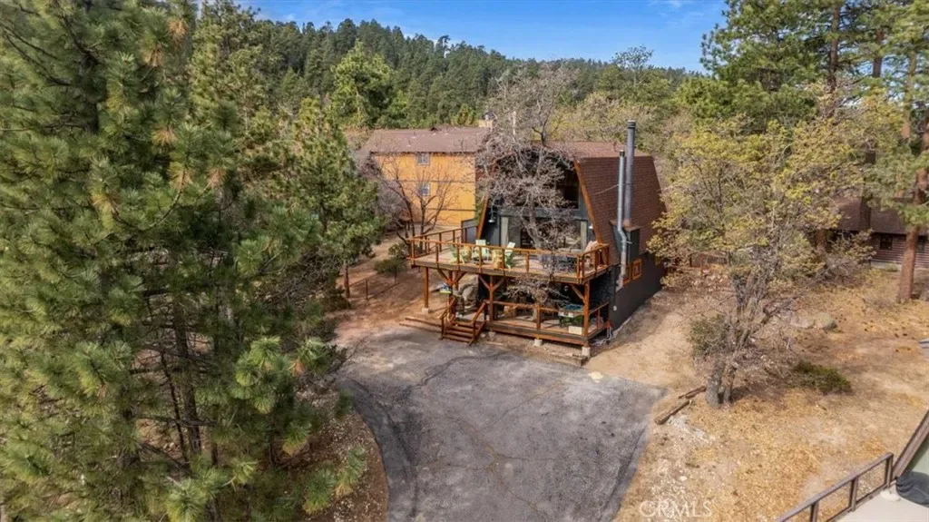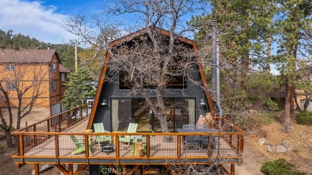 VIEWS, VIEWS, VIEWS!!! Amazing ALL- NEW Mountain retreat! Walking distance to the slopes! … Ski Slope Views of Bear Mountain Ski Resort & Forest Views are abundant with this spacious oversized Gambrel Mountain Cabin. This stunning home features a 2-story wall of windows that force sunshine into the main living area. Massive all-new composite decking on 2 levels gives you endless options to enjoy the views and fresh mountain air! Enjoy breathtaking sunrises as you enjoy your morning coffee by the fireplace. This custom home affords 2 bedrooms, 3 bathrooms plus a sleeping loft used as third bedroom, game room, stainless steel appliances in the kitchen, wood beam ceilings and a native stone fireplace in the living room. This fabulous home is all new for 2026! Kitchen, bathrooms, fixtures, paint and solar are all new. Lot features plenty of parking and a spacious rear yard that includes Tuff-Shed and bubbling spa. This gorgeous home is walking distance for you to go skiing, play golf or go hiking and biking on the trails, not to mention a short distance to the Lake and Village for Restaurants and Shopping. Excellent location for the nature enthusiast in you and ready for this season’s enjoyment…this one is stunning, loaded with upgrades and a must-see!!! Don’t miss our 3-D tour and list of upgrades, we can forward copies of both, just ask.