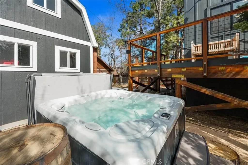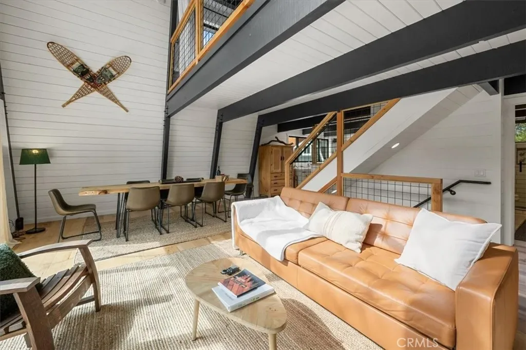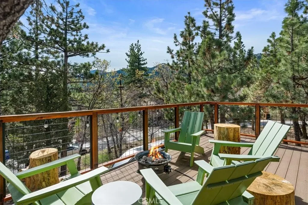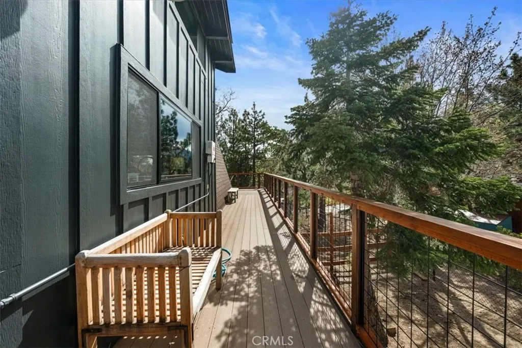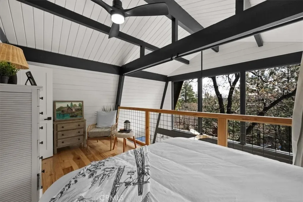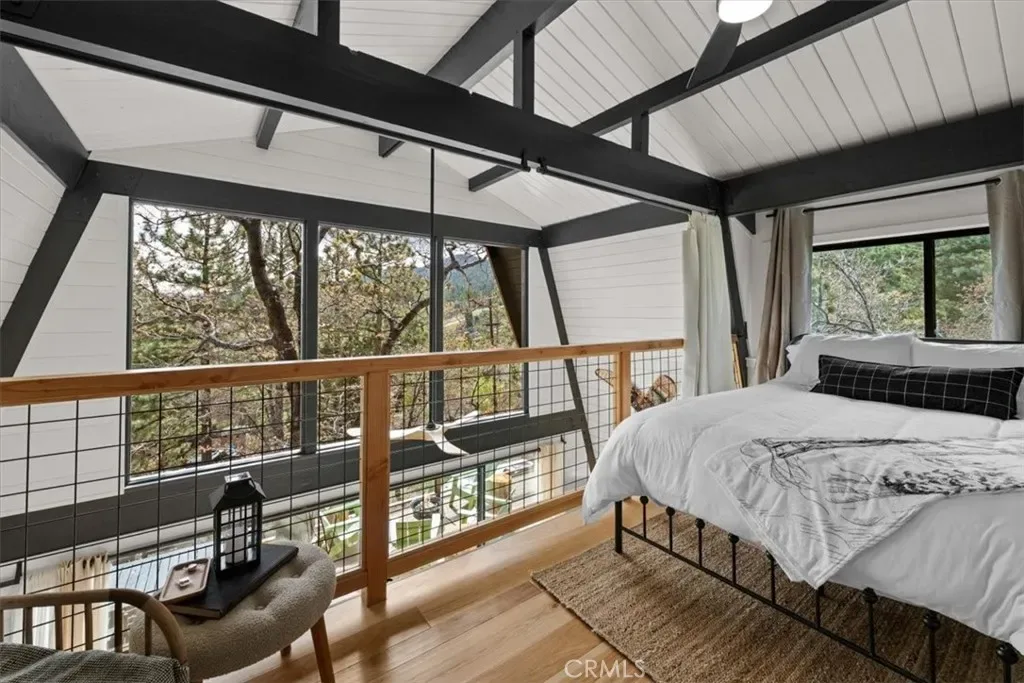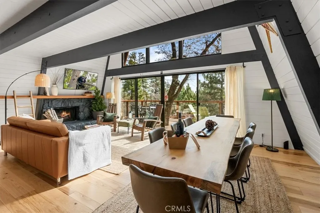 VIEWS, VIEWS, VIEWS!!! Amazing ALL- NEW Mountain retreat! Walking distance to the slopes! … Ski Slope Views of Bear Mountain Ski Resort & Forest Views are abundant with this spacious oversized Gambrel Mountain Cabin. This stunning home features a 2-story wall of windows that force sunshine into the main living area. Massive all-new composite decking on 2 levels gives you endless options to enjoy the views and fresh mountain air! Enjoy breathtaking sunrises as you enjoy your morning coffee by the fireplace. This custom home affords 2 bedrooms, 3 bathrooms plus a sleeping loft used as third bedroom, game room, stainless steel appliances in the kitchen, wood beam ceilings and a native stone fireplace in the living room. This fabulous home is all new for 2026! Kitchen, bathrooms, fixtures, paint and solar are all new. Lot features plenty of parking and a spacious rear yard that includes Tuff-Shed and bubbling spa. This gorgeous home is walking distance for you to go skiing, play golf or go hiking and biking on the trails, not to mention a short distance to the Lake and Village for Restaurants and Shopping. Excellent location for the nature enthusiast in you and ready for this season’s enjoyment…this one is stunning, loaded with upgrades and a must-see!!! Don’t miss our 3-D tour and list of upgrades, we can forward copies of both, just ask.