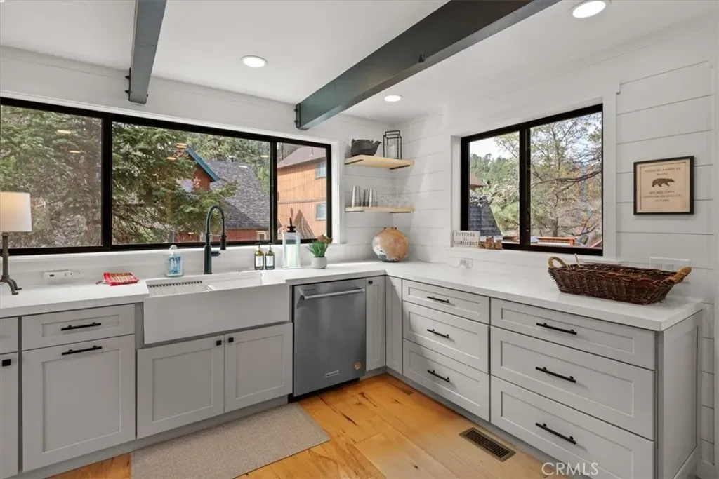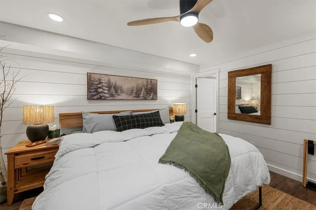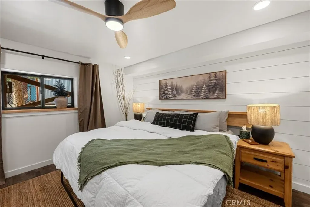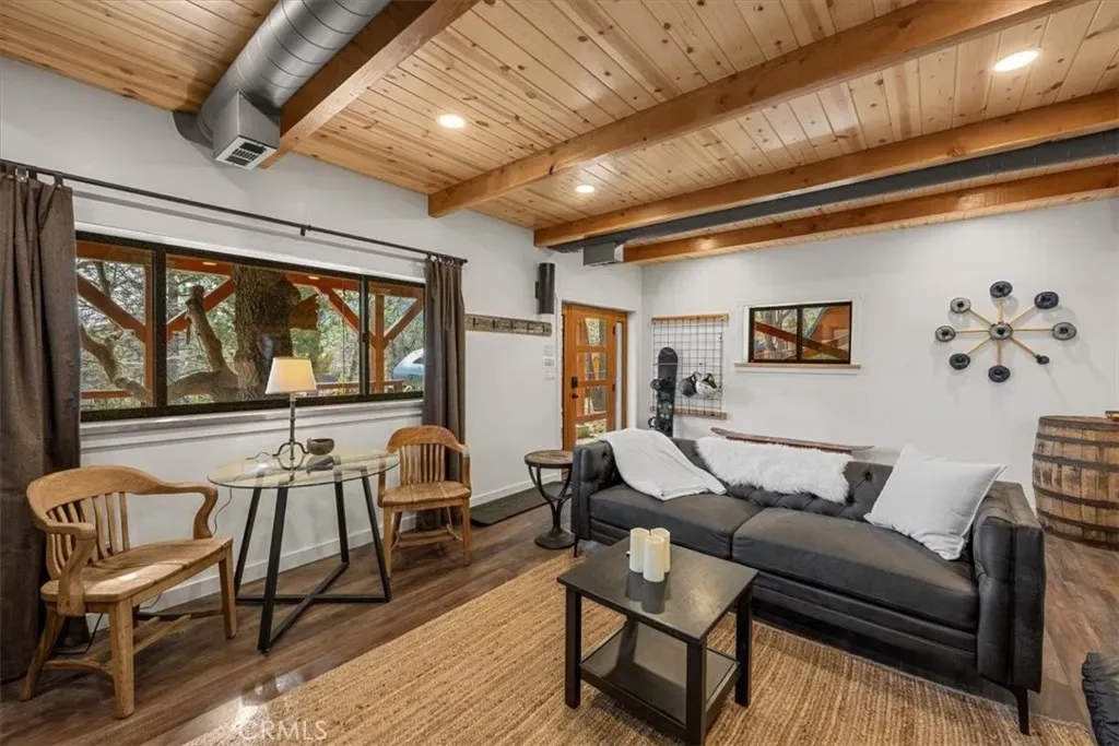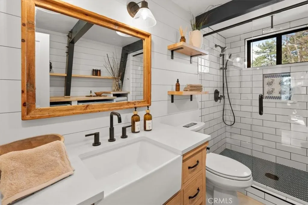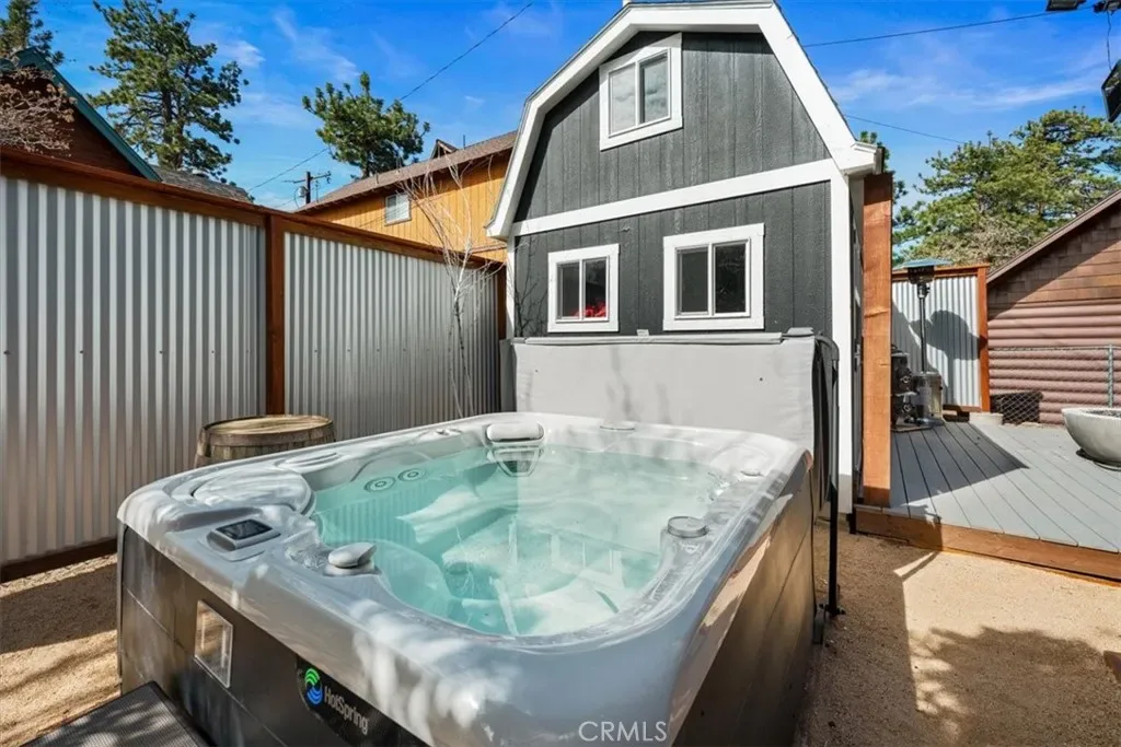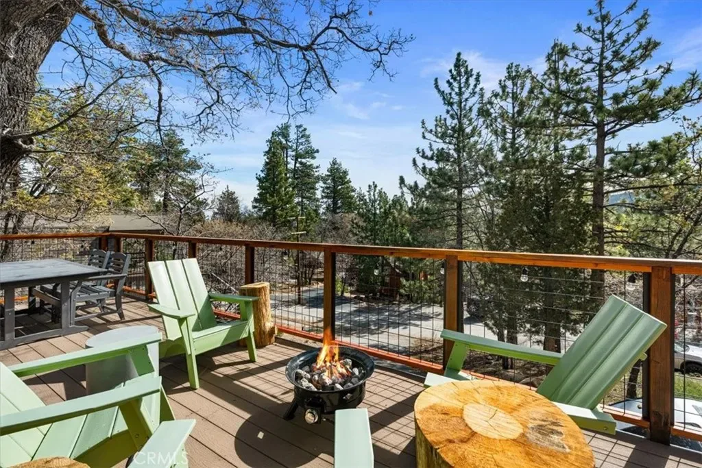 VIEWS, VIEWS, VIEWS!!! Amazing ALL- NEW Mountain retreat! Walking distance to the slopes! … Ski Slope Views of Bear Mountain Ski Resort & Forest Views are abundant with this spacious oversized Gambrel Mountain Cabin. This stunning home features a 2-story wall of windows that force sunshine into the main living area. Massive all-new composite decking on 2 levels gives you endless options to enjoy the views and fresh mountain air! Enjoy breathtaking sunrises as you enjoy your morning coffee by the fireplace. This custom home affords 2 bedrooms, 3 bathrooms plus a sleeping loft used as third bedroom, game room, stainless steel appliances in the kitchen, wood beam ceilings and a native stone fireplace in the living room. This fabulous home is all new for 2026! Kitchen, bathrooms, fixtures, paint and solar are all new. Lot features plenty of parking and a spacious rear yard that includes Tuff-Shed and bubbling spa. This gorgeous home is walking distance for you to go skiing, play golf or go hiking and biking on the trails, not to mention a short distance to the Lake and Village for Restaurants and Shopping. Excellent location for the nature enthusiast in you and ready for this season’s enjoyment…this one is stunning, loaded with upgrades and a must-see!!! Don’t miss our 3-D tour and list of upgrades, we can forward copies of both, just ask.