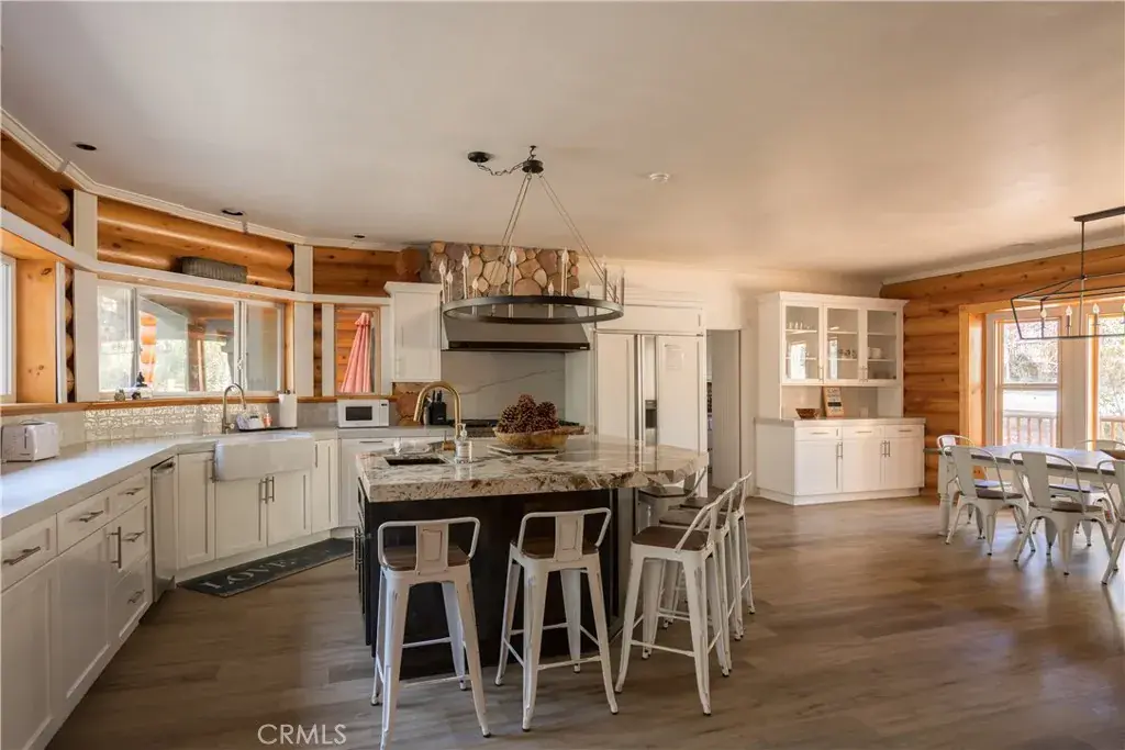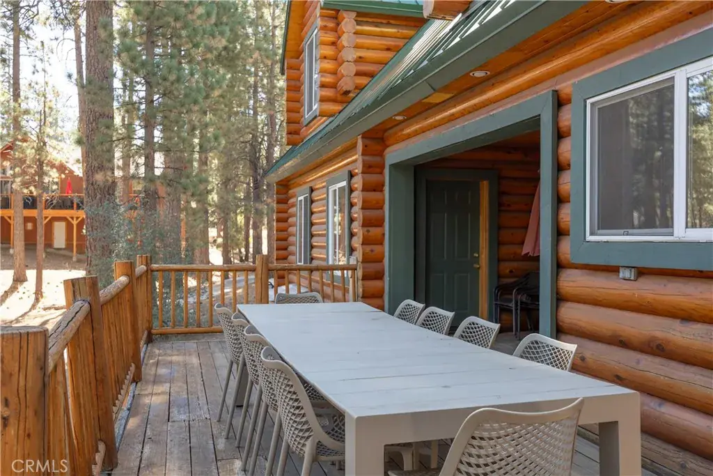 Absolutely amazing log home on a rare level acre + lot in the heart of Big Bear! Ideally positioned on the property to take in the forest setting from the back deck. Amazing interior offers soaring beamed ceilings with 2 story river rock fireplace, 3 huge bedrooms with a bonus 4th bedroom, game room with bar, large master bath for just a few of the highlights. New flooring and recently updated kitchen. Spacious outdoor decking w/ Spa that overlooks the forest to take in the setting & ideal for stargazing. This home is perfect for large gatherings or corporate retreats. 1000 sf 3 car garage with bedroom, in-ground well, metal roofing with new solar system and great income figures. Plenty of room on the property for endless possibilities tennis, pickle-ball court, RV garage or just keep it the way it is for your mountain oasis