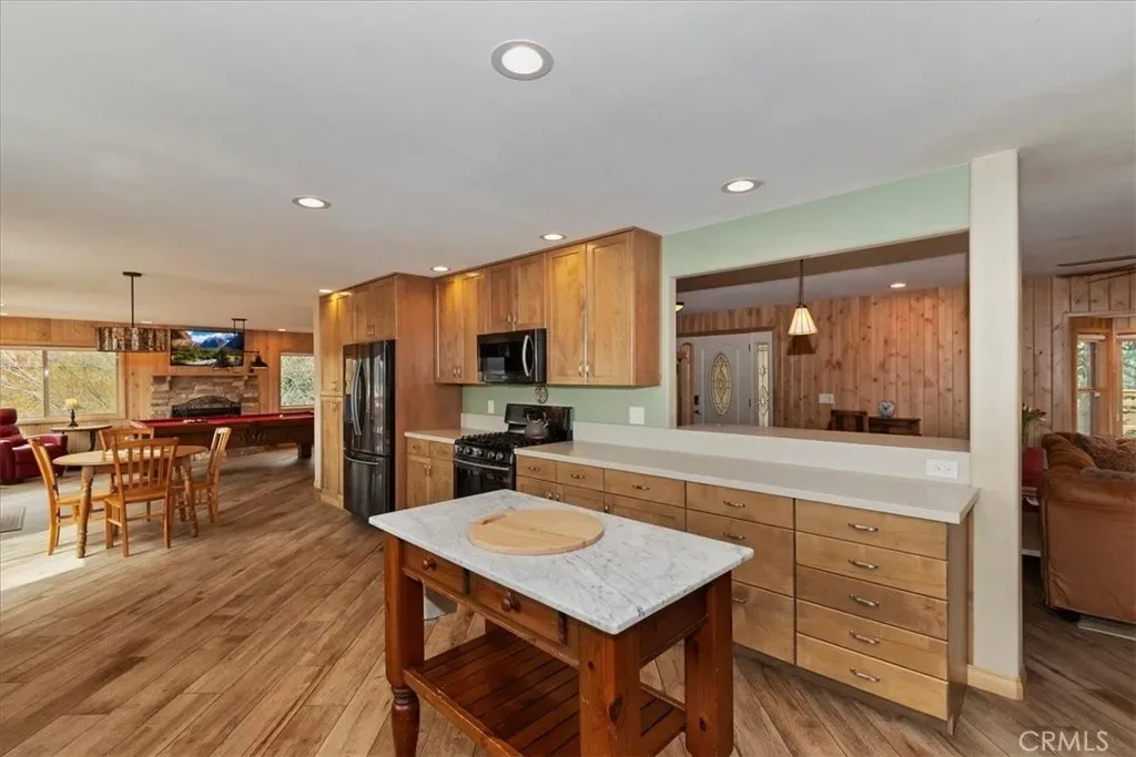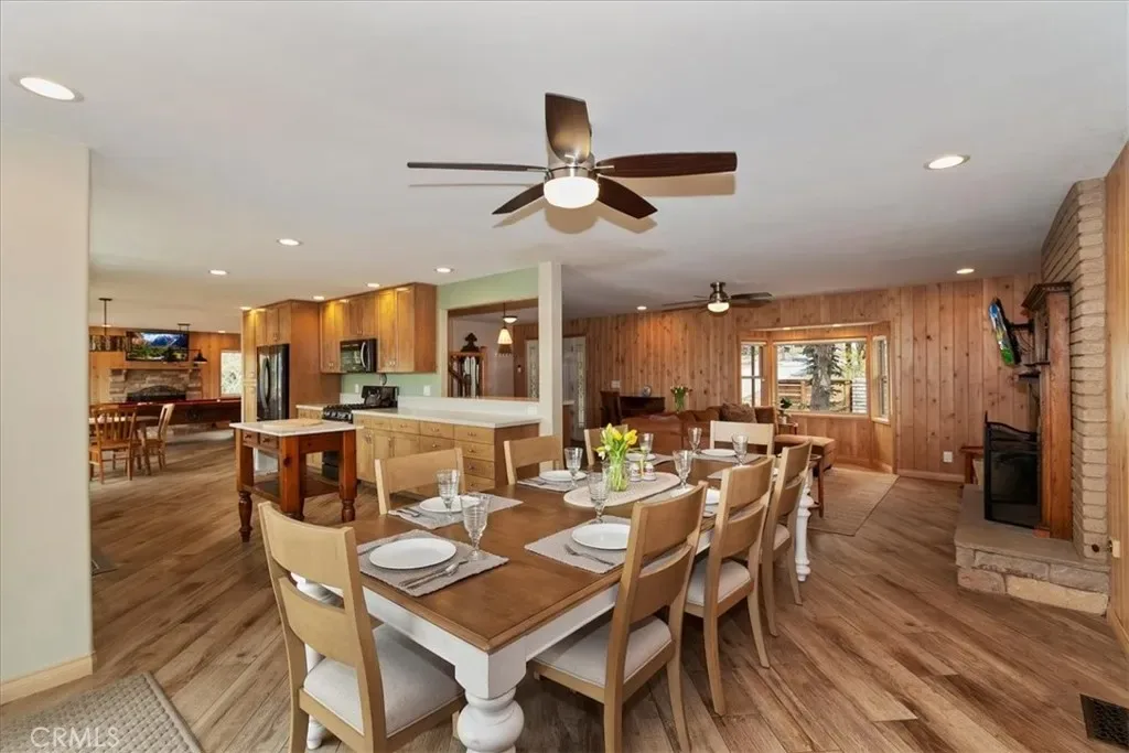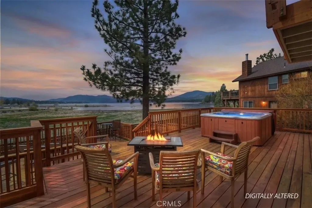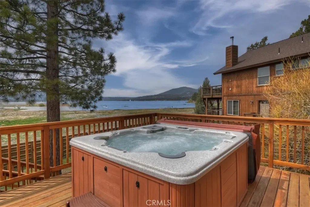 Welcome to lakefront living at its finest in the highly sought-after Eagle Point. Perfectly positioned on a generous 14,168 sq ft lot, this beautifully updated 4-bedroom, 3-bathroom home offers 2,755 sq ft of thoughtfully designed space and an unbeatable front-row seat to Big Bear Lake. Step inside to an open-concept floor plan designed for both comfort and entertaining, featuring a spacious living area anchored by one of three fireplaces, creating the perfect mountain ambiance year-round. The expansive kitchen is ideal for hosting, complete with alder cabinetry, ample counter space, and seamless flow into the main living and dining areas. This home was made for gathering and unwinding, with a separate game room featuring a pool table and its own fireplace—perfect for après-ski evenings or summer nights after a day on the lake. The primary suite is a true retreat, offering its own fireplace, added soundproof insulation for privacy, and a cozy, elevated feel. Thoughtful upgrades are found throughout, including cedar-lined closets, porcelain flooring downstairs, waterproof vinyl flooring upstairs, and a striking oak staircase that ties the home together with warmth and style. Step outside onto the back deck and take in what may be some of the most breathtaking sunset views in Big Bear. With lakefront access and dock rights, this property offers the ultimate waterfront lifestyle. Enjoy front-row seats to the 4th of July fireworks over the lake and the magical torchlight parade on New Year’s Eve—right from your own backyard. Complete with an attached 2-car garage and located in one of Big Bear Lake’s most desirable neighborhoods, this home is the perfect blend of luxury, comfort, and iconic mountain living.