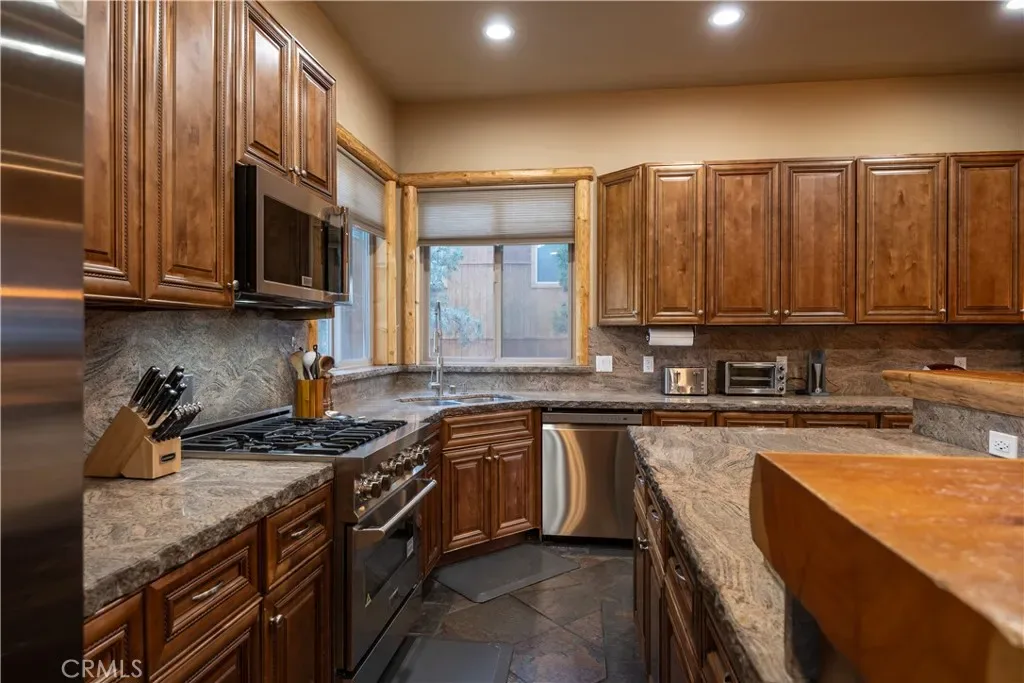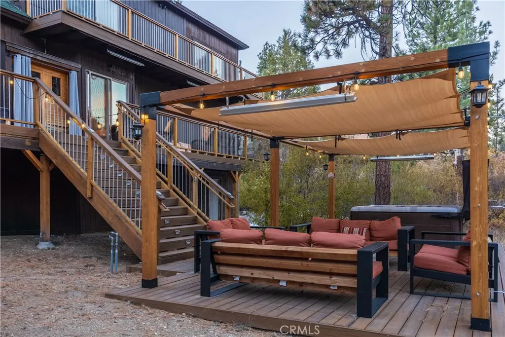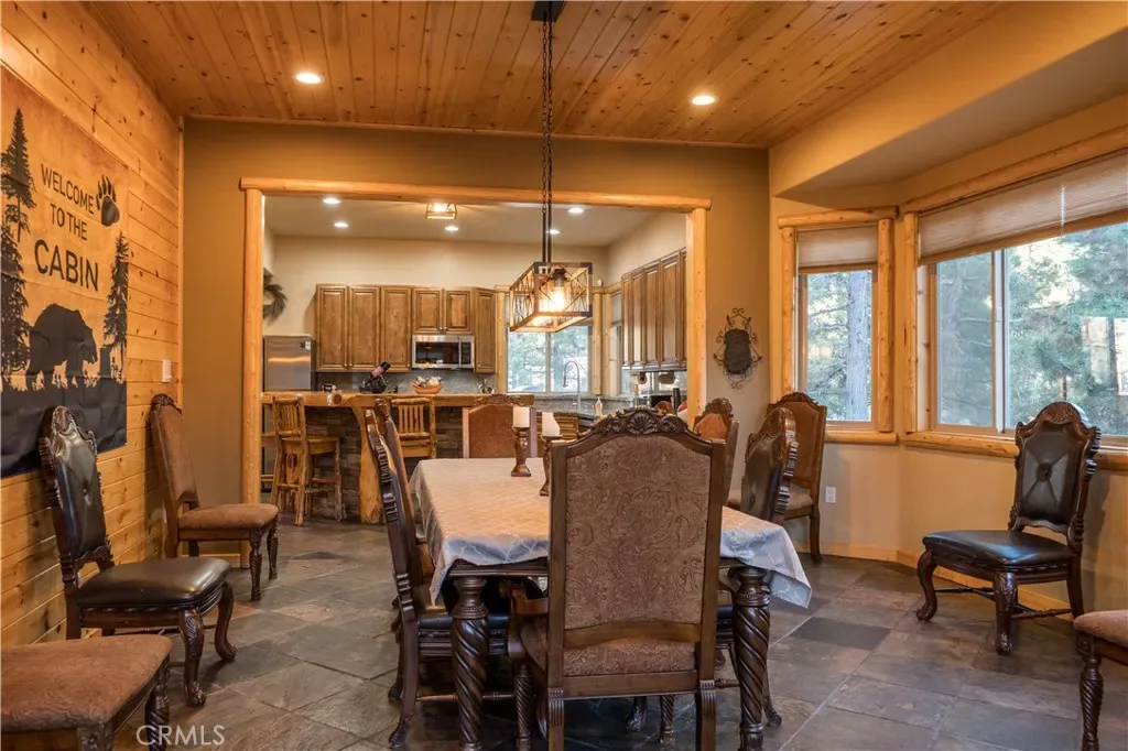 Welcome to Big Bear’s Grand Chateau, an extraordinary mountain retreat designed for unforgettable gatherings and luxurious alpine living. Spanning approximately 4,500 sq. ft. with the garage conversion, this impressive multi-family lodge blends timeless rustic charm with modern comforts, featuring soaring vaulted ceilings, warm cabin accents, and expansive living spaces for entertaining. Thoughtfully designed for privacy and comfort, both levels feature spacious primary suites with indulgent jetted tubs, while every bedroom enjoys direct access to a bathroom, creating a true retreat-style experience for family and guests alike. At the heart of the home, the chef-ready kitchen flows seamlessly into a generous dining area and grand living room, where a dramatic stone fireplace creates the perfect gathering place after a day on the slopes. Entertainment continues in the climate-controlled game room, created from the converted two-car garage and complete with a pool table, air hockey, and classic jukebox, making it the perfect setting for lively game nights and relaxed gatherings. Step outside to the expansive back deck, where breathtaking alpine views set the stage for year-round outdoor enjoyment. Relax beneath overhead heaters, unwind in the spacious outdoor hot tub, or gather around the firepit on the cozy veranda for the ultimate après-ski experience under the mountain stars. Ideally located within walking distance to Oktoberfest and Big Bear Snow Play, and just minutes from ski resorts, the lake, shopping, dining, and only 10 minutes to Big Bear Village, this property offers the rare balance of convenience, recreation, and peaceful mountain seclusion. This exceptional property offers both lifestyle and investment potential. Big Bear’s Grand Chateau is a rare opportunity to own a true mountain estate. Schedule your tour before this one-of-a-kind retreat is gone.