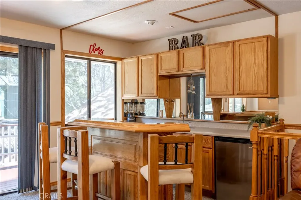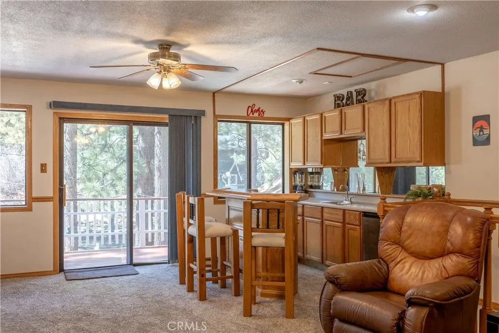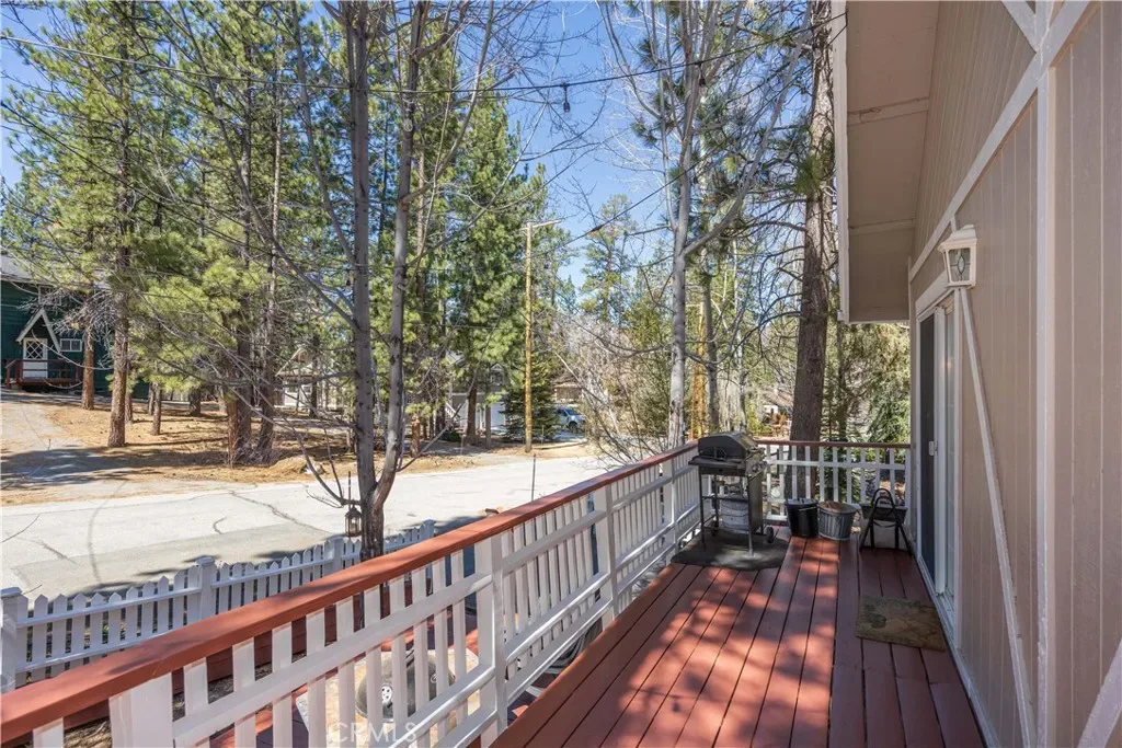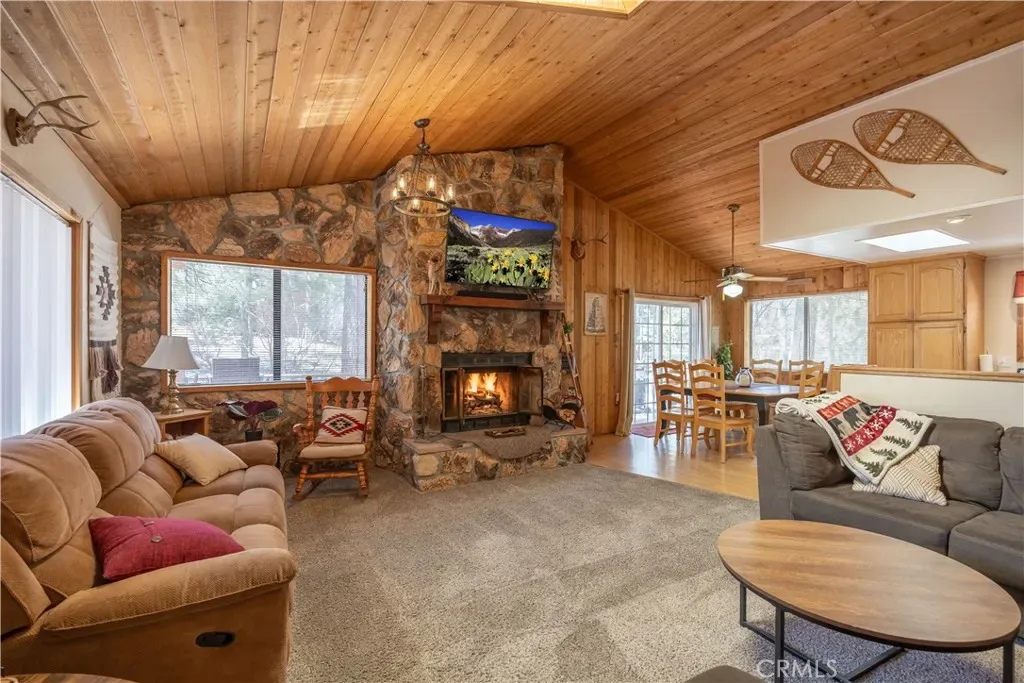 Experience the best of Big Bear living in this well-maintained Fox Farm home, tucked away on a quiet, peaceful street far from traffic. Built with a comfortable open-concept layout, the interior centers around a sun-drenched “Great Room” with high wood-beam ceilings, natural skylights, and a solid floor-to-ceiling stone fireplace. This space flows right into the kitchen—fitted with a stainless-steel range and handy pull-out pantry storage—and a dining area where glass sliders open to a large cedar deck. It is a great spot for a summer BBQ or a soak in the outdoor hot tub, which has been recently updated with a brand-new heater and digital controller.