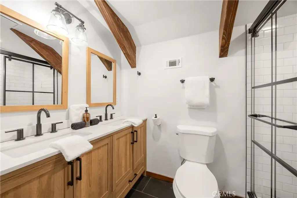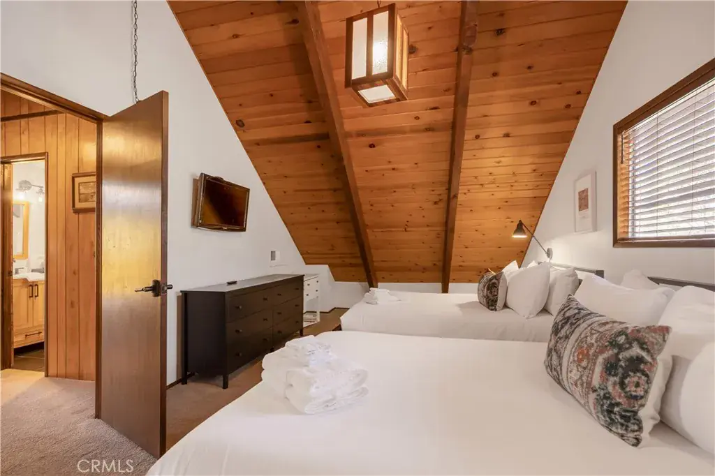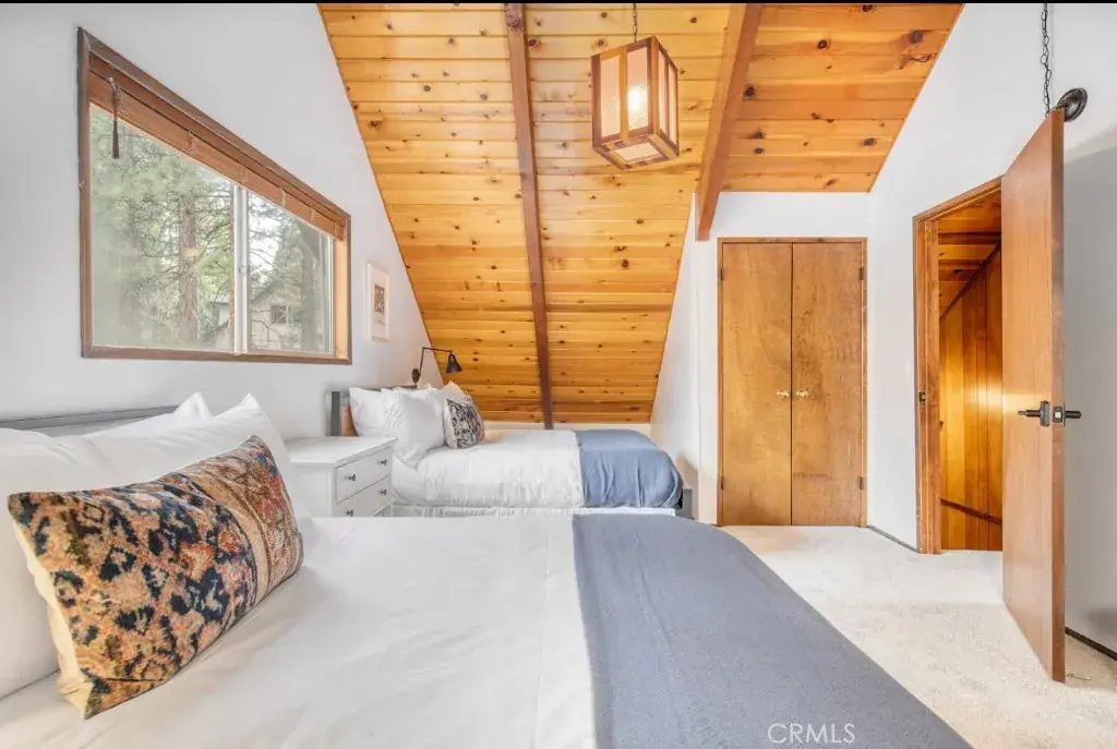 Nestled in the desirable Fox Farm area of Big Bear Lake, this charming mountain cabin offers a perfect blend of rustic ambience and modern convenience. Newly remodeled 4 bedroom with exposed beam ceilings and a cozy wood-stove hearth, the interior evokes classic alpine lodge comfort. Located on a great 8000 Sq Ft, corner lot, adorned with mature pines. Located just minutes from the slopes of Bear Mountain Resort, the lake and the village, it’s equally suited for year-round retreats or rental potential in a high-amenity mountain community