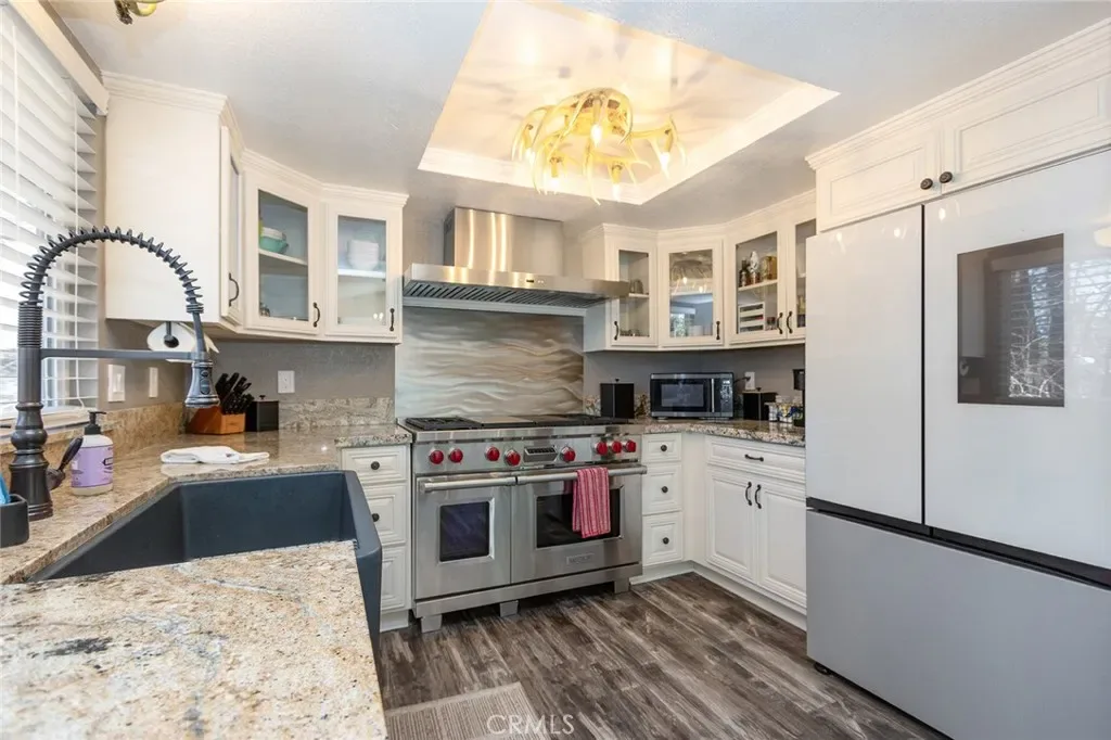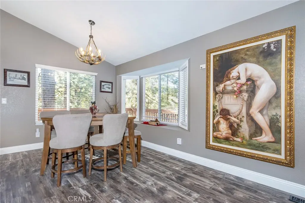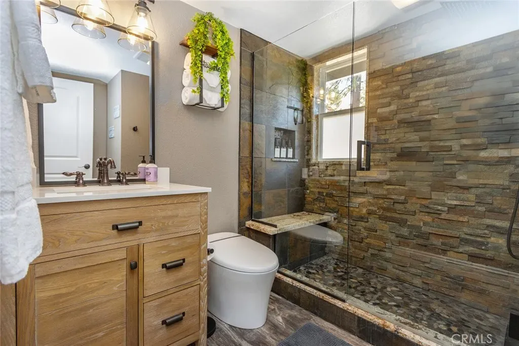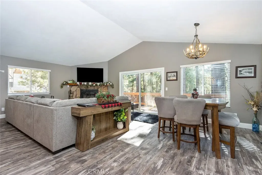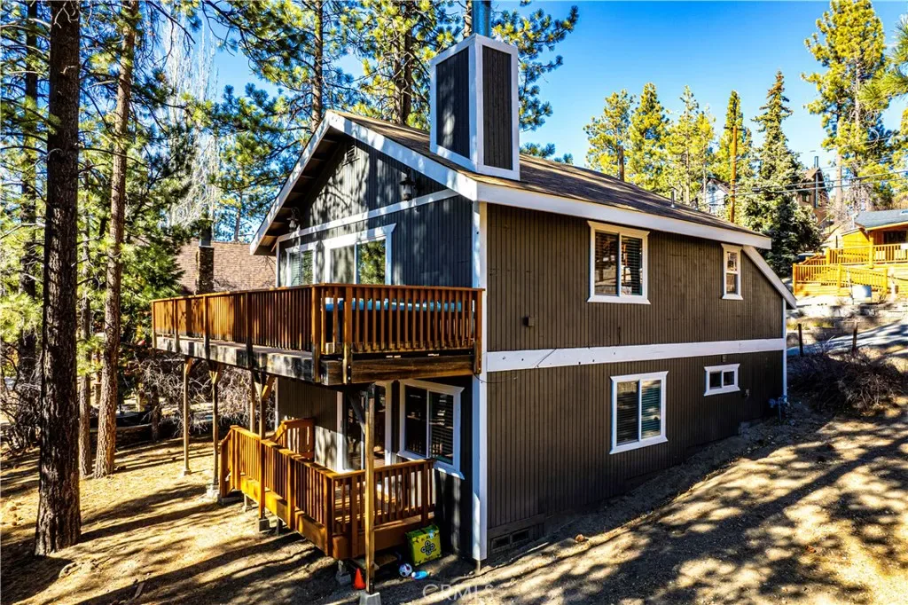 Nestled in the highly sought-after Moonridge neighborhood of Big Bear Lake, this beautifully remodeled mountain cabin offers the perfect blend of luxury, comfort & income potential. Featuring 3 BR’s & 2 BTH’s, this turnkey property has been thoughtfully upgraded w/over $100K in improvements over the past 2 years. A stunning custom double-door entry w/iron detailing welcomes you into a warm & inviting interior. The open-concept living space has a vaulted, peaked ceiling & a cozy living room anchored by a gorgeous raised hearth fireplace w/a gas starter—perfect for snowy mountain nights. A wet bar adds a fun & functional touch for entertaining. The chef’s kitchen is truly exceptional, complete w/high-end appliances including a 48” Wolf range w/gas burners, griddle, & dual ovens, a Cove dishwasher, smart fridge, farmhouse sink w/upgraded faucet, stainless steel backsplash & hood & beautiful cabinetry w/glass doors. Granite countertops complete the space. Enjoy seamless indoor-outdoor living w/access to a wraparound deck off the dining area, ideal for relaxing or entertaining. A separate sitting/game room off the bedrooms offers additional living space & opens to a covered lower deck. Both bathrooms are tastefully upgraded. The primary bath features a walk-in shower w/custom ledger stone, slate finishes, and a built-in bench, while the second bath includes a custom walk-in shower w/designer doors & a smart toilet. Additional upgrades include a fully updated electrical panel, brand-new heater & furnace, new plumbing in the laundry room, new window coverings, fresh exterior paint, tall baseboards & moldings & unique custom chandeliers & lighting throughout. The home is also equipped w/a full Nest system, 4 exterior security cameras, a Tesla charger, & ample parking for four vehicles. This property also includes the convenience of a free local P.O. Box for mail service. Offered fully furnished, this home is truly turnkey—just bring your personal items & start enjoying immediately. For investors, this property is a proven short-term rental w/two years of successful operation, top ratings across major platforms & a strong base of returning guests. It qualifies for 100% bonus depreciation, making it an exceptional income-producing opportunity. Whether you’re seeking a private mountain retreat or a high-performing vacation rental, this one-of-a-kind Moonridge cabin delivers on every level. Art work in the pictures have been switched out. Don’t miss this one!