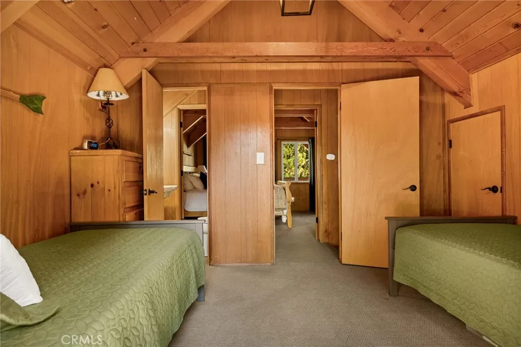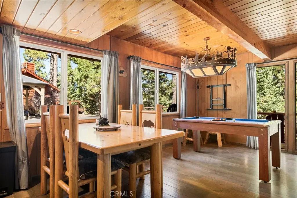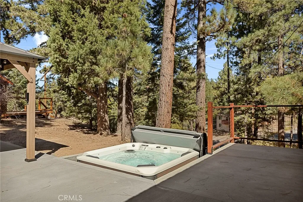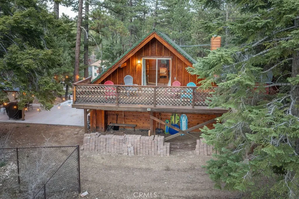 Tucked among the trees in highly sought-after Moonridge location, this beautifully updated mountain retreat offers a peaceful, private setting on an expansive 12,000 sq ft lot with room to expand. A wall of windows fills the home with natural light and brings in the surrounding forest, while the interior showcases beamed ceilings, knotty pine accents, updated flooring, and a striking stacked-stone wood-burning fireplace. The kitchen features granite countertops and stainless steel appliances, and both bathrooms have been tastefully updated. The functional layout includes a bedroom and full bath on the main level, with two spacious bedrooms upstairs connected by a dual-entry half bath. Washer and dryer have also been recently added. Extensive exterior upgrades include a fully refinished exterior, new railings, and multiple decks, along with a completely transformed backyard featuring a new concrete patio, gazebo, and dedicated hot tub area perfect for enjoying the serene mountain setting just minutes from local amenities. Ideally located near Bear Mountain, the zoo, and the new Moonridge Corridor. This is the ideal mountain retreat!
