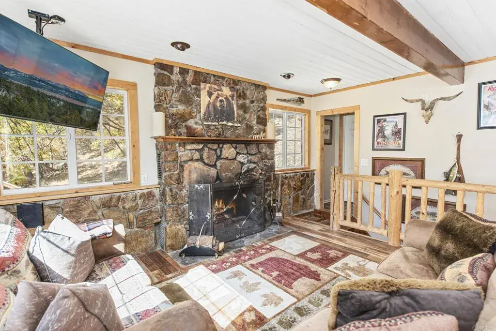 Experience elevated mountain living in the heart of Moonridge, just blocks from Bear Mountain Resort. This tastefully updated 3-bedroom, 2-bath cabin blends modern upgrades with timeless lodge character, featuring fresh exterior stain, two fireplaces, and updated kitchens and bathrooms. The home’s versatile layout includes a main-level full kitchen plus an upper-level kitchenette, ideal for hosting guests or maximizing rental income. Set on a premium 1/3-acre lot (not one of those small 2500sqft lots), the property offers sweeping views from the expansive front deck and room for future outdoor enhancements, as well as options for snow play on your very own hillside!. This is the perfect retreat or investment in one of Big Bear’s most desirable neighborhoods.