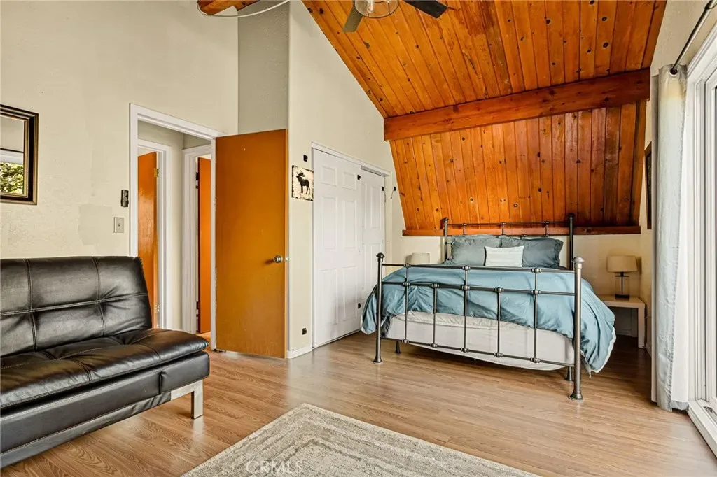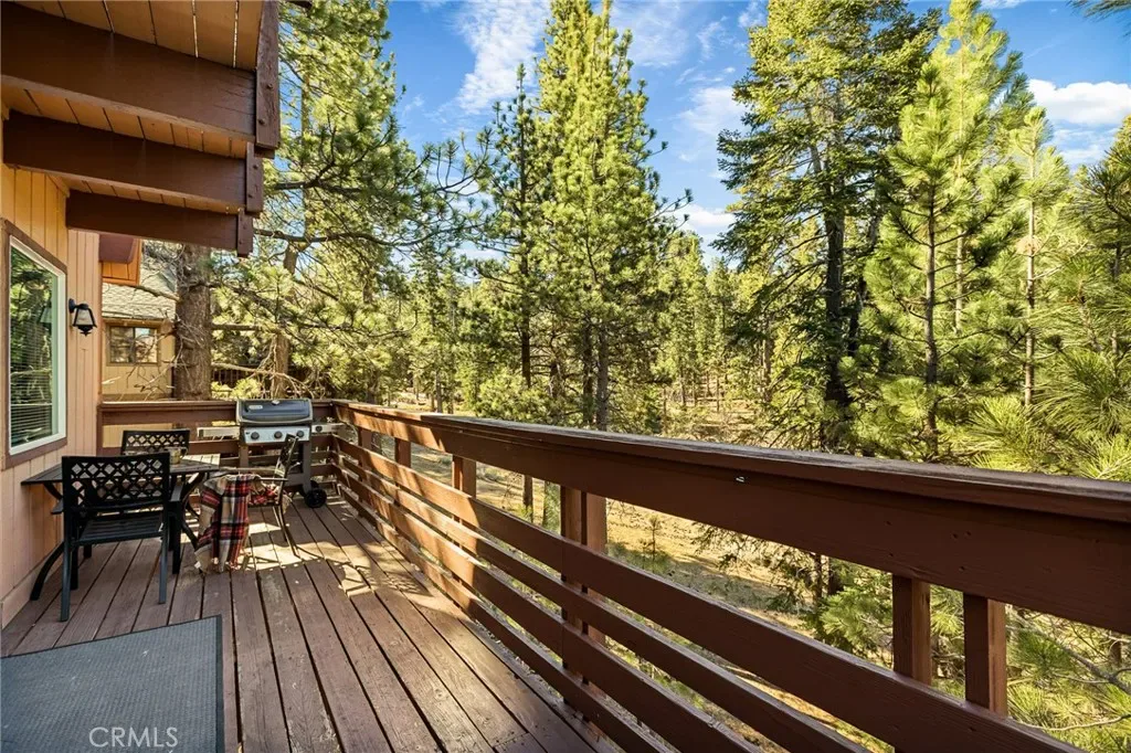 Incredible opportunity in one of Big Bear’s most sought-after neighborhoods! Located near the end of a quiet cul-de-sac in Moonridge and adjacent to the national forest for endless hiking, snowshoeing, sledding and mountain biking opportunities right from the backyard! This beautiful home, recently updated with new flooring and kitchen counters, features a cozy living room with beamed ceilings, 3 bedrooms and 2 bathrooms (one bed and bath on main level for easy living). This property features dual pane windows and sliders throughout, ample parking and a new jacuzzi overlooking the forest and has been a successful short term as well as long term rental. Easy access to the ski slopes, the newly enhanced Moonridge Village with restaurants, shops and small businesses. Quiet and serene, yet minutes to all the best Big Bear has to offer!