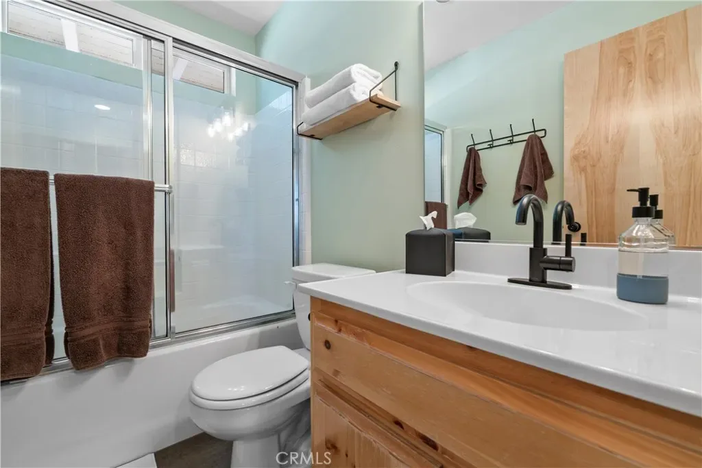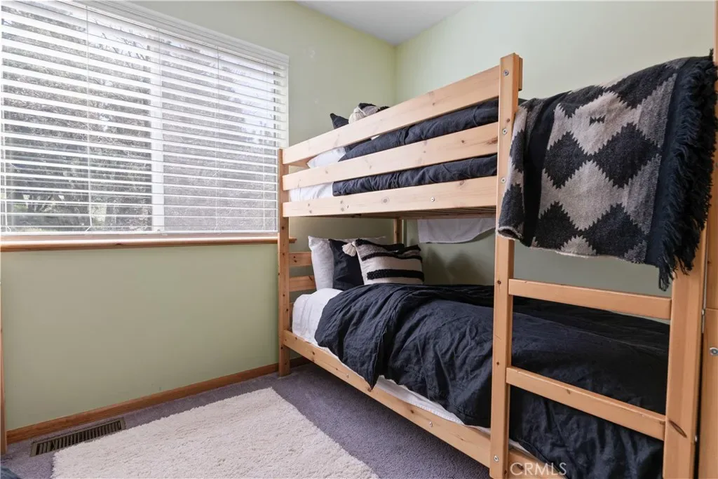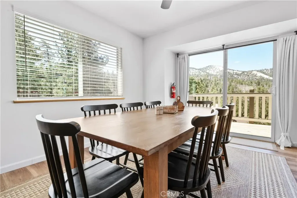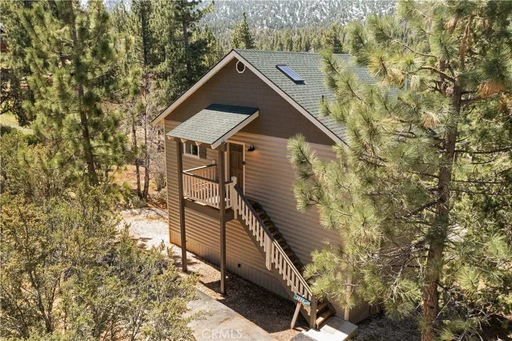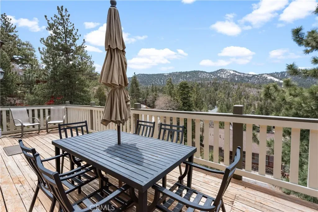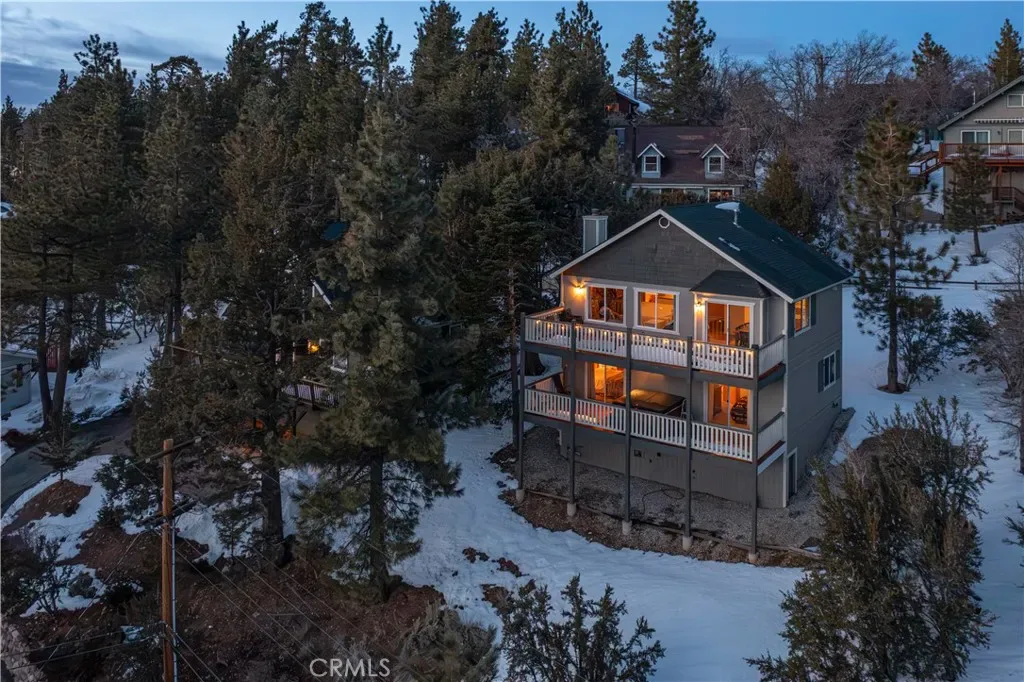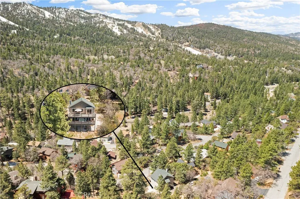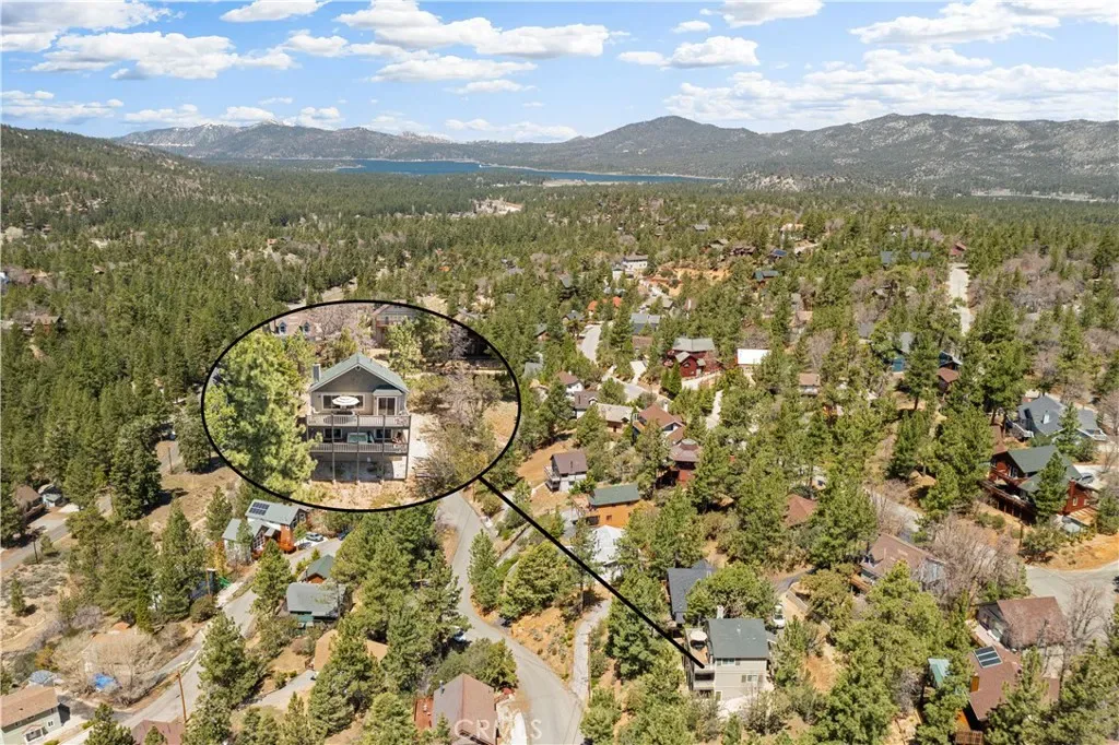 Stunning unobstructed mountain views! This home is in an amazing location nestled into the hillside in a quiet Moonridge neighborhood. With close proximity to the National Forest Trailhead and the secluded nature of this home you will have an amazing mountain experience every time you are at the home. Approximately 1.5 miles to Bear Mountain, Alpine Zoo, and Bear Mountain Golf Course. 3.5 miles to Snow Summit. The open floor plan features a spacious kitchen, vaulted ceilings, and lots of natural light. Amazing views from a majority of windows throughout the property. Sits on a large lot with lots of privacy. Enjoy the two large decks (and spa) for outdoor entertaining and panoramic mountain views. Take in the skiers on the slope, and lake view! This reverse floor plan has a beautiful rock fireplace, stainless steel appliances, and new fixtures throughout. The upstairs is freshly painted with new vinyl plank flooring. The bottom floor offers three bedrooms, two full bathrooms, laundry with your open living upstairs! Direct access to property from Canyon Crest. Driveway has recently been lengthened and has room for about 5 vehicles. Tons of storage under the deck/house.