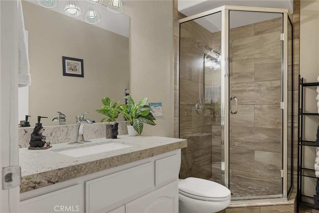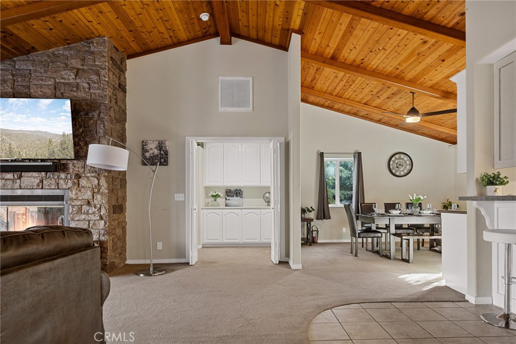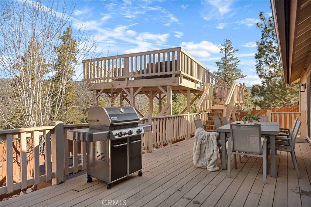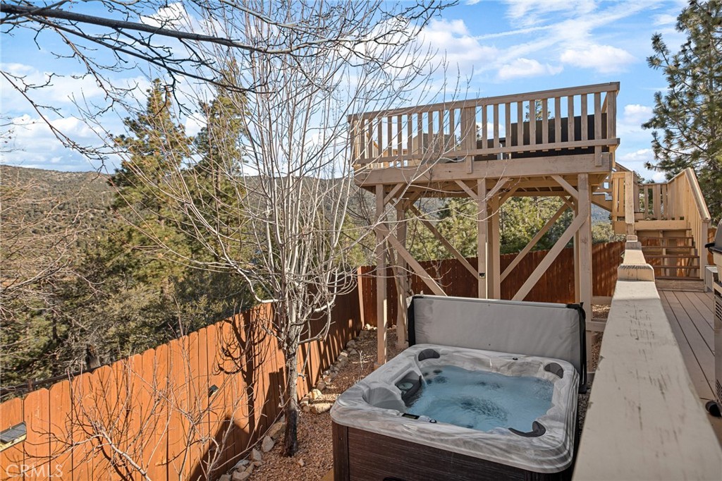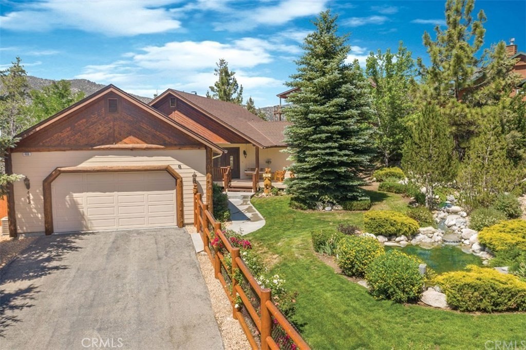 Located on a quiet cul-de-sac in prestigious Castle Glen Estates, this wonderfully landscaped property offers a fully fenced park-like setting, centered around water features, mature trees, and a signature blue spruce. Inside, the open great room floor plan features vaulted ceilings and a rough-finished stone wood-burning fireplace. Large windows throughout the living space frame the backyard scenery offering a light and bright feel. While the formal dining room is an option, the kitchen itself serves as a functional centerpiece with quality cabinetry, a central island, and a breakfast bar. The primary suite provides a comfortable retreat with dual closets, marble counters, and custom tile flooring, offering direct access to the lower deck. For broader views of the lake, mountains, and Baker’s Pond, the elevated sky deck provides a distinct outdoor vantage point while spacious outdoor decking with BBQ and new 6 person hot tub make for great entertaining as well. There’s even a full game room in the converted garage! Additional premium features include air conditioning, hot water recirculation pump, water filtration, and a water softener. This tranquil getaway has been very popular with vacation renters and has an impressive rental income history. Don’t miss out on this gorgeous and serene getaway in the heart of Big Bear!