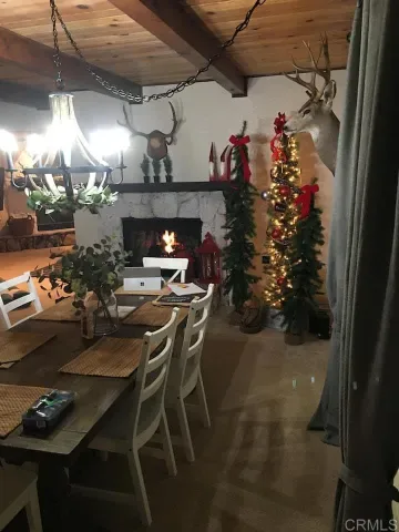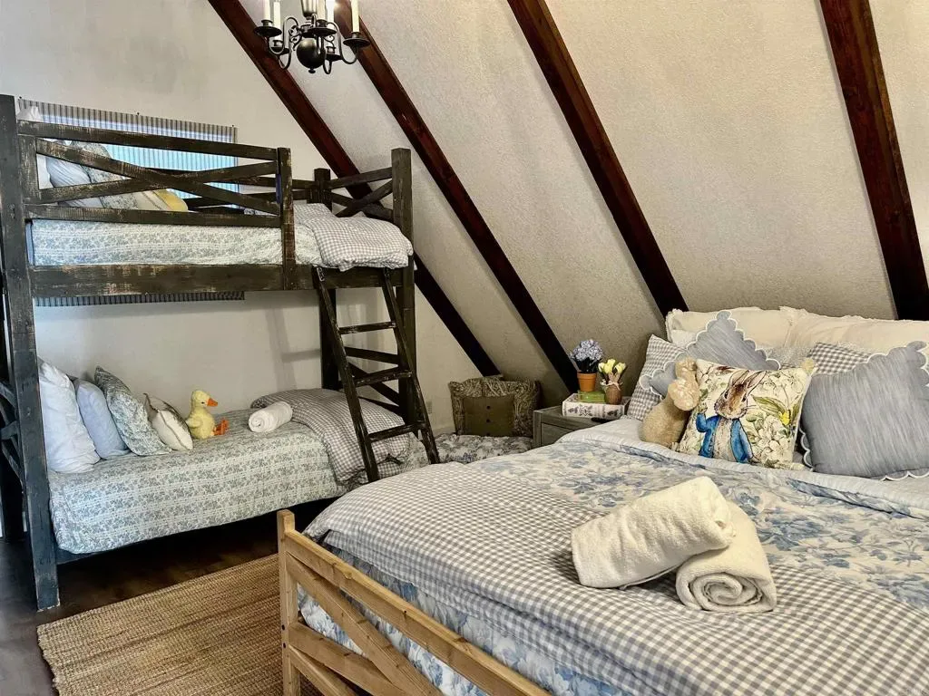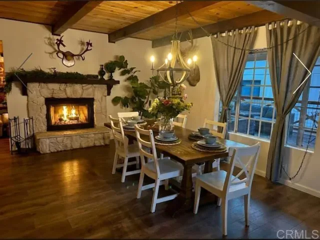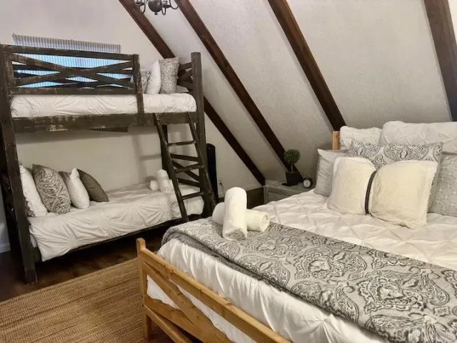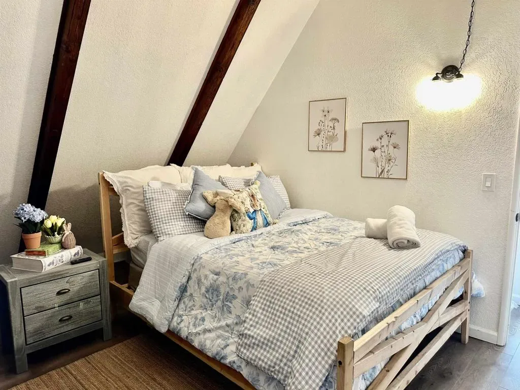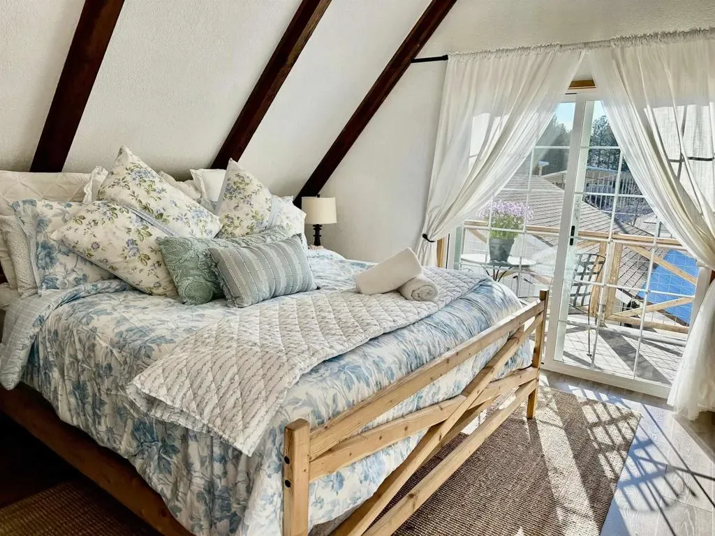 DO NOT GO ON PROPERTY WITHOUT CONFIRMED APPOINTMENT. Tucked among the pines, this beautifully designed Big Bear retreat offers a peaceful magical mountain setting that must be experienced in person to fully appreciate. Just minutes from the heart of Big Bear Lake, this successful vacation rental is on a large usable 7,250 square foot lot. Inside, the home is warm and welcoming with knotty pine ceilings, two cozy fireplaces, and a layout that works well for both everyday living and hosting guests. Natural light fills the space and the connection to the outdoors is felt throughout. One upstairs bedroom opens to its own private balcony, while the main level extends to two ground-level decks surrounded by mature pines and crisp mountain air. The kitchen opens directly to the main living area, making it easy to gather, entertain, and enjoy the home together. Additional features include central heat and air conditioning, a stacking washer and dryer a recently painted exterior, and a back-up power system. An oversized detached two car garage offers excellent storage with built-in cabinetry and a second dryer, a valuable feature for mountain living and/or guest use. The flat lot, central location, and functional layout make this property well suited as a primary residence, second home, or income-producing short-term rental. Located near downtown Big Bear Lake, the Village, Snow Summit, Bear Mountain, and Big Bear Lake, the setting supports strong year-round demand. This is a rare opportunity to own a beautifully designed well-located Big Bear home that offers both lifestyle enjoyment and long-term value. Don’t miss out!! Do not go on the property without a confirmed appointment.