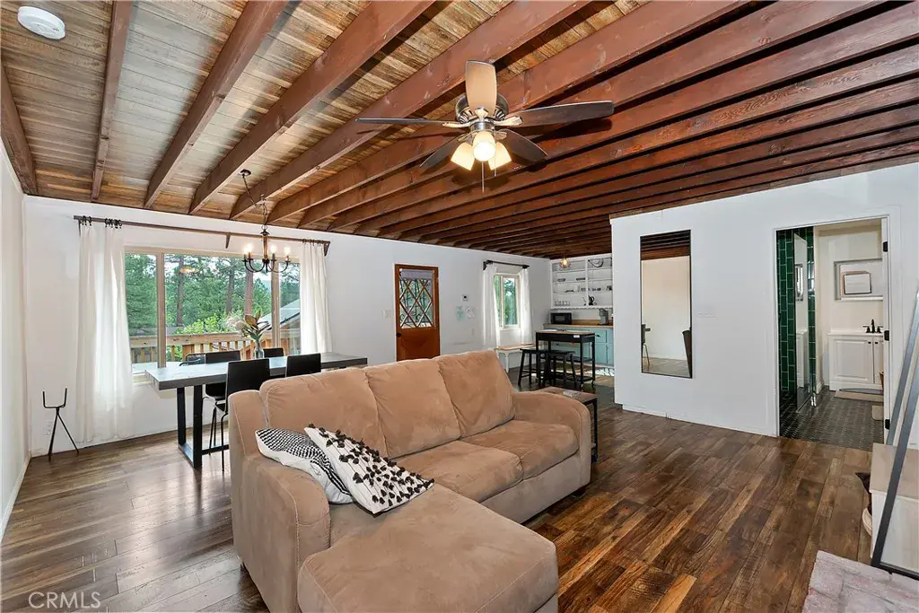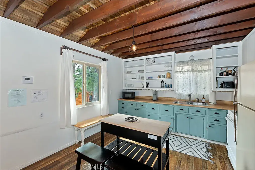 Cozy 2 bedroom 1 bath cabin Located in the Big Bear Marina Neighborhood of Big Bear LAKE and near The Village downtown area. Slightly sloped lot with 2 parking spaces in front. The open floor plan showcases an exposed wood ceiling in the living room with a fireplace. Spacious open living room, kitchen and dining area for hosting large groups. Fully renovated bathroom with large standing shower. Property is fenced with a spacious backyard for a potential room extension for a large footprint or other options. Newer water heater. Cabin can be offered fully furnished. Vacation rental potential, inquire with the local city for any interest on vacation rental requirements.