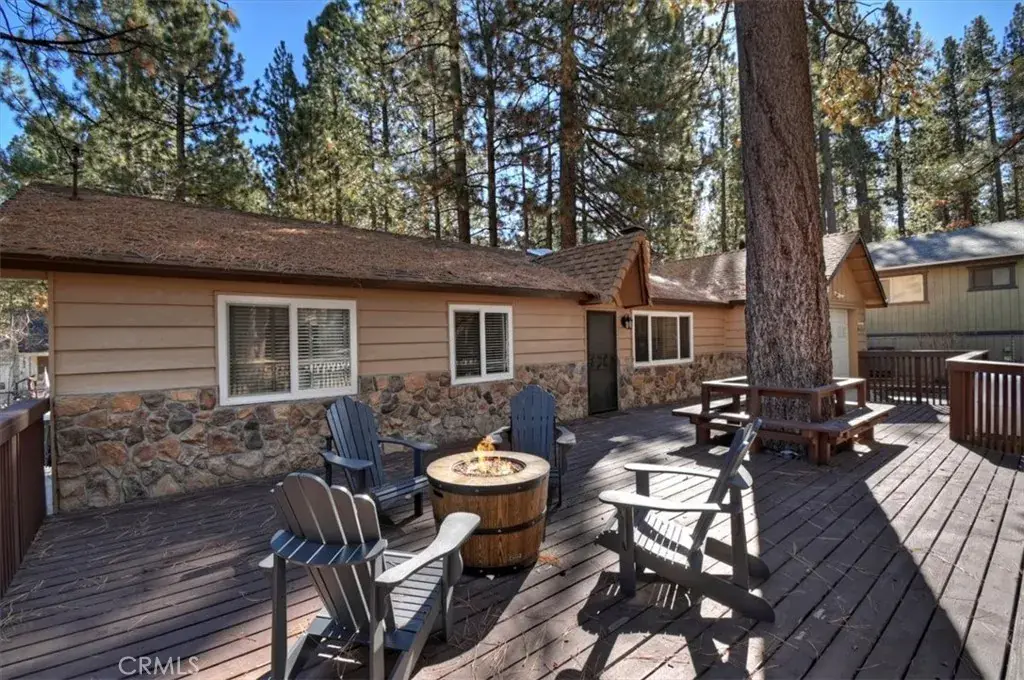 TWO BLOCKS FROM THE BASE OF SNOW SUMMIT! Wait until you see the fabulous location andimmaculate condition of this recently renovated, three-bedroom, two-bath, single-story home with anattached garage in SUMMIT ESTATES. Features include an open kitchen, dining and living room,vaulted ceilings with skylights, T & G wood accents throughout, extensive front and (back-redwood)decking, a cozy used brick fireplace, efficient dual pane windows, central natural gas heating, knottyalser cabinetry, SS kitchen appliances, quartz countertops, Full laundry hook-ups, single oversizedsingle car attched garage, a huge storge shed and a private outdoor spa all on a fenced, 8,250 sq ftlevel lot in high demand area of Summit Estates.