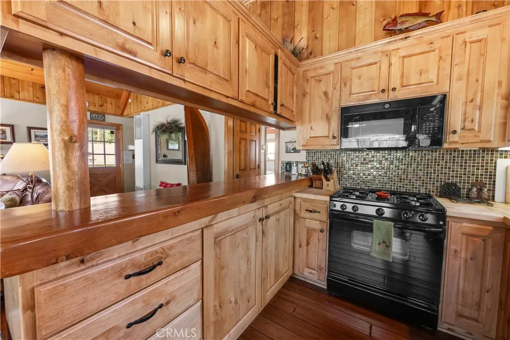 Charming Cabin in a Prime Location! Located near dining, shopping, and year-round activities, this inviting cabin blends rustic charm with thoughtful updates. Inside, you’ll find a warm neutral color palette, dual-pane windows, wood trim, and blinds. The kitchen features beautiful hickory cabinets with self-closing drawers, black appliances, butcher block counters, mosaic tile backsplash, farmhouse sink, and a dining area. The living room boasts vaulted open-beam tongue-and-groove ceilings, a stone fireplace with efficient wood-burning insert, and durable bamboo flooring, which stands up to snowy boots well. The bathroom is beautifully updated with ceramic tile, a stone countertop, and set up for heated floors. Two main-level bedrooms showcase tongue-and-groove ceilings, mirrored closets, individual wall heaters, and carpet. The loft-style third bedroom offers built-in storage, large windows, and a ceiling fan. The separate garage includes a washer & dryer area and plenty of storage. Outside, the large lot provides ample parking, mature trees, a fenced backyard, and a spa for relaxing after a day of mountain adventures. This cabin is the perfect blend of mountain character and modern comfort—ready for your weekend getaway or full-time retreat!