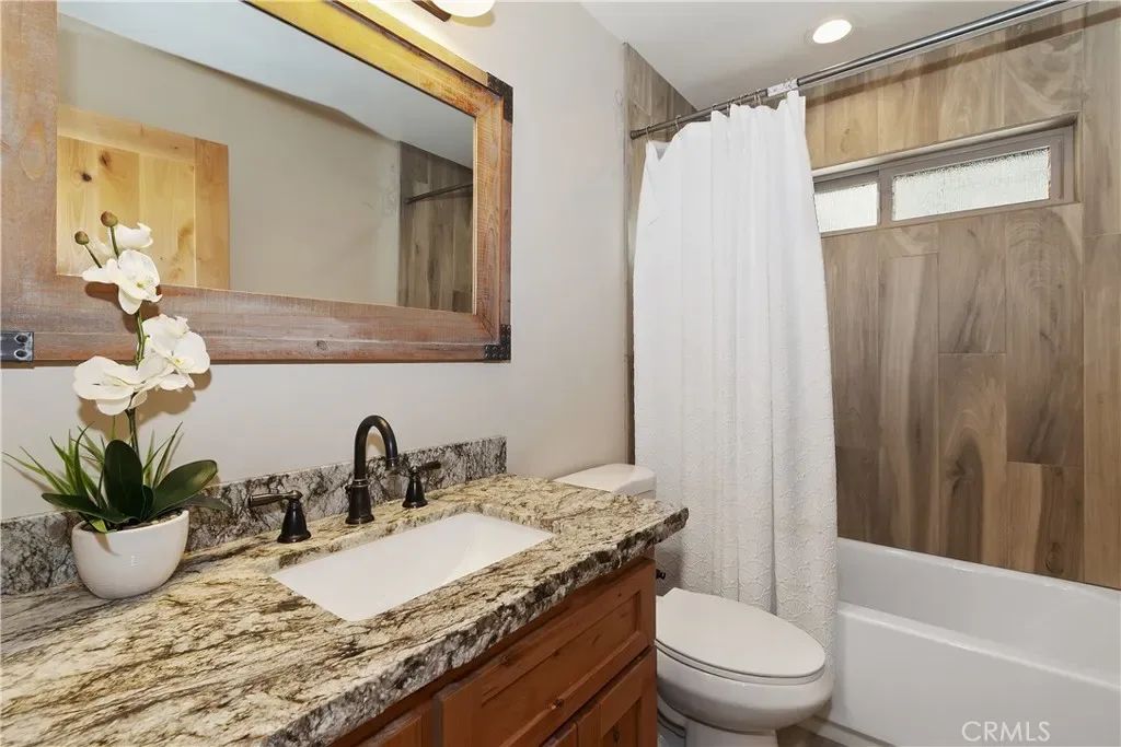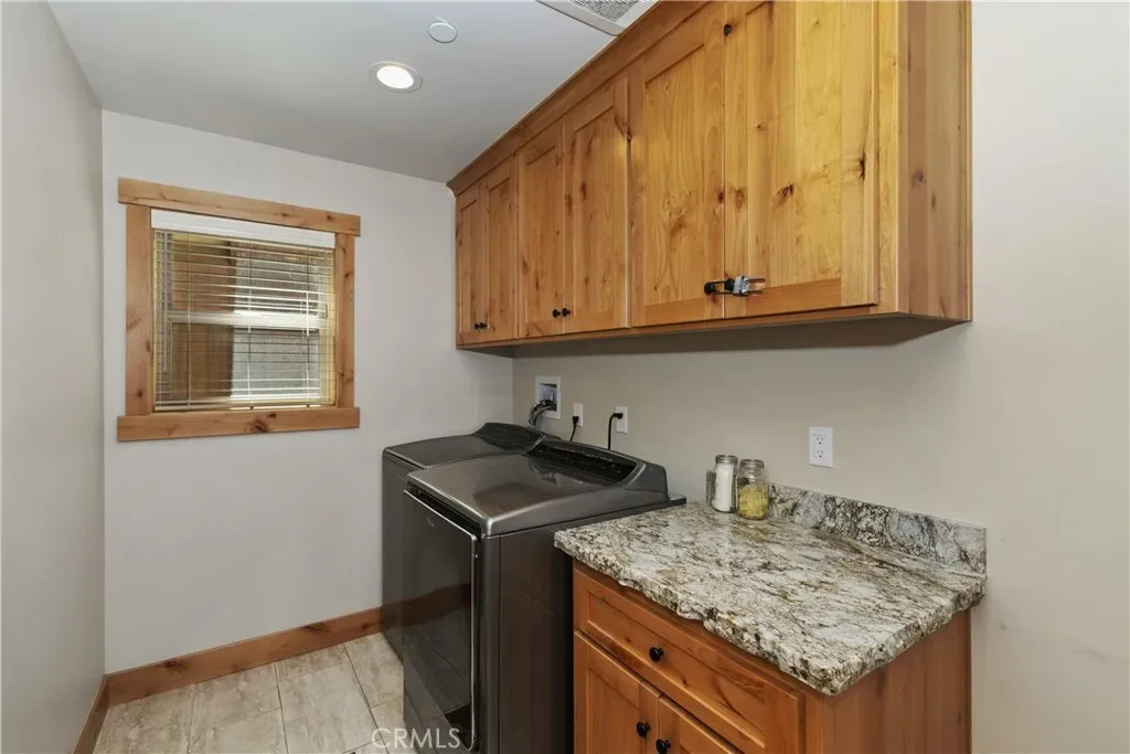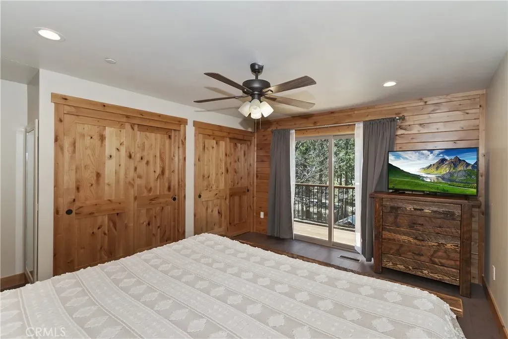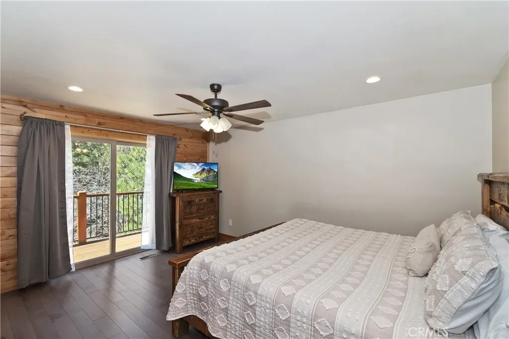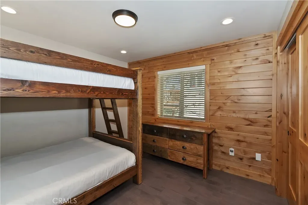 Stunning 2019 built, single story, level entry, mountain retreat in a prime central Big Bear Lake location ~ Experience refined mountain living in this exceptional custom-built home ~ It’s had one loving owner and is ideally situated close to the top of a street that ends at the access to Town Trail and other Snow Summit trails, is just minutes from the ski slopes, Big Bear Lake, and walking distance to the Village ~ Featuring 1,613 square feet of open, light and bright living space, this home has 3 bedrooms and 2 bathrooms, and is thoughtfully designed with high-end finishes ~ The expansive great room showcases soaring vaulted Alderwood ceilings, rich engineered hardwood flooring, and an impressive floor-to-ceiling rock fireplace—creating a warm gathering space ~ The large kitchen is both elegant and functional, appointed with granite countertops with a live edge, large center island with lots of cabinets, custom Alderwood cabinetry, and stainless steel appliances, even has a dishwasher ~ It’s perfect for entertaining or quiet evenings at home ~ The primary suite offers a slider out to the deck, large closet and ceiling fan ~ The master bath has double sinks, a beautifully tiled walk-in shower featuring a flat pebble stone floor and granite accents, and more gorgeous Alderwood cabinets ~ Step outside to enjoy the serene mountain setting from the covered front porch or the private rear deck, both redwood with wrought iron accents—ideal for entertaining beneath the pines ~ This home offers year-round recreation and luxury mountain living at its finest ~ Additional amenities include a tankless water heater, fully finished insulated garage with electric vehicle charging capability, and a striking exterior of low-maintenance siding accented by stone and shake detailing ~ This comfortable and solid home would make a wonderful primary residence or vacation home, and with its exceptional location and layout, it has a lot of short term rental potential.