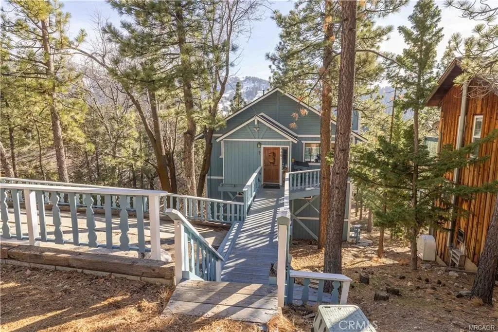 Welcome to 846 Menlo in the highly desirable Moonridge area of Big Bear lake, where privacy, views, and mountain serenity come together. Situated on the an expansive 19,592 sq ft lot this home captures panoramic ski slope views of Bear Mountain from every room, along with peek-a-boo lake views to the west. Surrounded by towering pines, open space, and frequent wildlife, this property offers the peaceful feeling of becoming one with natural surroundings while escaping the noise of the city. The home features 2 bdrm, 3 bathrooms, and 1416 sq ft of living space plus an additional 660 sq ft of build out basement space, creating the potential for up to 2076 sq ft of useable space. Both bdrms are spacious primary suites with 2 closets, offering comfort and flexibility for family or guests The inviting living room showcases vaulted wood ceilings, cozy fireplace, and large windows that frame the breathtaking views while filling the home with natural light. Multiple spacious decks off the living room and bdrms provide the perfect setting for morning coffee, evening sunsets, and relaxing in the fresh alpine air.