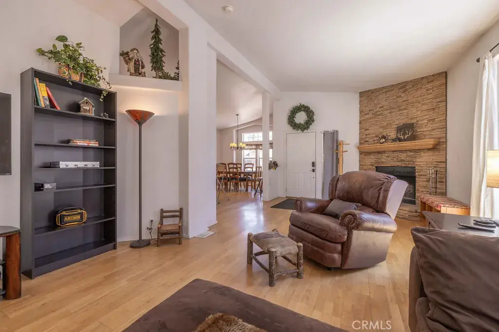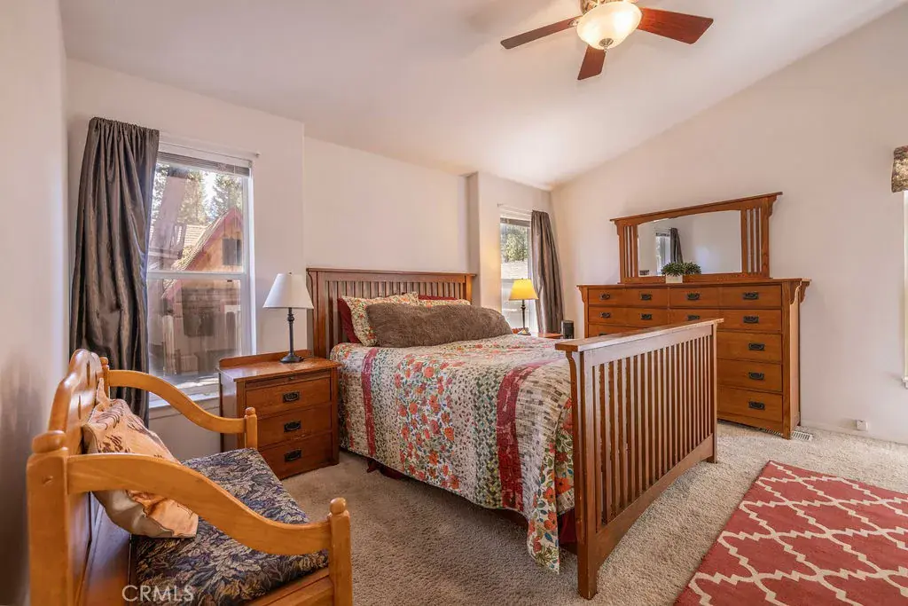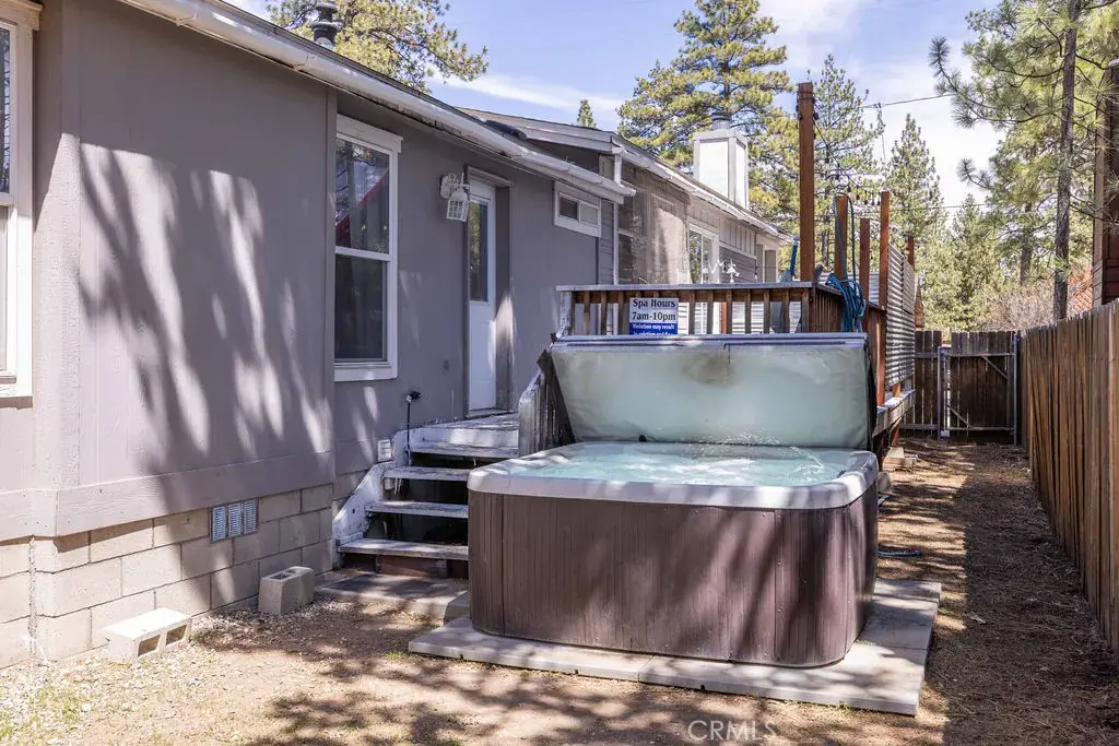 This bright, clean and cozy Big Bear City home has all the creature comforts one would want in a full-time home, mountain getaway, or rental investment! The kitchen features a breakfast bar in the island, lots of prep space, and a cozy dining alcove. In the living room, a warm and inviting fireplace welcomes you to shake off the mountain chill, and vaulted ceilings and dual pane windows through, plus ceiling fans in every bedroom, provides an escape from the summer heat. The fully fenced backyard gives a safe space for pets or kids, and the privacy screened deck provides an intimate space for entertaining or soaking in the hot tub. This neighborhood is unique in that it receives mail and Amazon delivery, as well as trash pick up at this address, compared to many Big Bear Lake neighborhoods that do not receive these convenient services. Located a couple block from national forest hiking trails, and just a short drive to the convention center, sledding area, lake, slopes, and Village, this tastefully furnished home is currently operated as a vacation rental and is turn-key ready to start producing income and making memories!