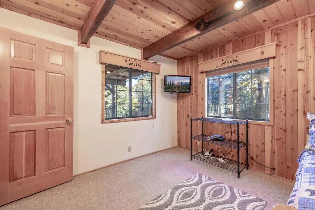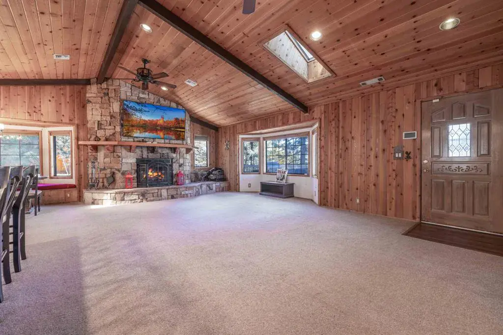 Located in the desirable Upper Moonridge area of Big Bear. Beautiful, treed setting with 2 large decks to take in the stunning mountain views. The huge living room has a gorgeous stone floor to ceiling fireplace. With 4 bedrooms there is lots of space for the whole group. The 4th bedroom is a bonus room with a door and cozy fireplace. The kitchen and bathrooms have been nicely updated. There is also a treehouse in the back for the kids to play in and a spa room to soak in after a day enjoying the great outdoors of Big Bear. You won’t get too hot in the summer because this house is equipped with air conditioning too. Vacant lot next door is also listed. Own both to have a nice expansive spread, or build another home and have your own compound.