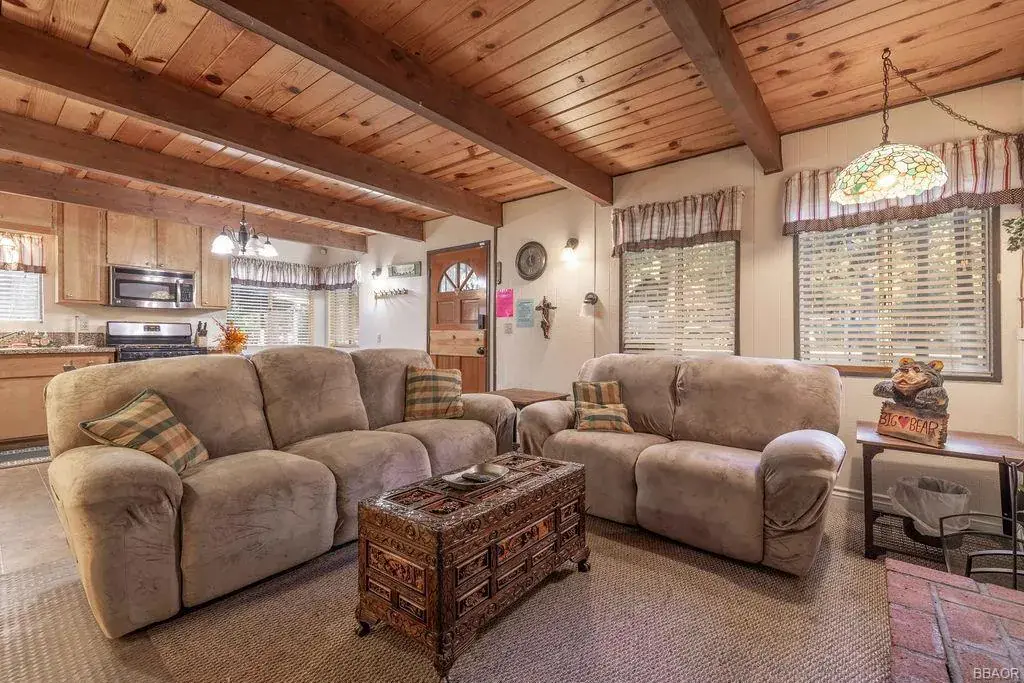 This inviting chalet-style home features two oversized bedrooms, two updated bathrooms, and a spacious loft that can serve as a third bedroom, game room, or home office. A main-level bedroom offers the ease of single-level living, while the upstairs bath boasts a deluxe steam shower–nice for relaxing after a day of mountain adventures. The updated kitchen showcases granite countertops and flows into a cozy living area centered around a classic wood-burning fireplace, for chilly evenings. Recent upgrades include a mini split inverter A/C, a 240-amp electrical panel to accommodate modern needs, as well as a newer water heater and wall heater. Set on a large, level 5,000 sq ft lot, this home offers ample parking and room to expand. Step outside to enjoy two upper decks–one off the bedroom and one off the loft–for sipping morning coffee or stargazing under the mountain sky. Located just minutes from Big Bear Lake, Snow Summit, Bear Mountain, and the Village, this property is your gateway to year-round outdoor recreation–whether it’s hiking, biking, skiing, or simply unwinding in nature.