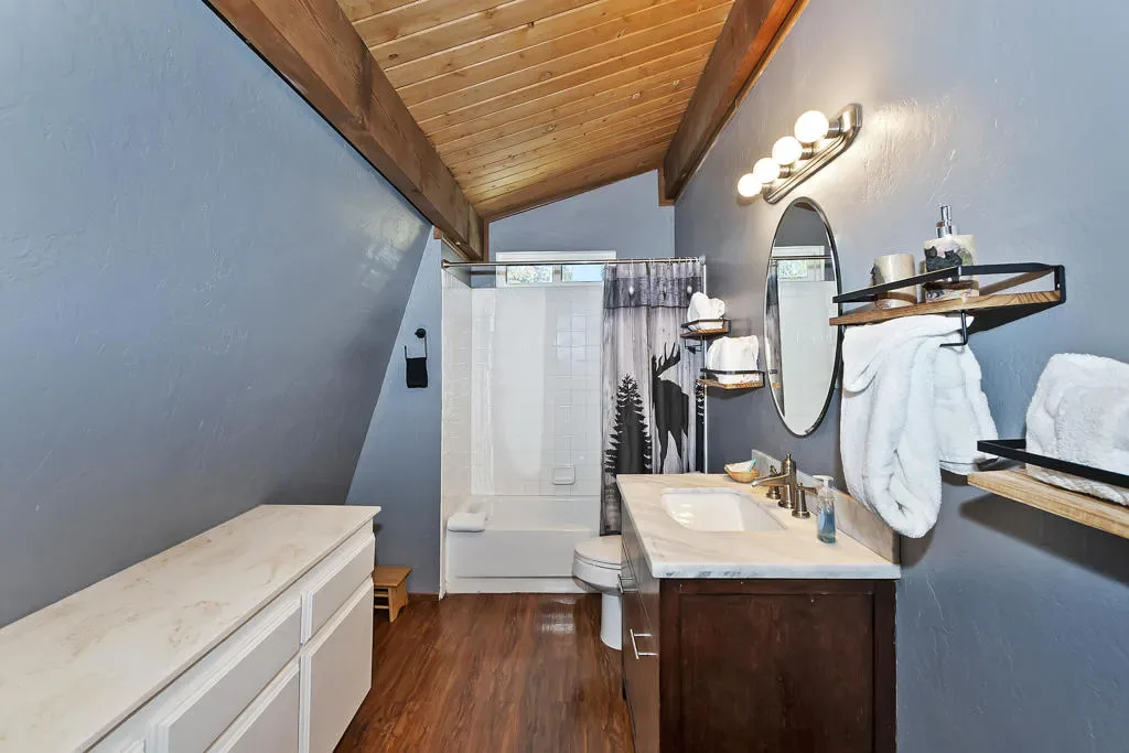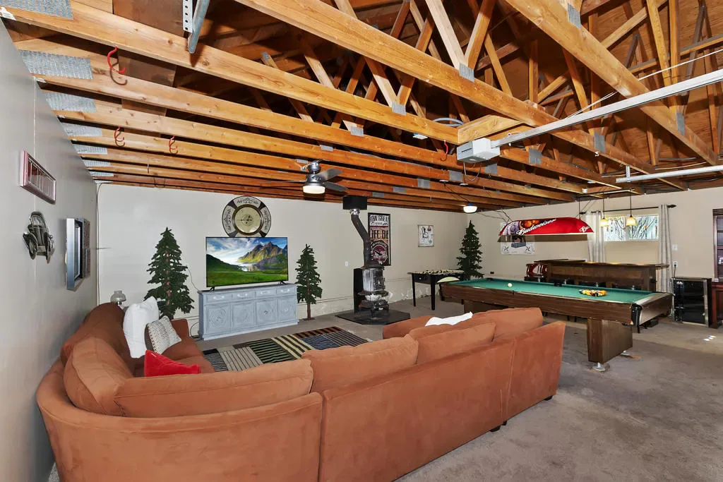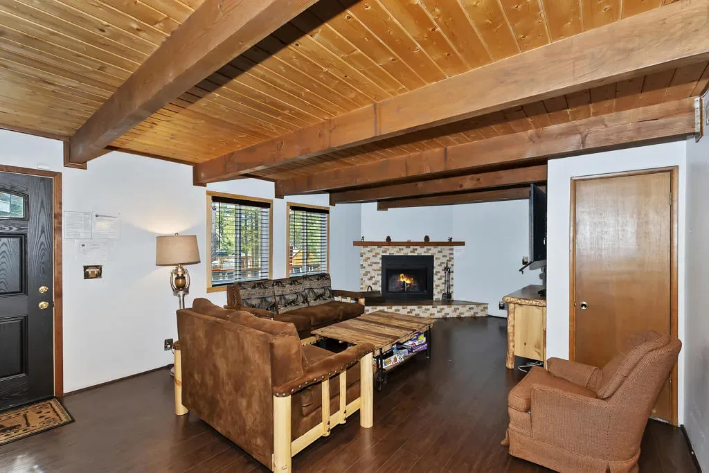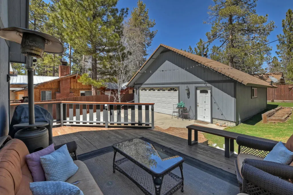 Escape to the pines! This 3-bedroom, 2-bath mountain retreat perfectly balances rustic character with modern updates. Located just a stone’s throw from The Village, Big Bear Lake, and National Forest trailheads, the location is unbeatable for year-round adventure. The interior features an open-concept living space anchored by a classic stone fireplace and an updated kitchen with sleek countertops and bar seating. The real showstopper is the expansive, fenced backyard–a quite oasis featuring a multi-level deck, string lighting, a fire pit, and a horseshoe pit. The converted garage serves as a massive game room with a bar, pool table, and foosball, offering the ultimate entertainment space. Complete with a three-car driveway (RV/Boat parking included!) and a charming front porch swing, this cabin isthe quintessential Big Bear getaway.