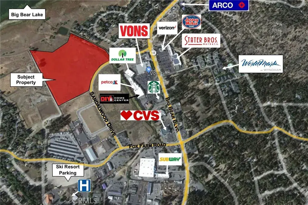 THE LAKE IS UP! CHECK THIS RARE 25 ACRE LAKEFRONT LOT ZONED GENERAL COMMERCIAL. This Commercial Land Offering is the Last Acreage of the Wild Frontier in Big Bear Lake. This 24.91 Acre Parcel runs from the Lake to Sandalwood Drive. Lake Frontage measures 826 feet and is nearly level all the way to Sandalwood Drive. All utilities are available including Sewer and Natural Gas. Imagine the possibilities… Approved for Marina Use…. or a Horseshoe Shaped Channel for Boating Access from the Lake to Retail Shops & Restaurants (Mixed Use). The Possibilities are Endless. Address has not yet been assigned to this property.