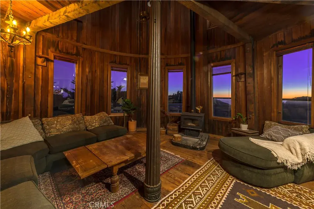 At the heart of the property is the main residence, “The Barrel House,” offering more than 2,000 square feet with sweeping ocean views, two living areas, and a spacious deck designed for effortless indoor-outdoor living. Upstairs, three bedrooms are framed by floor-to-ceiling windows that capture views of oak trees, rolling valleys, and the Pacific beyond.