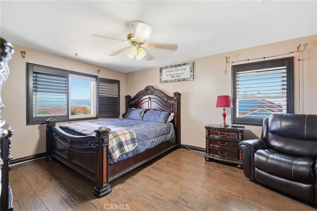 **NEW IMPROVED PRICE!**Welcome to this beautiful Mediterranean-style home at 11970 Walnut St. in the heart of Bloomington. Built in 2004, this spacious 2,738 sq. ft. residence sits on a nearly half-acre lot and offers a rare combination of mountain views, modern comfort, and expansive outdoor space. With 5 bedrooms and 4 full bathrooms, the thoughtfully designed layout is ideal for multigenerational living. The main level features a bright living room filled with natural light, a private primary suite with granite countertops, two additional bedrooms with a shared dual-sink bathroom, and an indoor laundry room with direct access to the attached two-car garage. Upstairs offers an open-concept kitchen with granite countertops and abundant cabinetry that flows into a spacious family and dining area with tile flooring—perfect for everyday living and entertaining. Two oversized upstairs bedrooms each include their own private full bathroom, providing excellent separation for next-gen living arrangements. Step outside to a massive backyard with a large covered patio and terraced access to an elevated portion of the lot with sweeping mountain and city views—offering potential for an ADU, outdoor retreat, or additional entertainment space. The home also features solar, helping improve energy efficiency and reduce utility costs. Additional highlights include rear gated access, an extended driveway, and RV parking. Don’t miss this unique opportunity to own a spacious home with incredible potential—schedule your private showing today.