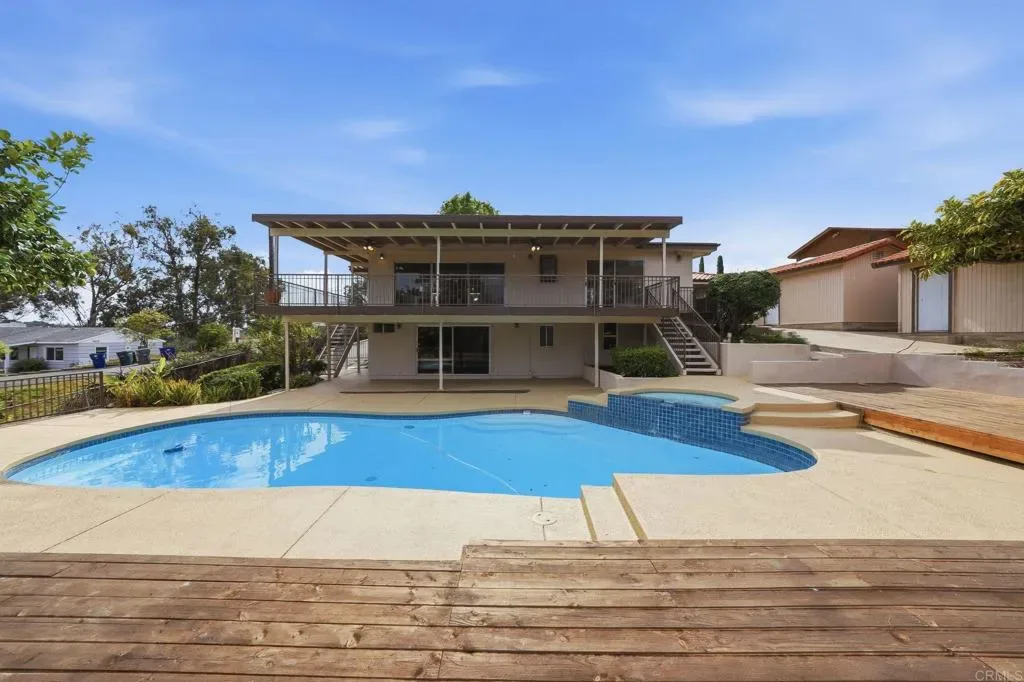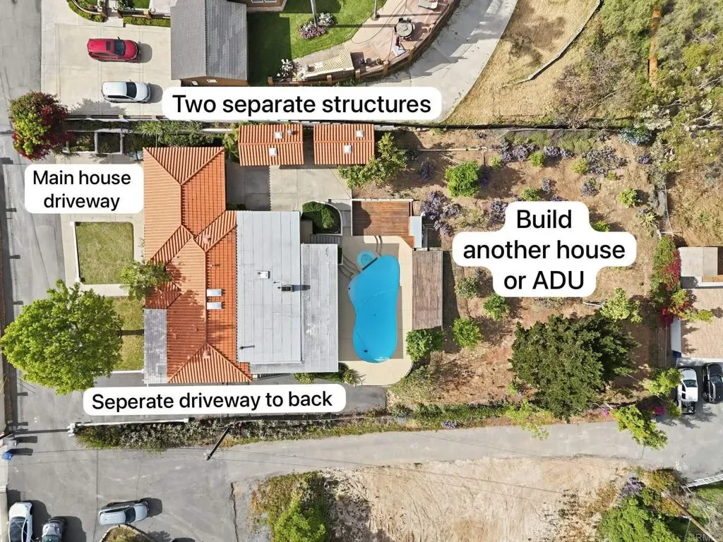 Don’t miss this character-filled Spanish-style home featuring 4 bedrooms, 3 bathrooms, and 3 separate living areas, with one next to the pool including a wet bar perfect for hosting. The layout also offers a private bedroom with its own full bathroom convenient for pool/ outdoor access when entertaining. The house offers a rare feature with double garage doors. The main living space opens to a large deck with beautiful views toward Bonita, overlooking the pool and creating a seamless indoor-outdoor living experience. Throughout the property, you’ll find existing railing and fencing that is hard to come by in large properties saving you significant money. A standout feature is the two separate driveways, including one that leads to additional land with incredible potential. This space is ideal for a custom Spanish home, another ADU, or possible lot split with resale opportunity. The property also includes two detached structures, offering flexible use as office space, storage, or guest accommodations. Recent upgrades include ABS plumbing, a newer roof, fresh paint, and updated interior finishes. Zoned for horses.