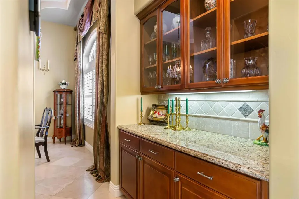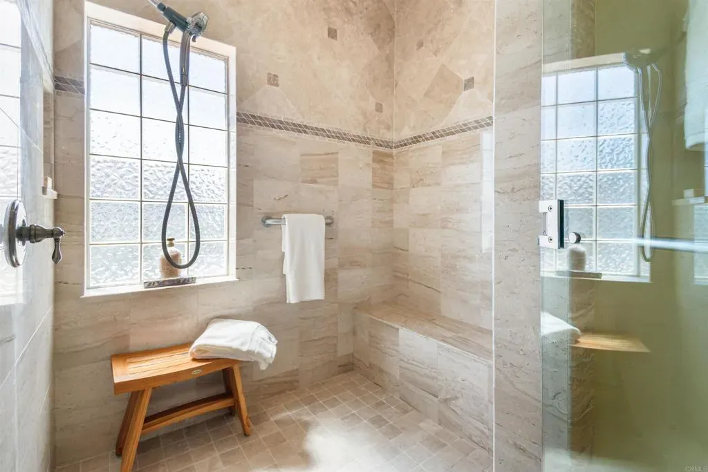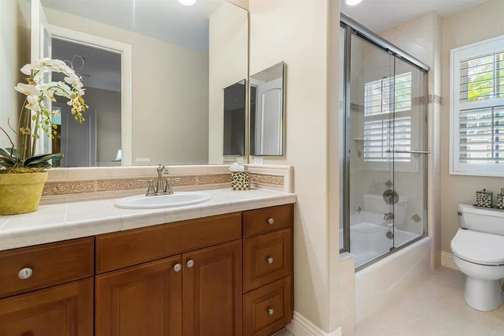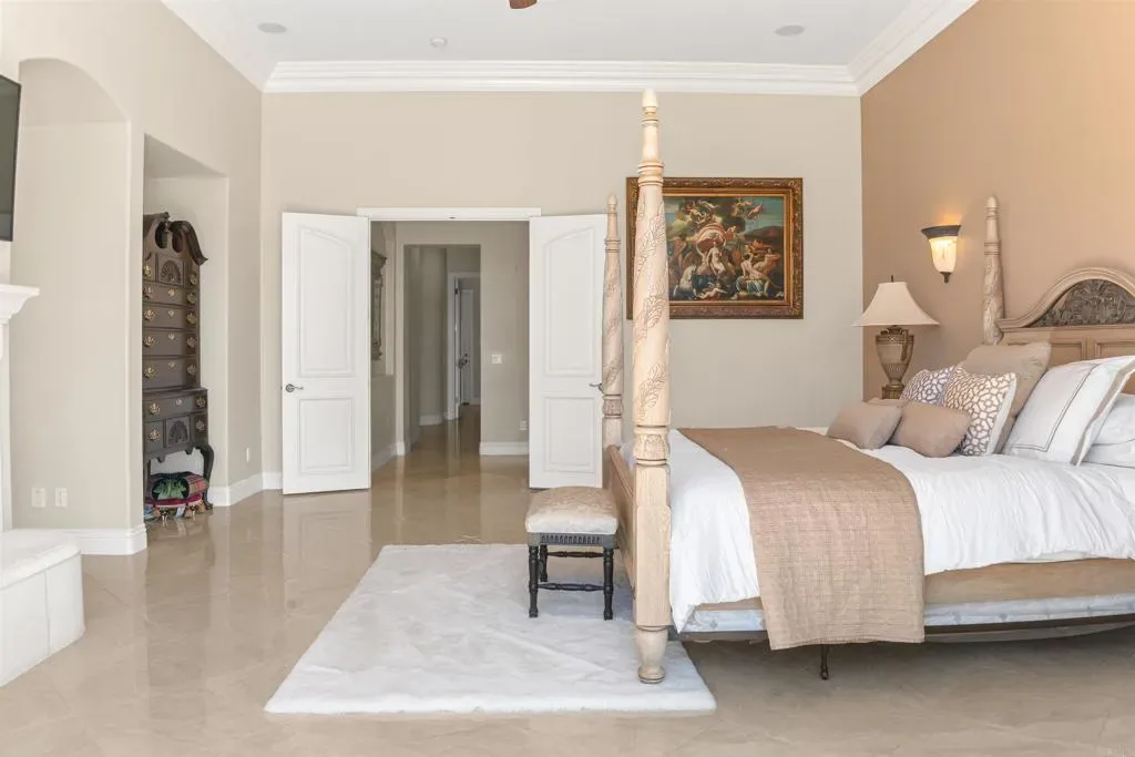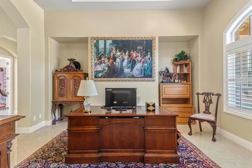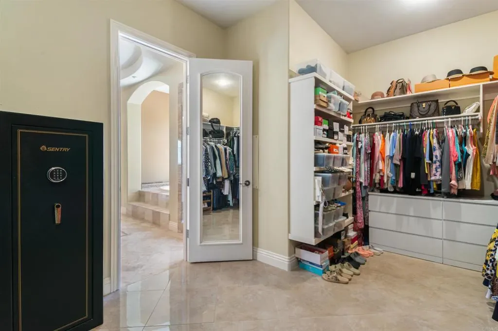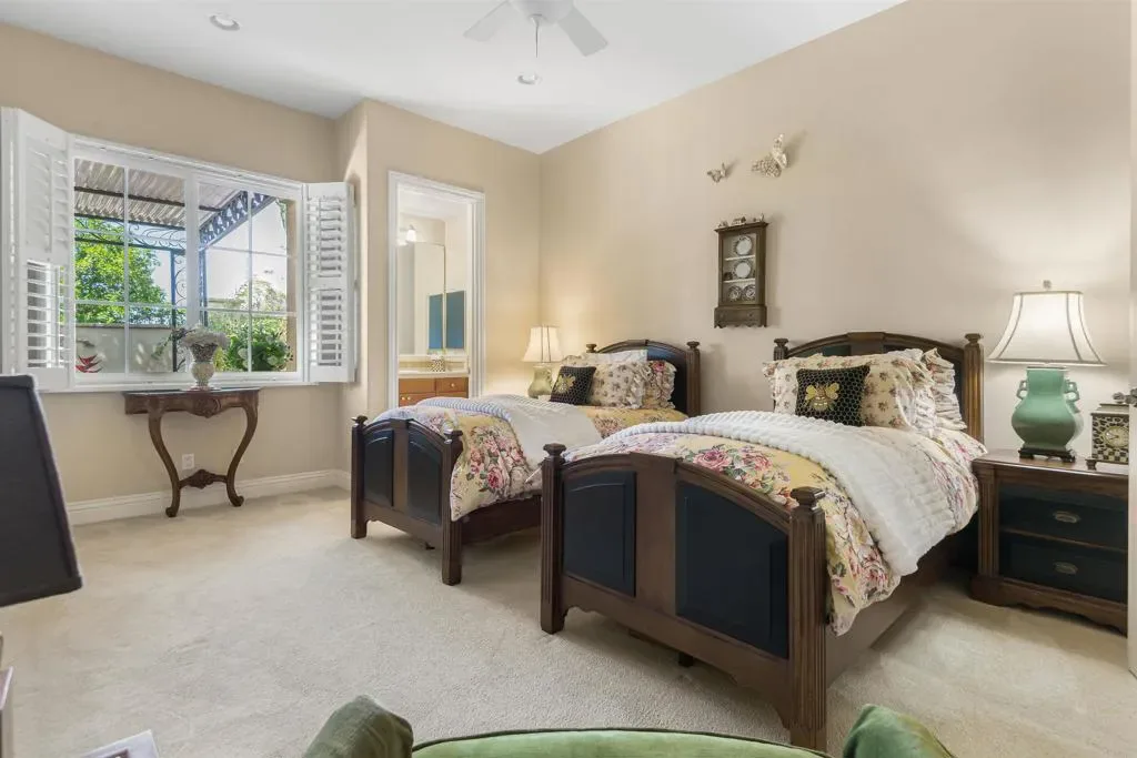Luxury, privacy, and breathtaking views define this single-story 4,400 sq. ft. estate in the prestigious gated community of Château Belle Vue. Set on 2.2 serene acres, this Mediterranean-inspired residence welcomes you with a private curved driveway, custom paver courtyard, and lush, meticulously landscaped grounds. Inside, soaring ceilings, wood-beam accents, and an open, sun-filled layout create an atmosphere of elegance and ease. The gourmet kitchen features high-end stainless steel appliances, a 6-burner range with pot-filler, granite countertops, an oversized island, and a walk-in pantry. The adjoining living spaces offer seamless indoor-outdoor flow, perfect for both everyday comfort and grand entertaining. Custom window coverings, including plantation shutters and designer roller shades, enhance both style and privacy throughout the home and also, motorized rolled shades on the exterior back of the property. The luxurious primary suite provides a peaceful retreat with its own fireplace, a spa-style bath, soaking tub, dual vanities, and a spacious walk-in closet. All additional bedrooms include private en-suite baths. Step outside to your own private resort: an infinity-edge pool, expansive patios, and a pergola-covered outdoor kitchen/BBQ. Two additional covered pergola sitting areas offer the perfect spots to unwind, enjoy the breeze, and take in the stunning sunset views. The grounds also feature an avocado grove, citrus trees, solar, and a 4-car garage. Additional highlights include a waterfall with a lily pond, a private entry gate, and a separate grove service gate, enhancing both convenience and seclusion. All of this is located within just 10 miles of some of San Diego’s most beautiful beaches, offering the perfect blend of country tranquility and coastal lifestyle. A rare opportunity to own a true Bonsall luxury estate, tranquil, private, and crafted for exceptional living.