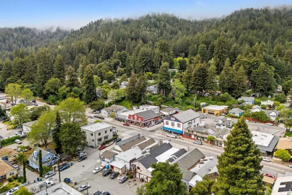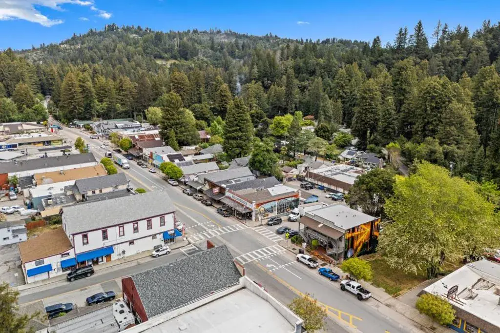 THE CENTER OF TOWN “And a Boulder Creek landmark gathering spot for years”. This well cared for attractive commercial retail-office building is available for the first time in many decades. Two story with balcony and basement, features five separate units each with its own private bathroom. Popular salon and coffee shop bakery downstairs with professional offices upstairs. Ground floor at the rear of the building features off street parking and basement access, approximately 750 sq.ft. with multiple rooms with stair access up to the coffee shop tenant. Long term tenants of many years. Newly painted mural by famous local artist graces the right side of the build facing a proposed future town park area. Great location in sunny downtown Boulder Creek.