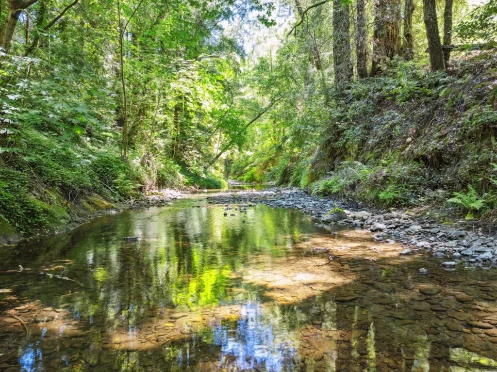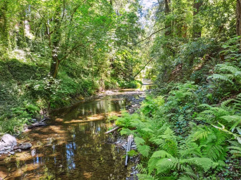 Location, location, location. Private along the creek, yet close to town with an easy drive to Silicon Valley, the beaches and nearby state parks. This charmer has a gourmet kitchen that steals the show with gleaming quartz countertops, custom soft-close cabinetry, a large center island and new stainless-steel smart appliances, it is the heart of this modern 2-story home. Quietly tucked at the end of a private lane the 2,133-SF residence offers a rare blend of privacy, luxury and natural beauty. With 4 spacious bedrooms and 3 bathrooms it’s ideal for families, guests, remote workers or anyone seeking room to breathe and unwind. Vaulted ceilings and skylights fill the interior in natural light, while a dedicated laundry room with new stackable washer and dryer adds everyday ease. Living flows seamlessly outdoors to a 1,525-sq-ft redwood deck perched above year-round Bear Creek, a beloved feature of the home. Whether sipping morning coffee, practicing yoga or hosting evening gatherings, the serene forest setting delivers unmatched peace and privacy. All on just over half an acre, minutes from downtown Boulder Creek yet worlds away in its tranquil redwood sanctuary. A fully equipped smart home designed for remote monitoring, it blends today’s technology with timeless natural beauty.