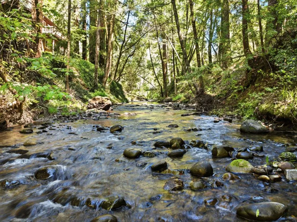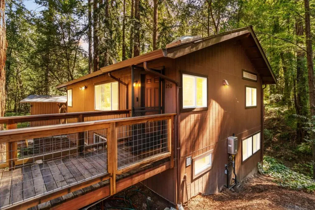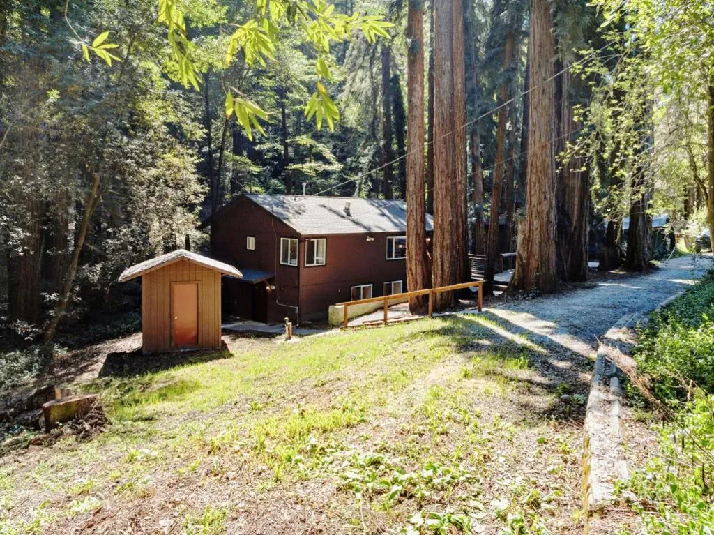Tucked among the redwoods along a wide, year-round creek, this property offers a rare combination of privacy, flat usable land, and flexible living space on approximately 1/3 acre. With no homes across the creek, the setting feels like your own private sanctuary. Vaulted ceilings and skylights fill the home with natural light, creating a bright & inviting living space that feels larger than the square footage suggests. The open living, dining and kitchen area flows out to a sunny deck overlooking the trees and creek below, creating a seamless indoor-outdoor connection. Recent improvements include a remodeled bathroom, updated appliances, and new washer and dryer. The lower level features a private entrance and adds valuable bonus space with two large rooms, a laundry area with potential kitchenette, and an unfinished bathroom ready for your custom bath, offering great potential for separate living space. The property also includes a detached garage/workshop and a separate storage shed, providing excellent space for projects, storage, or outdoor gear. Conveniently located just minutes to town, great commute location to Santa Cruz or Silicon Valley while still enjoying the peace and beauty of the redwoods. Bonus: Septic inspection passed. Home & Pest reports are already completed.