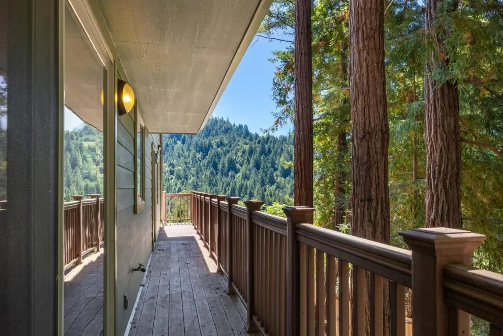 TFT- buyer unable to sell contingent property- back on the market! Stunning custom Chalet home surrounded by magnificent mountain views & very close to downtown! The gourmet cook in you will love the oversized Quartzite kitchen island with prep sink, LG Linear inverter refrigerator, Bosch 5 burner gas stove, Whirlpool convection double oven, LG inverter dishwasher, double sinks set in Quartzite and quiet-close drawers. Elegant walnut wood floors, vaulted beam ceilings, full-wall apex view windows, gas fireplace, dramatic curved staircase, 2 bdrms, an office, a full bathroom and many skylights complete the main living area. The upstairs suite has views, views, views, a tiled bathroom with a cascading rock shower, and a jetted spa tub with towel warmers. The downstairs spaces are perfect bonus rooms and include the laundry room and dumbwaiter to all levels! 7 new ductless mini-split systems throughout provide perfect temperature control while the Generac home standby generator guarantees continual power during an outage. The septic is an engineered Advantex AX20 Treatment system manufactured by Orenco and maintained by Bonny Doon Environmental Systems. Property professionally surveyed by Hanagan Land Surveying. Propane tank is owned.