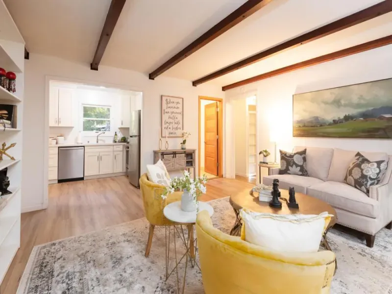 Price reduced in the heart of Boulder Creek. Nestled amidst the serene beauty of the Santa Cruz Mountains, this 2 bed, 1bath home offers a perfect blend of rustic charm and modern updates. 1020 sq ft of living space, this property is ideal for those seeking a peaceful retreat or a cozy year-round residence. Step inside to find a newly remodeled kitchen boasting modern appliances, updated cabinetry, & stylish countertops. The layout is thoughtfully designed, featuring an inviting living area that exudes warmth and character. Convenience is key with indoor laundry facilities, making daily chores a breeze. Outside, the property provides an opportunity to enjoy nature’s tranquility, with space to unwind and savor the surrounding beauty. Located close to downtown Boulder Creek, you’ll enjoy easy access to local shops, dining, & outdoor recreational activities, while still relishing mountain living.