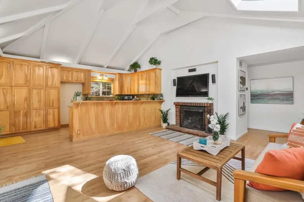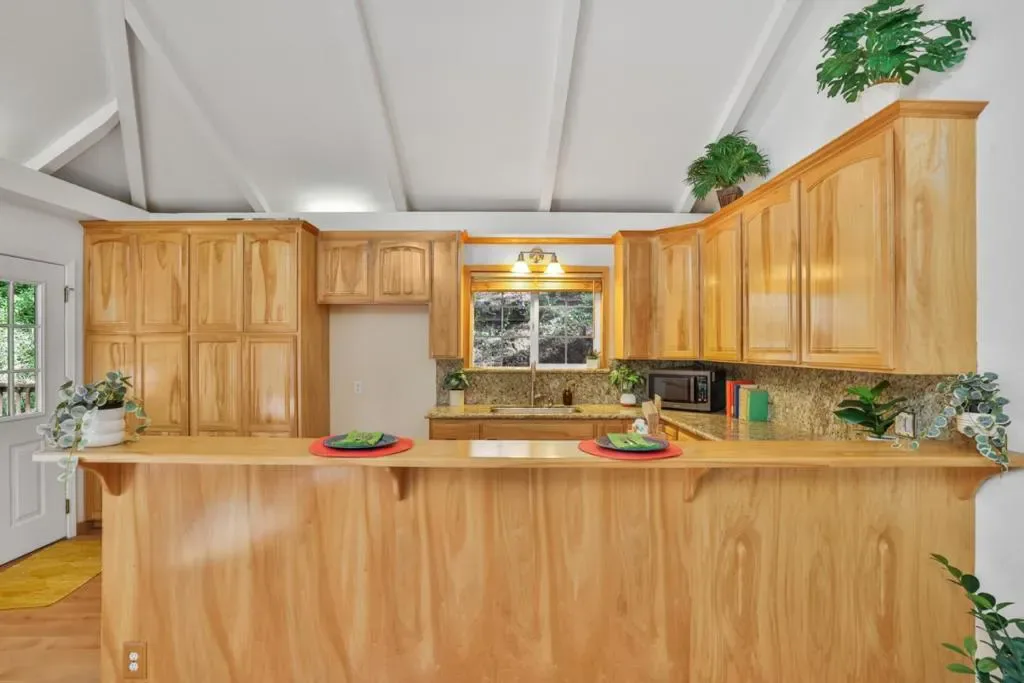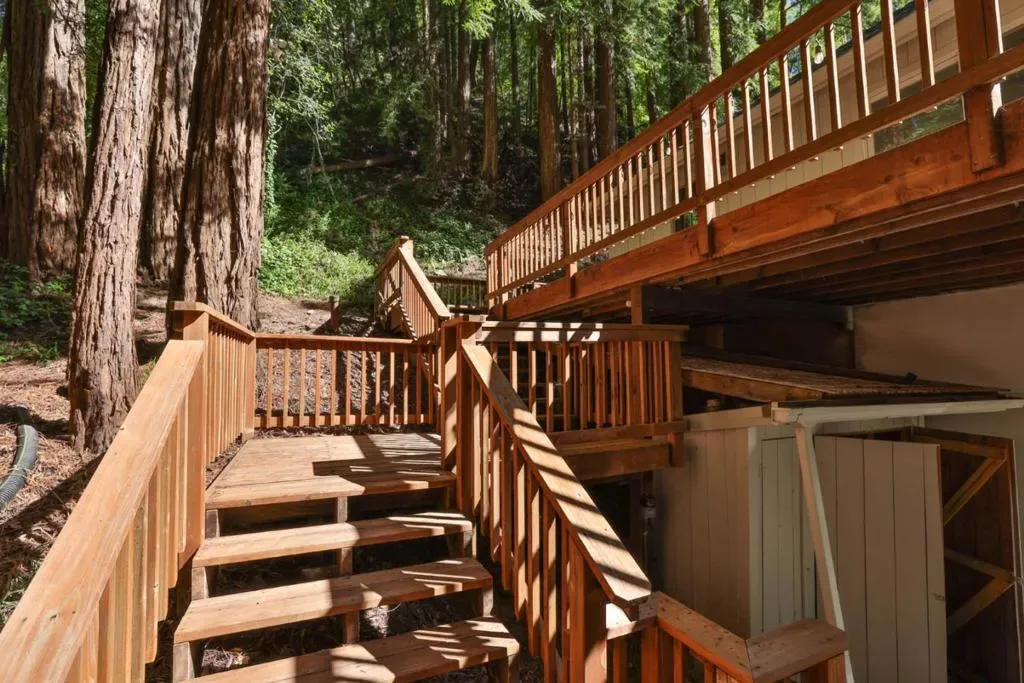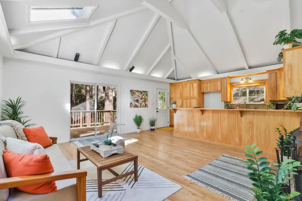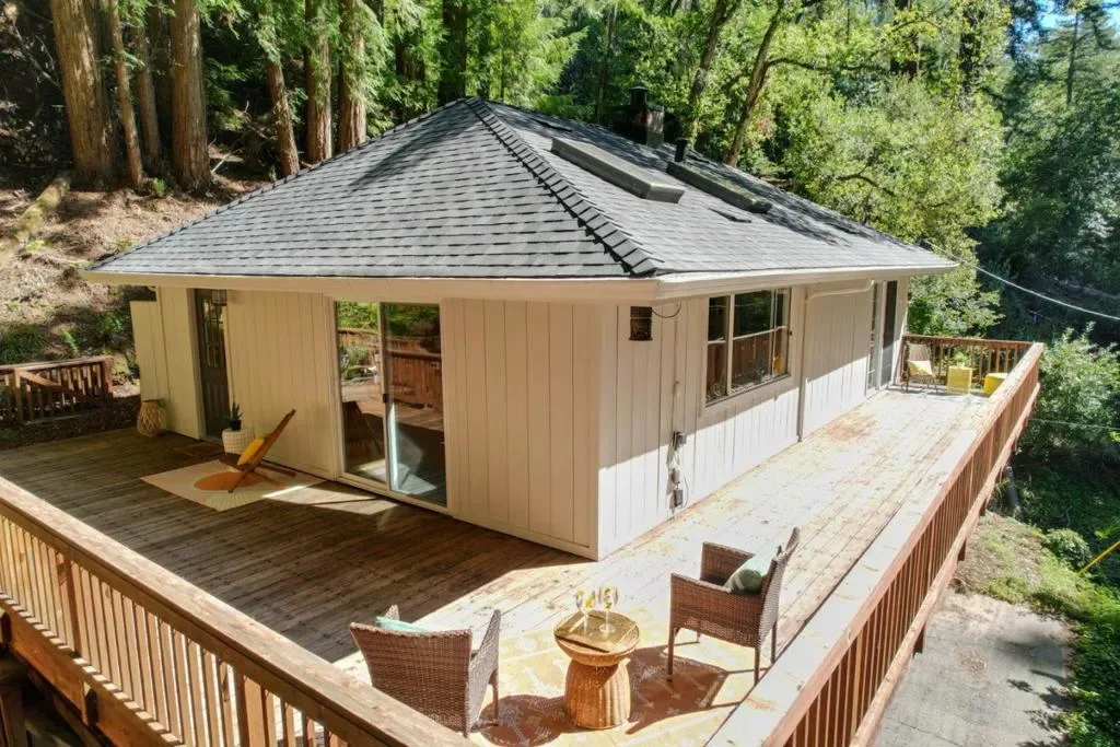 Welcome to this serene and majestic retreat, where comfort meets natural beauty. This open and airy home features soaring high ceilings and abundant skylights, filling the space with natural light and creating a warm, inviting atmosphere. Fully remodeled, including putting in a new Grey Water system, In process getting permit now, and new septic tank already in, and new Roof. The home showcases beautiful wood laminate flooring throughout, offering both style and durability. It includes two generously sized bedrooms and a full bathroom complete with a shower over tub. The newly updated kitchen is a standout, featuring ample cabinetry and eye-catching counter tops perfect for both everyday living and entertaining. Expansive windows throughout the home frame picturesque views of towering redwood trees and bright blue skies, bringing the outdoors in. Step onto the spacious deck, ideal for entertaining guests, enjoying your morning coffee, or unwinding with a good book in peaceful surroundings. Additional highlights include a driveway that comfortably holds two vehicles and newer stairs providing easy access to the property. Tucked away for ultimate privacy, this home is a perfect and an ideal haven for a small family. Lastly, its a easy drive to the beach or Silicon Valley.