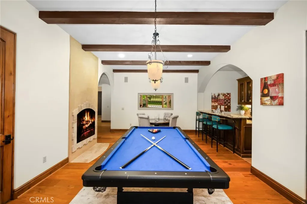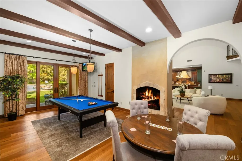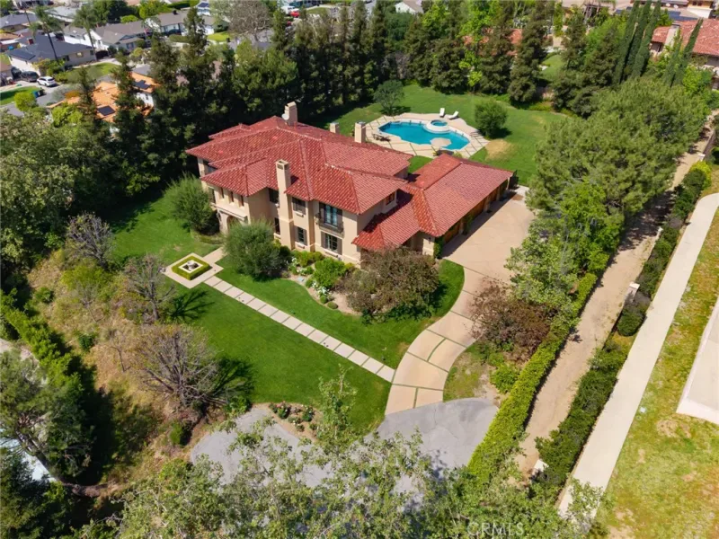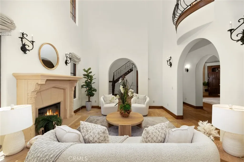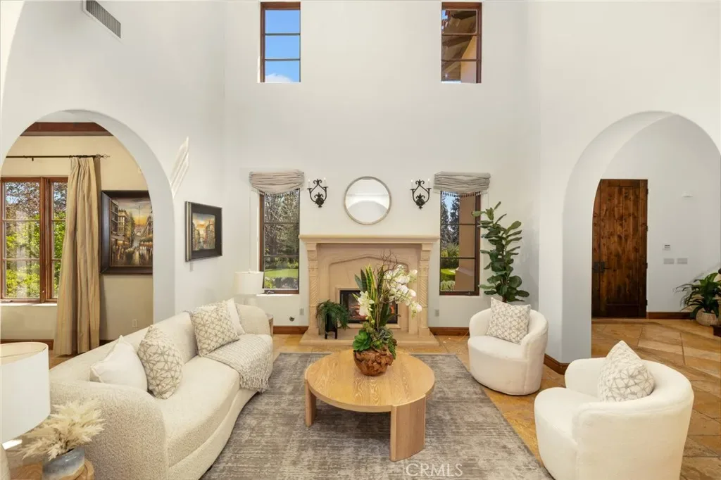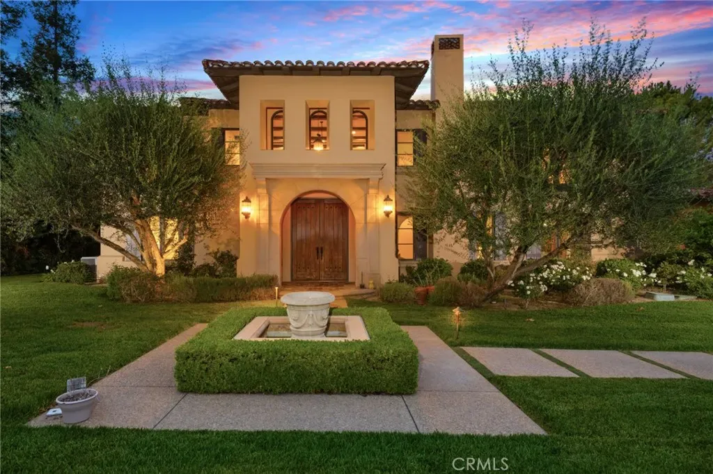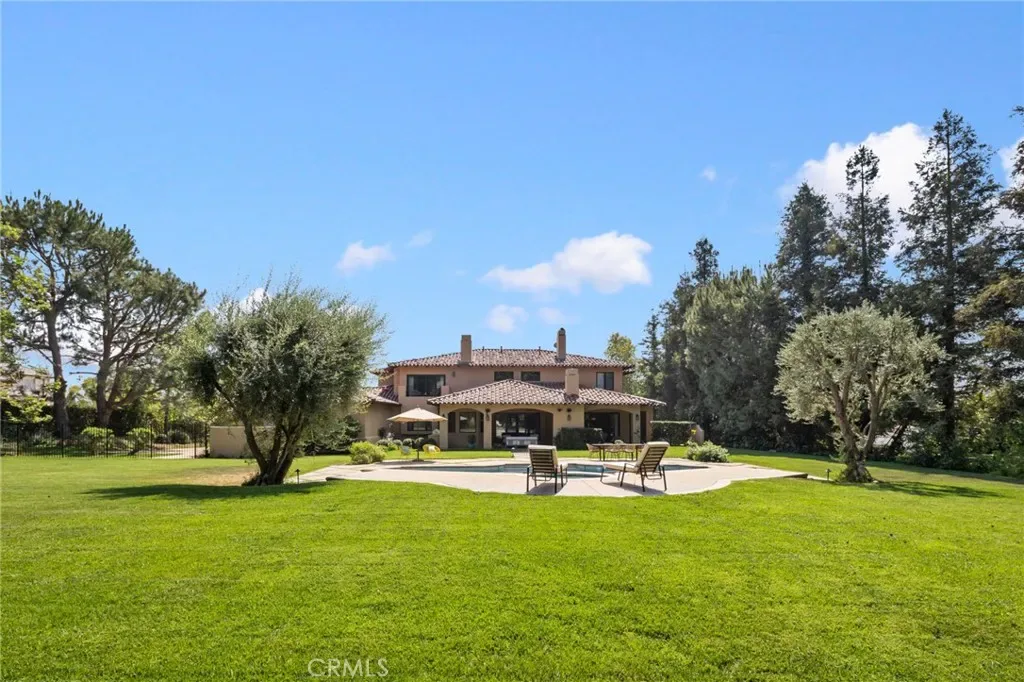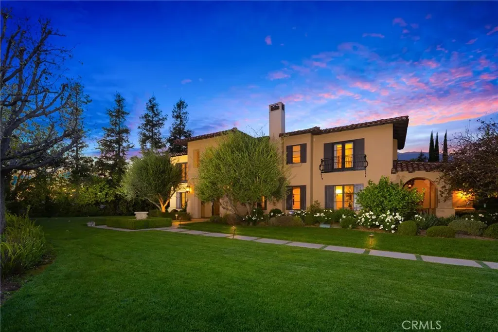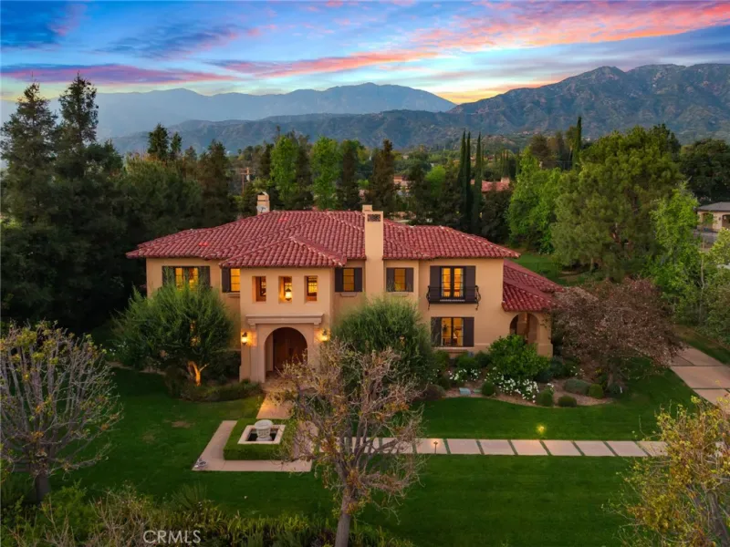 Framed by a breathtaking mountain backdrop, this extraordinary estate embodies timeless elegance and resort-style living. Custom built in 2003 by one of the owners of Mur-Sol Construction for himself with no expense spared. The 4,767 sq.ft residence sits on an expansive 47,955 sq.ft lot within an exclusive gated enclave of only three homes offering rare privacy, sophistication, and tranquility. A long impressive private driveway leads to the attached 5-car garage with additional parking. The home’s classic Mediterranean architecture designed by Robert Tong creates a striking first impression. Beyond the grand double-door entry, a dramatic two-story foyer unfolds with a wrought iron staircase, a statement chandelier, custom sconces, travertine flooring, and finely crafted wood-framed windows. Elegant archways add architectural richness & seamless flow. The formal living room, anchored by a wood-burning fireplace, opens to the dining room and extends outside through French doors, creating a refined yet inviting setting for entertaining. At the heart of the home, the expansive great room showcases, soaring open-beam ceilings, rich hardwood floors, recessed lighting, built-in speakers, and a striking see-through fireplace flowing into the kitchen, game room, and outdoor areas. Designed for elevated entertaining, the game room features a custom wet bar w/ granite countertops, wine rack, nickel back sink, Scotsman refrigerator, ice maker, and integrated media. The gourmet kitchen offers a large center island, 6-burner cooktop with double ovens, double sinks, built-in microwave, pantry, and extensive custom cabinetry. A sunlit breakfast nook with built-in seating overlooks the picturesque grounds. Two primary suites, one on each level, provide flexibility and comfort. The upstairs retreat features a fireplace, private balcony, spa-inspired bath w/ dual vanities, soaking tub, walk-in shower, vanity desk, & walk-in closet. Outdoors, the estate transforms into a private resort with a huge covered living area, open-beam ceilings, wood-burning fireplace, and built-in BBQ overlooking lush grounds. The custom pool, spa, and water features create a serene setting for relaxation and entertaining. Ideally located near hiking, biking, and equestrian trails, as well as parks, shopping, & transportation, this residence offers a rare balance of seclusion and convenience w/ room for a guest house or ADU.