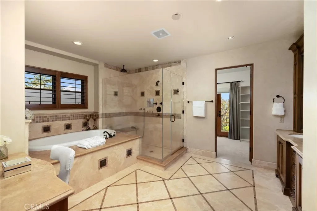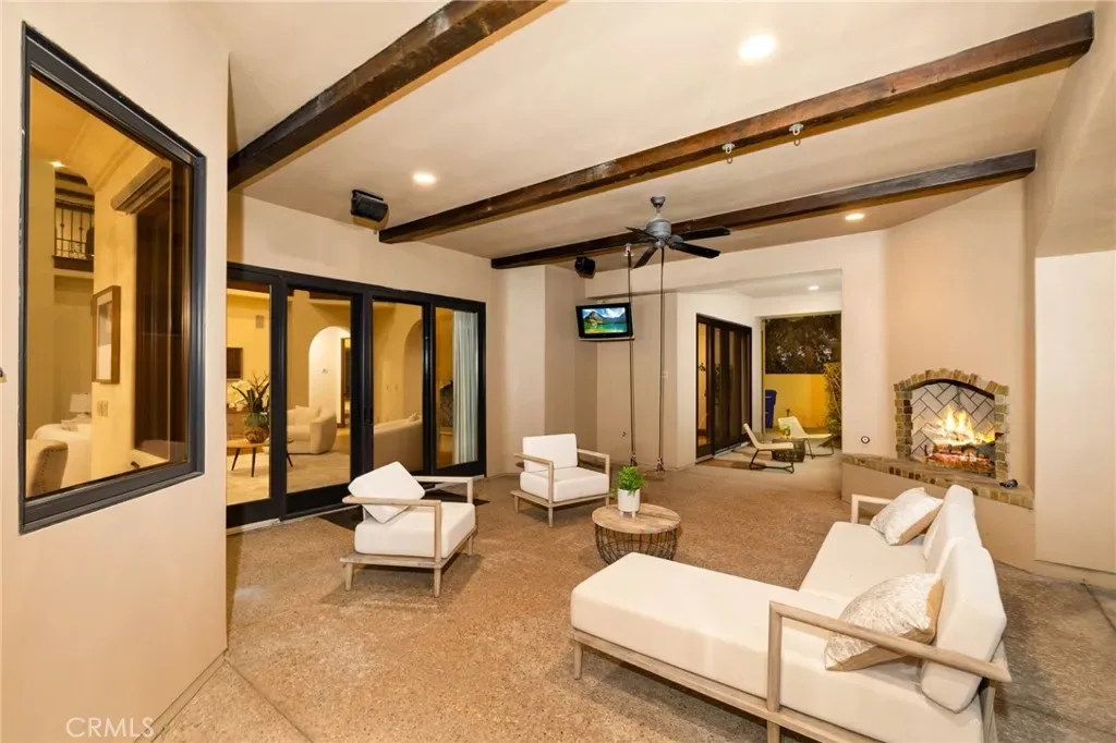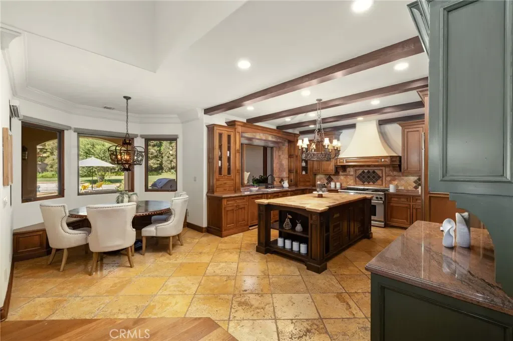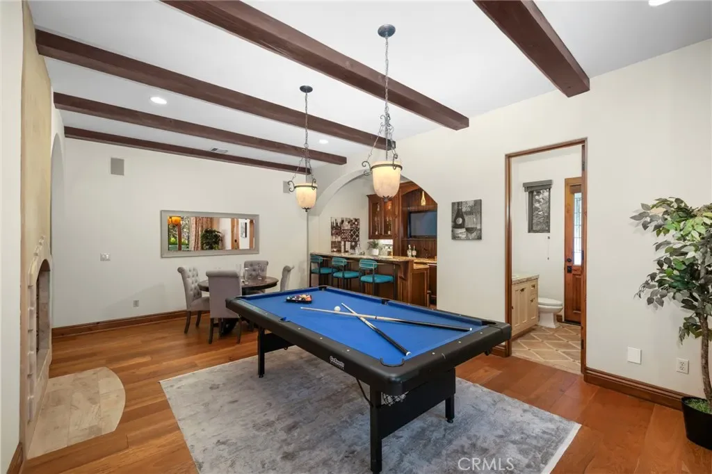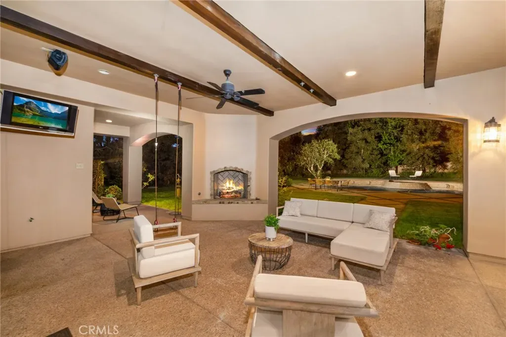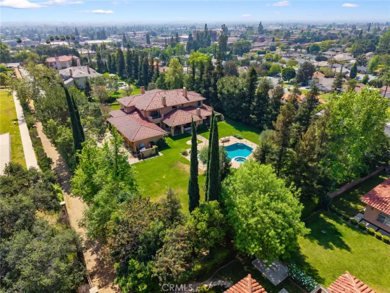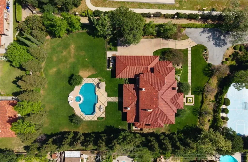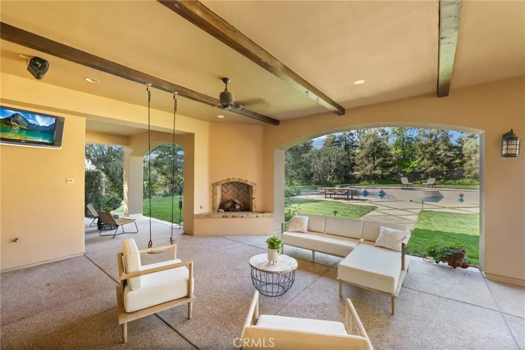 Framed by a breathtaking mountain backdrop, this extraordinary estate embodies timeless elegance and resort-style living. Custom built in 2003 by one of the owners of Mur-Sol Construction for himself with no expense spared. The 4,767 sq.ft residence sits on an expansive 47,955 sq.ft lot within an exclusive gated enclave of only three homes offering rare privacy, sophistication, and tranquility. A long impressive private driveway leads to the attached 5-car garage with additional parking. The home’s classic Mediterranean architecture designed by Robert Tong creates a striking first impression. Beyond the grand double-door entry, a dramatic two-story foyer unfolds with a wrought iron staircase, a statement chandelier, custom sconces, travertine flooring, and finely crafted wood-framed windows. Elegant archways add architectural richness & seamless flow. The formal living room, anchored by a wood-burning fireplace, opens to the dining room and extends outside through French doors, creating a refined yet inviting setting for entertaining. At the heart of the home, the expansive great room showcases, soaring open-beam ceilings, rich hardwood floors, recessed lighting, built-in speakers, and a striking see-through fireplace flowing into the kitchen, game room, and outdoor areas. Designed for elevated entertaining, the game room features a custom wet bar w/ granite countertops, wine rack, nickel back sink, Scotsman refrigerator, ice maker, and integrated media. The gourmet kitchen offers a large center island, 6-burner cooktop with double ovens, double sinks, built-in microwave, pantry, and extensive custom cabinetry. A sunlit breakfast nook with built-in seating overlooks the picturesque grounds. Two primary suites, one on each level, provide flexibility and comfort. The upstairs retreat features a fireplace, private balcony, spa-inspired bath w/ dual vanities, soaking tub, walk-in shower, vanity desk, & walk-in closet. Outdoors, the estate transforms into a private resort with a huge covered living area, open-beam ceilings, wood-burning fireplace, and built-in BBQ overlooking lush grounds. The custom pool, spa, and water features create a serene setting for relaxation and entertaining. Ideally located near hiking, biking, and equestrian trails, as well as parks, shopping, & transportation, this residence offers a rare balance of seclusion and convenience w/ room for a guest house or ADU.