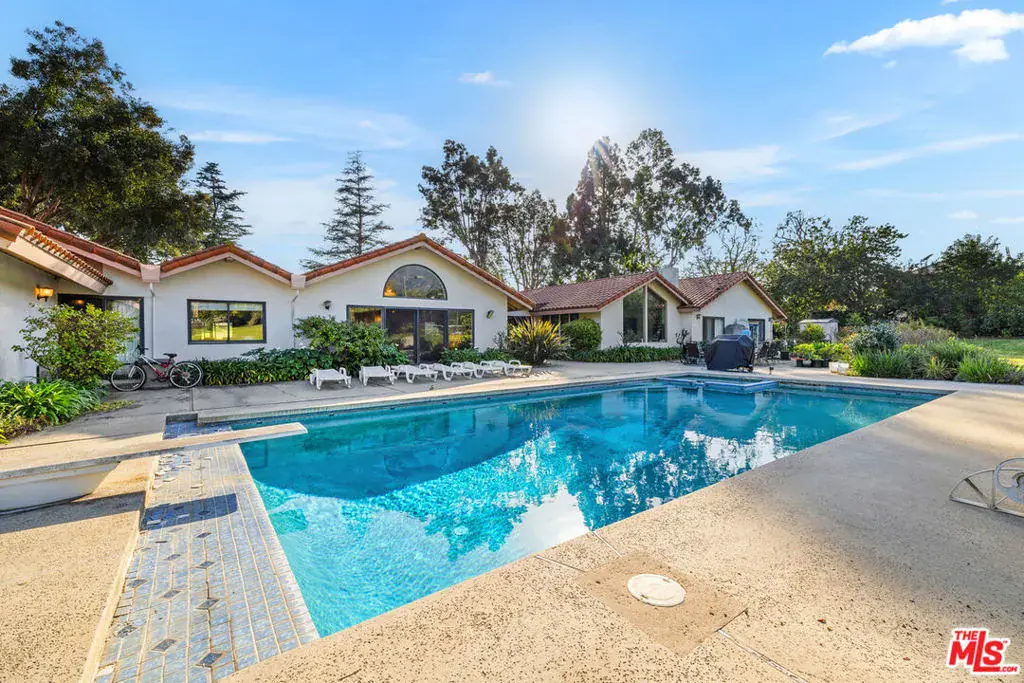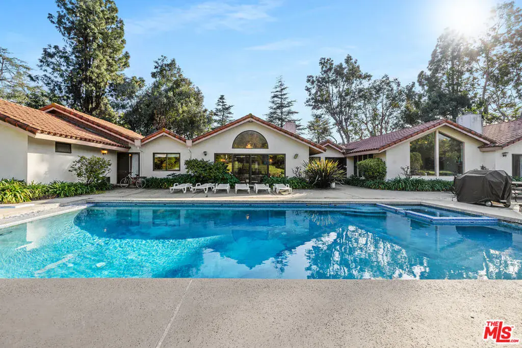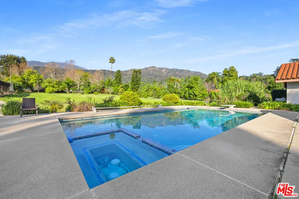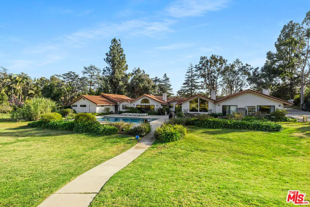 Elegant Spanish-Style Estate in Prestigious Bradbury Estates. Discover the rare opportunity to own a timeless single-story Spanish-style residence in the exclusive, guard-gated community of Bradbury Estates. Set on 2.35 acres of beautifully landscaped grounds, this 4-bedroom, 5-bathroom home blends classic architectural charm with modern comfort, offering an exceptional lifestyle in one of Southern California’s most sought-after enclaves. Step inside the 3,962 sq. ft. residence and experience a bright, airy interior enhanced by floor-to-ceiling windows that frame sweeping views of the backyard and Mount Hood. The home’s thoughtful layout features elegant limestone and carpeting, generous living spaces, and seamless indoor-outdoor flow. At the heart of the home sits a large gourmet kitchen, complete with a breakfast bar, granite countertops, and premium KitchenAid appliances, perfectfor both everyday living and entertaining. Outside, the estate truly shines. A horseshoe driveway creates a grand arrival experience, while the expansive grounds offer resort-style amenities, including a swimming pool, tennis court, and a lush orchard of mature fruit trees, featuring avocados, almonds, citrus, peaches, pears, and more. Whether you’re hosting gatherings or enjoying quiet mornings, the outdoor spaces invite relaxation and recreation. Additional features include:* Red tile roof enhancing the home’s Spanish character *3-car garage with built-in storage *Two water heaters and two air conditioning units for year-round comfort *Generac Generator *Located within a 24/7 guard-gated community for privacy and peace of mind. This exceptional property offers a rare blend of privacy, elegance, and natural beauty, an ideal retreat for those seeking space, serenity, and timeless style.