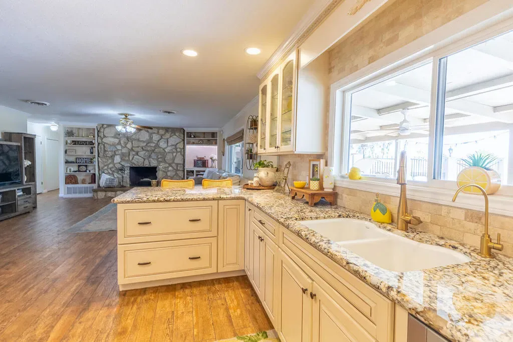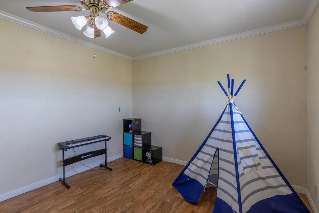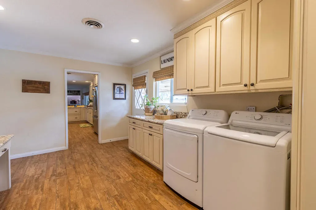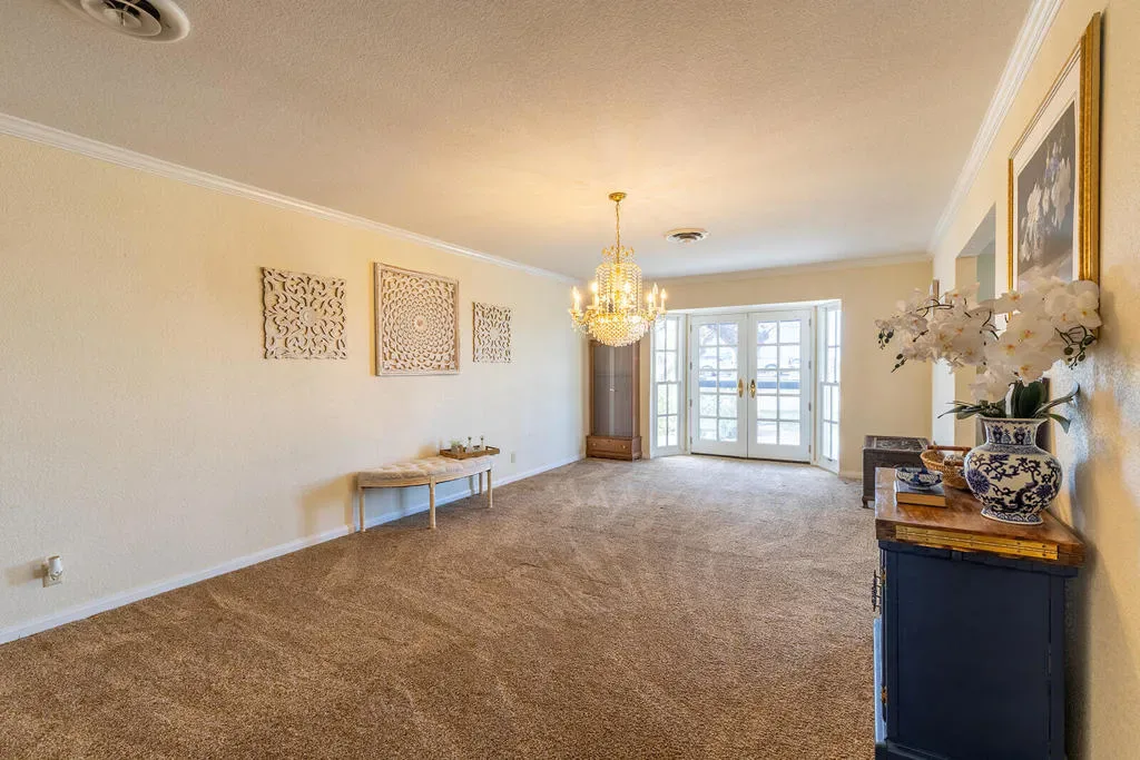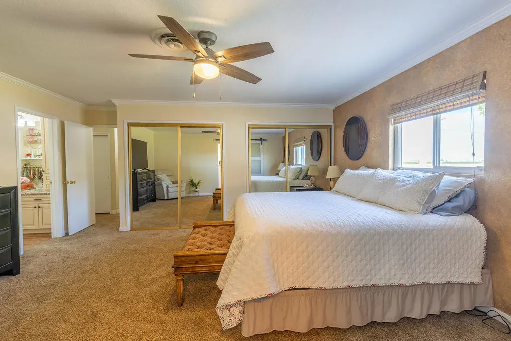 Country living with some of the best sunset views in the Valley. Situated on approximately 2.2 acres, this single-level ranch-style home offers 4 bedrooms, 3 bathrooms, and 3,045 sq ft with unobstructed west-facing views overlooking open fields and a nearby cattle arena.The home features a welcoming formal living room, formal dining area with built-in china cabinetry and bar, and a spacious layout designed to capture the surrounding views. A stunning stone fireplace anchors the living space, while the west wall of the home is framed with windows and French doors that open to the front of the home. The kitchen includes custom cabinetry, granite countertops, and double wall ovens.Outdoor amenities include a large in-ground pool recently re-plastered, full-length patio, and a fenced pool area for added security. The property also offers an attached two-car garage with extensive built-in storage, a separate carport, and a detached approximately 1,000 sq ft shop/office/multipurpose space, ideal for a workshop, gym, office, or additional storage.Recent improvements include an expanded 15×15 walk-in primary closet, new sprinkler system, water pumps, and upgraded network and camera system. Property is on septic with electric appliances and water heater.A rare opportunity to enjoy acreage, privacy, and open views while still being conveniently located in the Valley.