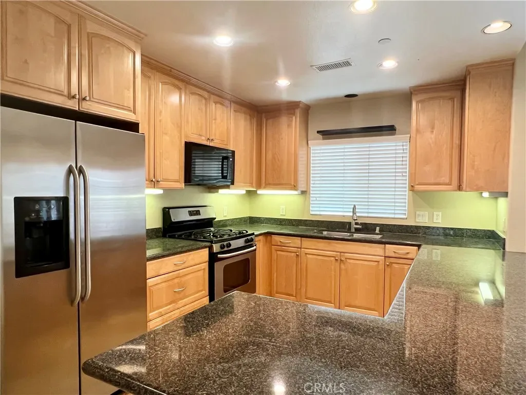 The gourmet kitchen is appointed with granite countertops, stainless steel appliances, and a 4-burner gas stove, seamlessly blending style and functionality. Elegant marble flooring extends throughout the main level and all bathrooms, complemented by rich granite surfaces and beautifully upgraded maple cabinetry throughout the home.