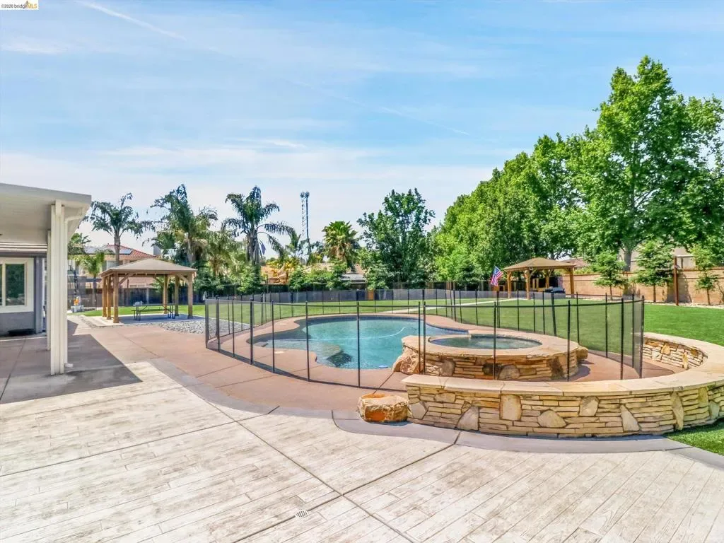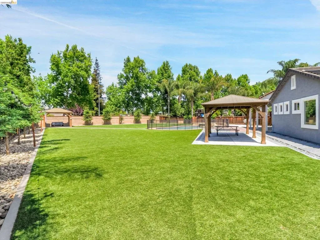 1109 San Donato Court — Brentwood. Fully remodeled single story home tucked at the end of a quiet cul de sac on nearly half an acre. The backyard is designed for easy living and entertaining with over 6,000 sq ft of low maintenance artificial turf, a remodeled pool with solar heating and new filtration system, and a covered patio perfect for gatherings. There is also RV and boat parking along with a three car garage featuring built in cabinetry for additional storage. Inside offers 2,952 sq ft of single story living with engineered hardwood floors throughout, a custom kitchen with high end cabinetry, stone countertops, and a large island that opens to spacious living areas. A new AC unit adds year round comfort and efficiency. Move in ready with space, upgrades, and a backyard built for entertaining. Schedule a tour and see everything 1109 San Donato Court has to offer.