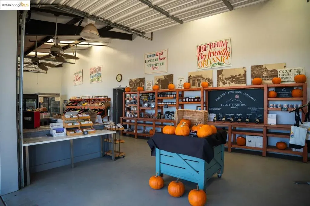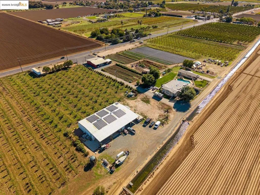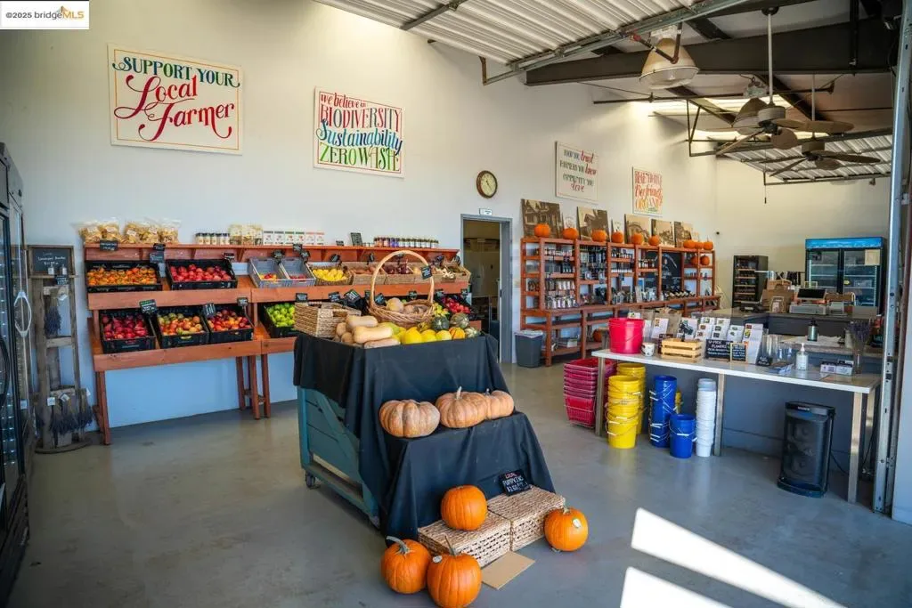 Rare opportunity to own a turnkey organic farm and vineyard in Brentwood’s famous U-Pick region, minutes from San Francisco and San Jose. The property features two modern homes (main residence is 2,565 sqft plus second home/ADU approx 1,000 sqft), a solar-powered 5,000 sq ft steel winery/shop, fruit stand with walk-in cooler, greenhouse, and electric irrigation pump with district water access. All 34 acres are CCOF-certified organic, including approximately 20 acres of orchards and mixed vegetables (peaches, nectarines, cherries, apricots, citrus, figs, and more) and a 4-acre producing vineyard. Fully fenced and ideally suited for use as a working farm, vineyard, or private agricultural estate with exceptional infrastructure and income potential.