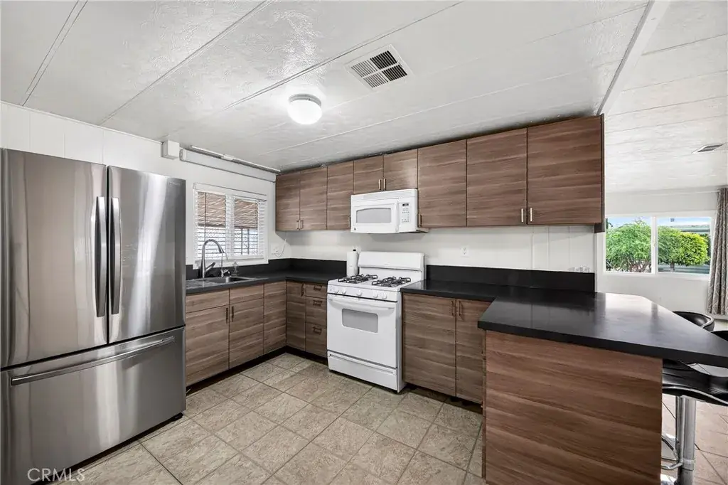 LOCATED IN THE HEART OF BUENA PARK, ENJOY COMFORTABLE AND PEACEFUL SENIOR LIVING IN THIS WELL-MAINTAINED HOME AT THE DESIRABLE BUENA VILLA MOBILE HOME ESTATES. THIS BEAUTIFULLY UPDATED 2 BEDROOM, 2 BATH HOME OFFERS SPACIOUS LIVING IN A 55+ SENIOR COMMUNITY (2ND RESIDENT 18+ ALLOWED). THE HOME FEATURES FRESH INTERIOR PAINT, WOODEN FLOORING IN BOTH BEDROOMS, AND AN UPGRADED KITCHEN AND BATHROOMS WITH UPDATED CABINETRY. ADDITIONAL IMPROVEMENTS INCLUDE ALL DUAL-PANE WINDOWS WITH NEW FRAMES, A SECURITY IRON SCREEN DOOR, AND A UNIQUE CUSTOM FRONT DECK FLOOR. RECENT UPGRADES INCLUDE A NEW STORAGE SHED, NEW WATER HEATER, NEW SHOWER FAUCET, AND A NEW DINING CEILING FAN LIGHT. THE SPACIOUS BACKYARD OFFERS MORE PRIVACY THAN MOST HOMES, ALONG WITH A SIDE YARD VEGETABLE GARDEN AND MULTIPLE FRUIT TREES INCLUDING APPLE, PLUM, ORANGE, KUMQUAT, AND LEMON. CONVENIENTLY LOCATED NEAR GUEST PARKING, SHOPPING, RESTAURANTS, AND FREEWAY ACCESS. COMMUNITY AMENITIES INCLUDE A HEATED POOL, SPA, ACTIVE CLUBHOUSE, AND ON-SITE RESIDENT MANAGER. TWO SMALL INDOOR PETS (UNDER 20 LBS) ARE ALLOWED WITH MANAGEMENT APPROVAL. THIS MOVE-IN READY HOME IS A MUST SEE!