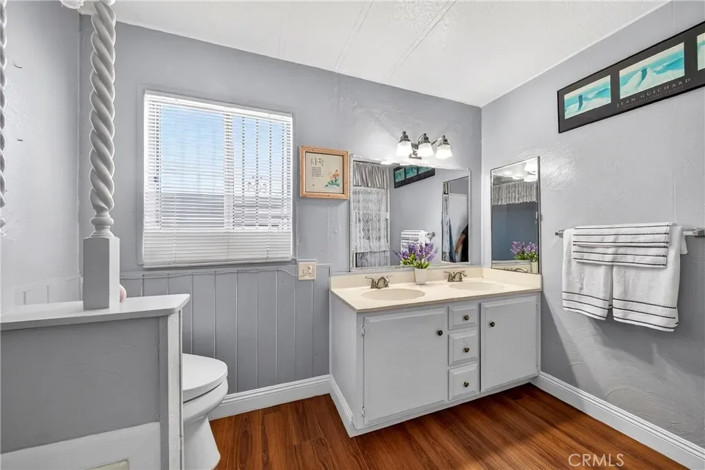 WELCOME TO BUENA VILLA SPACE 108! A BEAUTIFULLY UPDATED OWNER CARED MOBIL HOME RESIDENCE NESTLED WITHIN A SERENE AND WELL-MAINTAINED 55+ COMMUNITY (2ND RESIDENT 18+ ALLOWED). THIS THOUGHTFULLY DESIGNED SINGLE-LEVEL HOME OFFERS 2 BEDROOMS PLUS A DEN, IDEAL FOR A HOME OFFICE, GUEST SPACE, OR HOBBY ROOM, ALONG WITH 2 FULL BATHROOMS. THE INTERIOR SHOWCASES ELEGANT WOOD FLOORING THROUGHOUT, CREATING A WARM AND COHESIVE LIVING ENVIRONMENT, WHILE THE CONVENIENCE OF AN INDOOR LAUNDRY AREA ENHANCES EVERYDAY FUNCTIONALITY. RECENT EXTERIOR PAINT ADDS TO THE HOME’S CURB APPEAL, AND THE EXPANSIVE BALCONY FEATURES DURABLE FLOORING, SECURE RAILINGS, AND DIRECT STAIR ACCESS TO A PRIVATE BACKYARD. THE OUTDOOR SPACE IS BOTH PRACTICAL AND INVITING, COMPLETE WITH TWO STORAGE SHEDS. POSITIONED IN A QUIETER SECTION OF THE COMMUNITY, AWAY FROM MAIN ROADS AND HIGH-TRAFFIC ENTRY POINTS, THIS HOME OFFERS AN EXCEPTIONAL SENSE OF PRIVACY AND TRANQUILITY. RESIDENTS ENJOY A WIDE ARRAY OF AMENITIES, INCLUDING A SPARKLING POOL, CLUBHOUSE, GUEST PARKING, CAR WASH STATIONS, ADDITIONAL COMMUNITY LAUNDRY FACILITIES, AND RV PARKING (SUBJECT TO HOA APPROVAL). THE LAND LEASE PROVIDES ADDED VALUE BY COVERING GAS, WATER, TRASH SERVICES, AND ACCESS TO ALL COMMUNITY AMENITIES. AN EXCELLENT OPPORTUNITY TO ENJOY COMFORT, CONVENIENCE, AND PEACEFUL COMMUNITY LIVING IN A DESIRABLE LOCATION