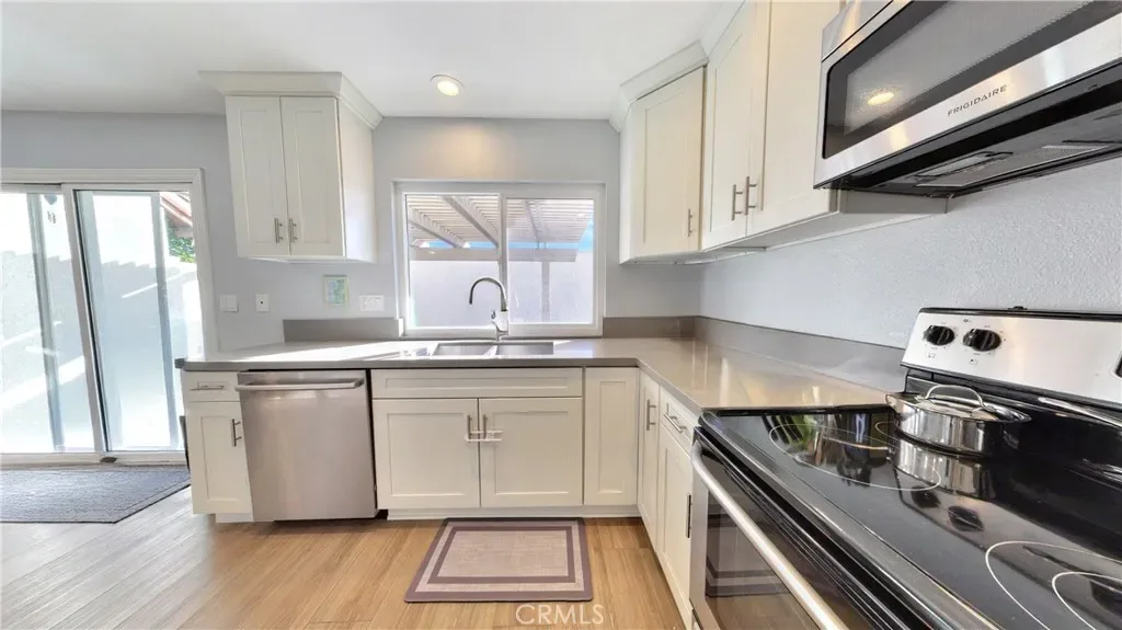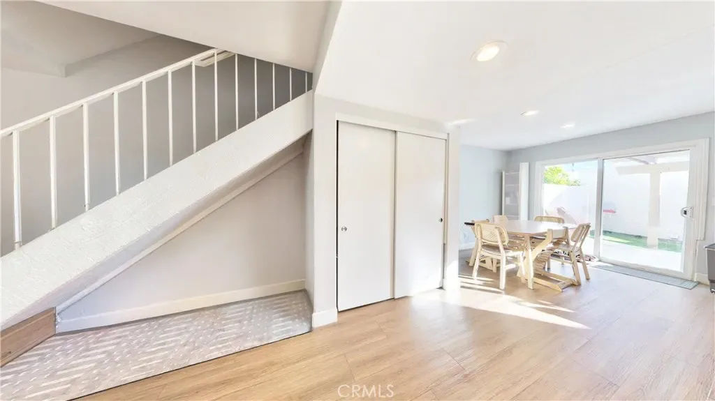 Discover your next comfortable home in the peaceful, well-maintained Casitas community of Buena Park! This beautifully updated two-story 3-bedroom, 2-bath house offers modern finishes and plenty of natural light, making it perfect for relaxing or entertaining friends and family. This bright and open-concept living and dining area that flows seamlessly into the refreshed kitchen. You’ll love cooking with sleek white cabinetry, elegant grey quartz countertops, stainless steel appliances, sink, and faucet, plus window view of the backyard patio for easy indoor-outdoor living. The entire home features fresh distressed flooring, contemporary paint colors, new baseboards, and updated windows and doors throughout. Upstairs, all three bedrooms provide private retreat space, including a remodeled master bathroom with an elegant white vanity, quartz counters, and stylish hexagon marble mosaic tiled floors. The guest half-bath has also been fully refreshed for convenience. Additional perks include an attached 2-car garage with direct patio access and wonderful community amenities such as a pool, spa, and clubhouse—great for unwinding or hosting friends. With tons of natural light and a true model-home feel, this turn-key home is ready for you to move in and enjoy right away.