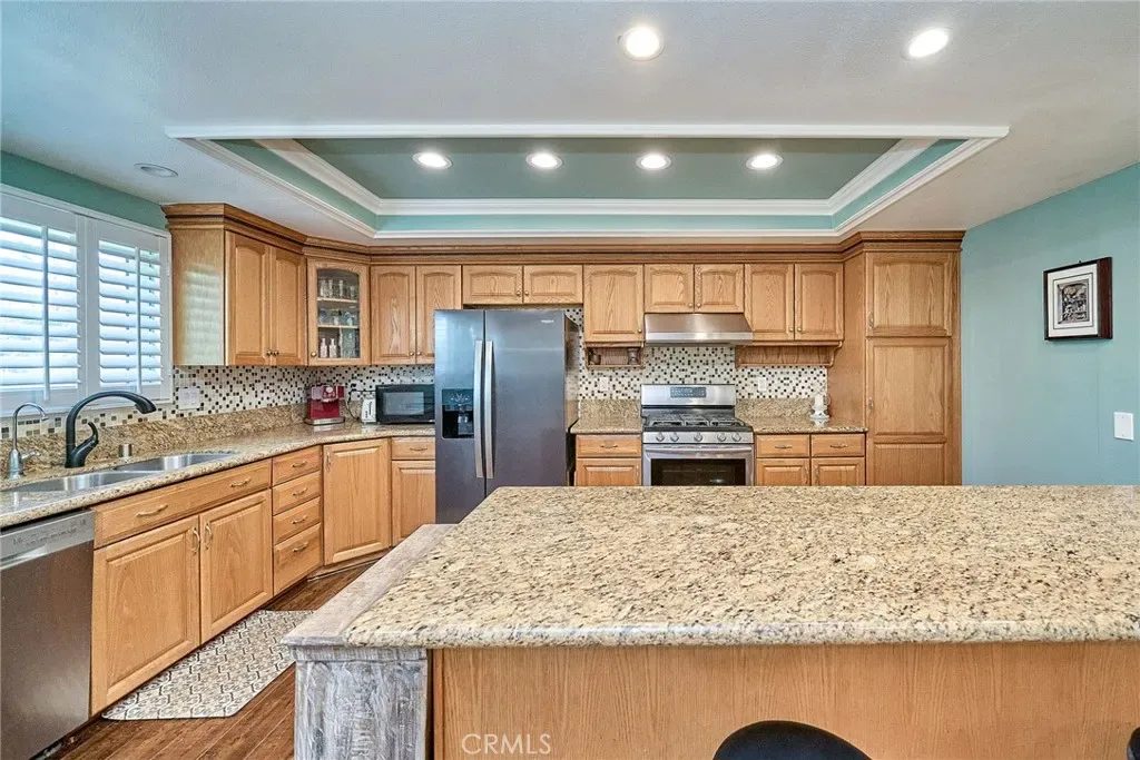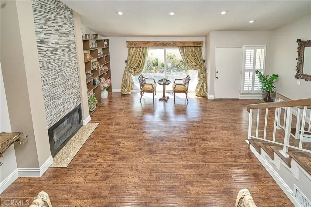 This spacious multi-level home features an open and airy floor plan with high ceilings, recessed lighting, and a cozy fireplace. The living room opens to a private patio, perfect for relaxing or BBQ. The updated kitchen offers upgraded cabinets, granite countertops, and a comfortable breakfast nook.